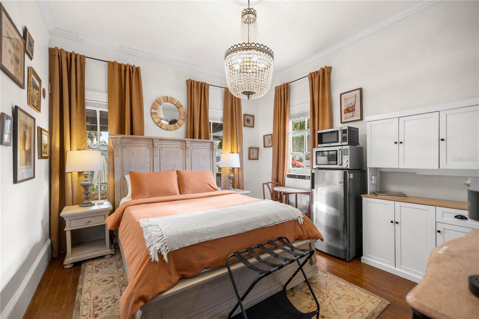 Aninhado do lado de fora da histórica Downtown Square, no coração da capital de cavalos do mundo, essa propriedade de inspiração equestre, totalmente mobiliada e móvel, oferece uma rara mistura de charme atemporal e acabamentos modernos. Meticulosamente renovado e cuidadosamente projetado, esta propriedade versátil é uma casa principal com uma cabana de hóspedes. Possui a opção de três unidades distintas, com flexibilidade. . (Red Guest Cottage) A casa de hóspedes vermelha independente, carinhosamente chamada Secretariat, é um retiro encantador perfeito para visitantes de curto prazo ou estadias prolongadas. Esta unidade possui uma entrada privada, um moderno sistema HVAC mini-split, uma lavadora e secadora na unidade, uma cozinha compacta totalmente equipada e um banheiro lindamente decorado. O quintal privado, adornado com grama exuberante e paisagismo profissional, inclui um sistema de aspersão com sensores de esponja avançados para manutenção sem esforço. Totalmente mobiliado, com roupas de cama de alta qualidade, material de cozinha, uma grelha elétrica ao ar livre, uma mesa de bistrô e guarda-chuvas, o chalé oferece uma experiência projétil para hóspedes ou inquilinos. As comodidades adicionais incluem estacionamento fora da rua designado, vigilância de câmera privada e acesso seguro de trava elétrica, garantindo privacidade e tranquilidade. A suíte integrada à casa principal, a suíte é uma unidade versátil de um quarto e um banheiro que pode ser alugado independentemente ou combinado com a casa principal para criar uma espaçosa configuração de dois quartos e dois banheiros. Ideal para os hóspedes ou como um aluguel produtor de renda, a suíte apresenta uma entrada privada, uma lavadora e secadora na unidade e designado estacionamento fora da rua. Seu design flexível o torna perfeito para hospedar visitantes ou gerar renda adicional de aluguel. A jóia da coroa da propriedade, o rei Edward, é a casa principal, exalando a elegância histórica com atualizações modernas. Entre em uma sala de estar brilhante e aberta, onde pisos de madeira original restaurados brilham sob luz natural, complementados por molduras de dentil intrincadas e cartuchos de portas habilmente criados que mostram o verdadeiro artesanato. O quarto espaçoso inclui um banheiro privativo com um design de piso contínuo. Uma lavadora e secadora na unidade e lavouras de pó com detalhes encantadores se misturam perfeitamente com seu caráter histórico. King Edward é um testemunho da capacidade da propriedade de equilibrar o charme do velho mundo com a vida contemporânea, tornando-a uma residência primária ideal ou um recurso de destaque para os hóspedes. Recursos adicionais e potencial de investimento Cada unidade está equipada com conveniências modernas, incluindo vigilância de câmera privada, acesso à trava elétrica e estacionamento fora da rua, garantindo segurança e facilidade para residentes e convidados. A principal localização da propriedade, a poucos passos da vibrante história histórica do centro da cidade, Tuscuawilla Park, está no coração de uma comunidade conhecida por sua herança equestre. As unidades totalmente mobiliadas, completas com acabamentos de ponta e detalhes pensativos, tornam essa propriedade uma oportunidade de mão para aluguel de curto prazo, casas de férias ou vida multigeracional. Todos os móveis e equipamentos estão incluídos na venda. Esteja você atraído pelo fascínio equestre, pelo artesanato histórico ou pelo potencial de renda, essa propriedade oferece infinitas possibilidades. Não perca a chance de possuir um pedaço do legado da capital de cavalos, reimaginado para a vida moderna. Agende uma exibição hoje para experimentar este excepcional imobiliário em primeira mão!