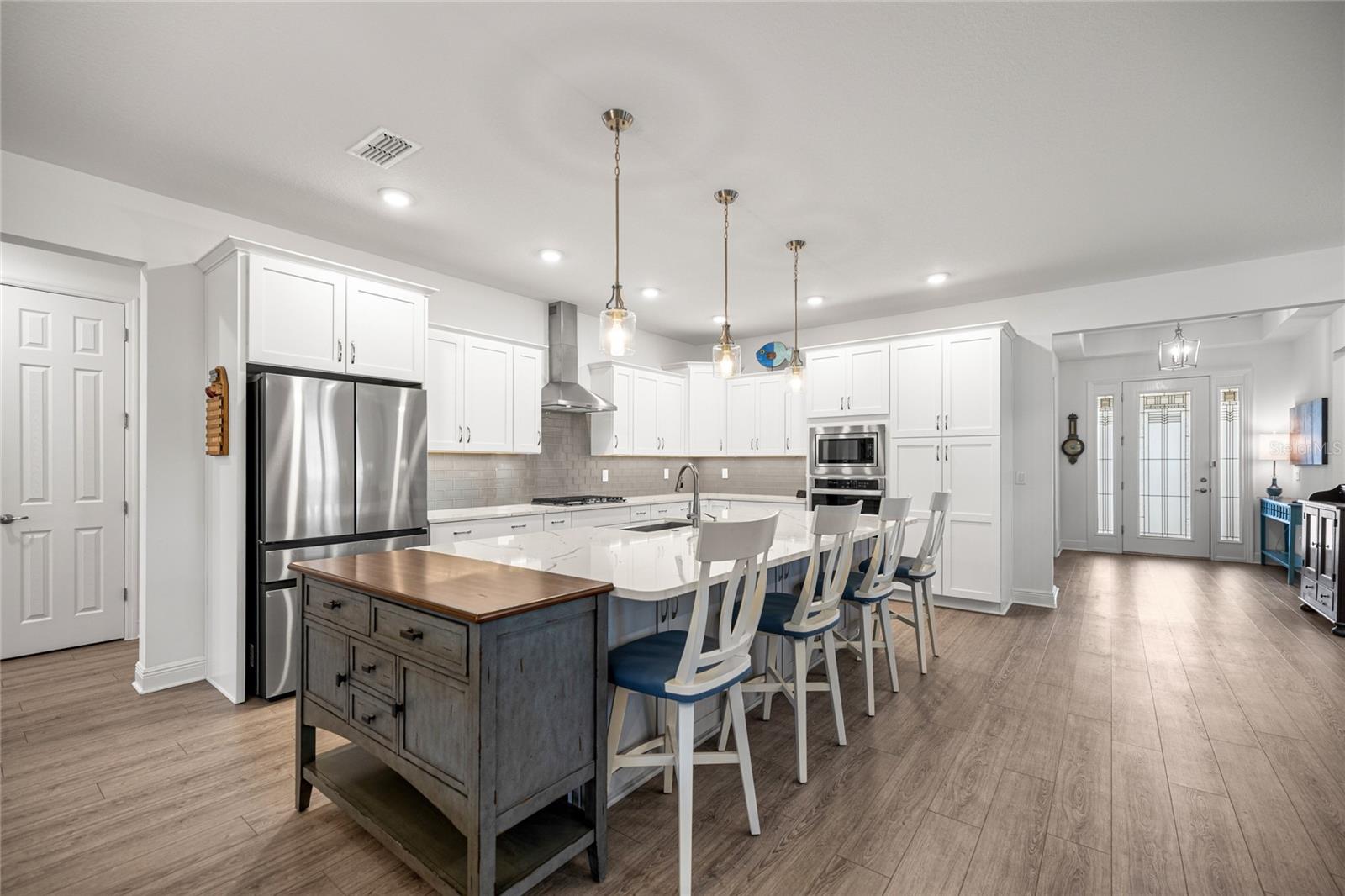 Bem-vindo a esta casa de tirar o fôlego na comunidade de Candler Hills, altamente procurada, no topo do mundo! Perfeitamente situado em um lote grande de grandes dimensões, sem vizinhos traseiros, esta residência oferece privacidade e vistas abertas impressionantes. No interior, a planta aberta é aprimorada por bancadas de quartzo, acabamentos modernos e atualizações atenciosas por toda parte. Todas as gavetas do gabinete são * suaves de perto !! * A casa possui uma marquise, um lanai selecionado com tons de sol, além de persianas de plantações na maioria das janelas. Para conforto e segurança extras, este vendedor de visão de futuro adicionou uma cerca de caixa de sombra de vinil com um portão! A eficiência energética é a principal prioridade aqui - painéis solares pagos significam * não * Bill elétrica! A garagem foi transformada com pisos epóxi, um carregador de EV, racks de armazenamento 4x8 e até um escritório com ar-condicionado com um mini sistema dividido. As atualizações adicionais incluem calhas, janelas interiores e manuais manuais e tons de porta e uma porta de passagem conveniente da suíte primária até a lavanderia. Esta casa realmente verifica todas as caixas quanto a conforto, estilo e função - tudo no coração de uma das comunidades adultas ativas mais desejáveis de Ocala! *O espaço de escritório na garagem é de 208 pés quadrados.*