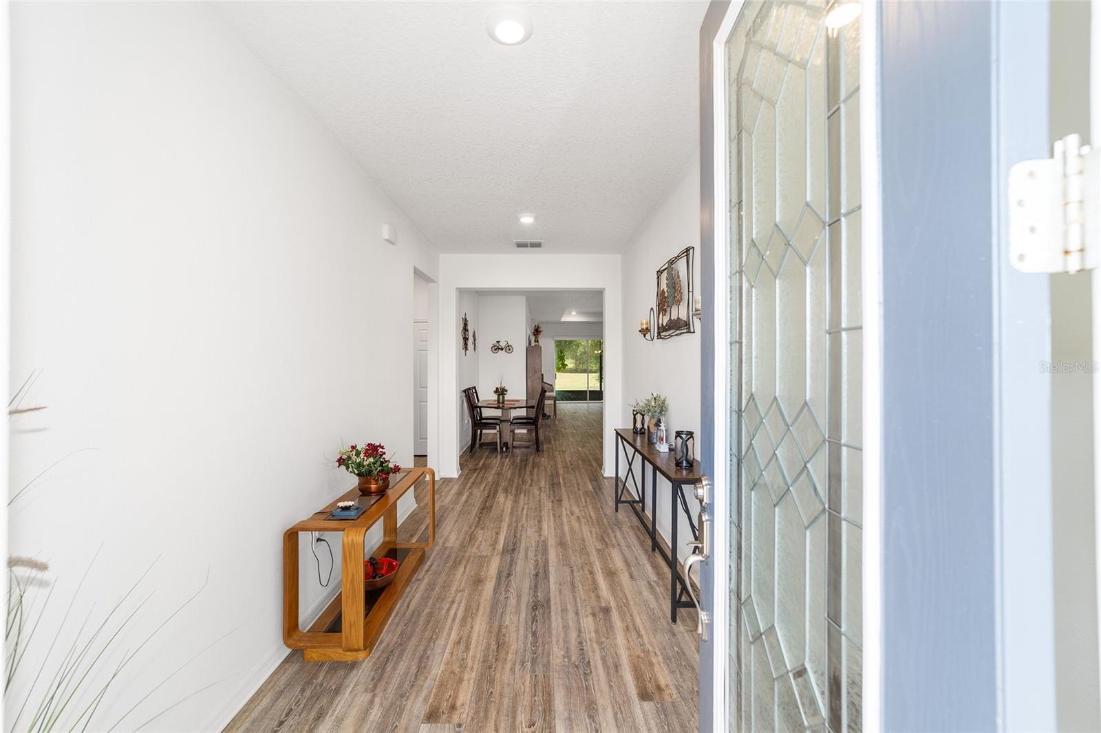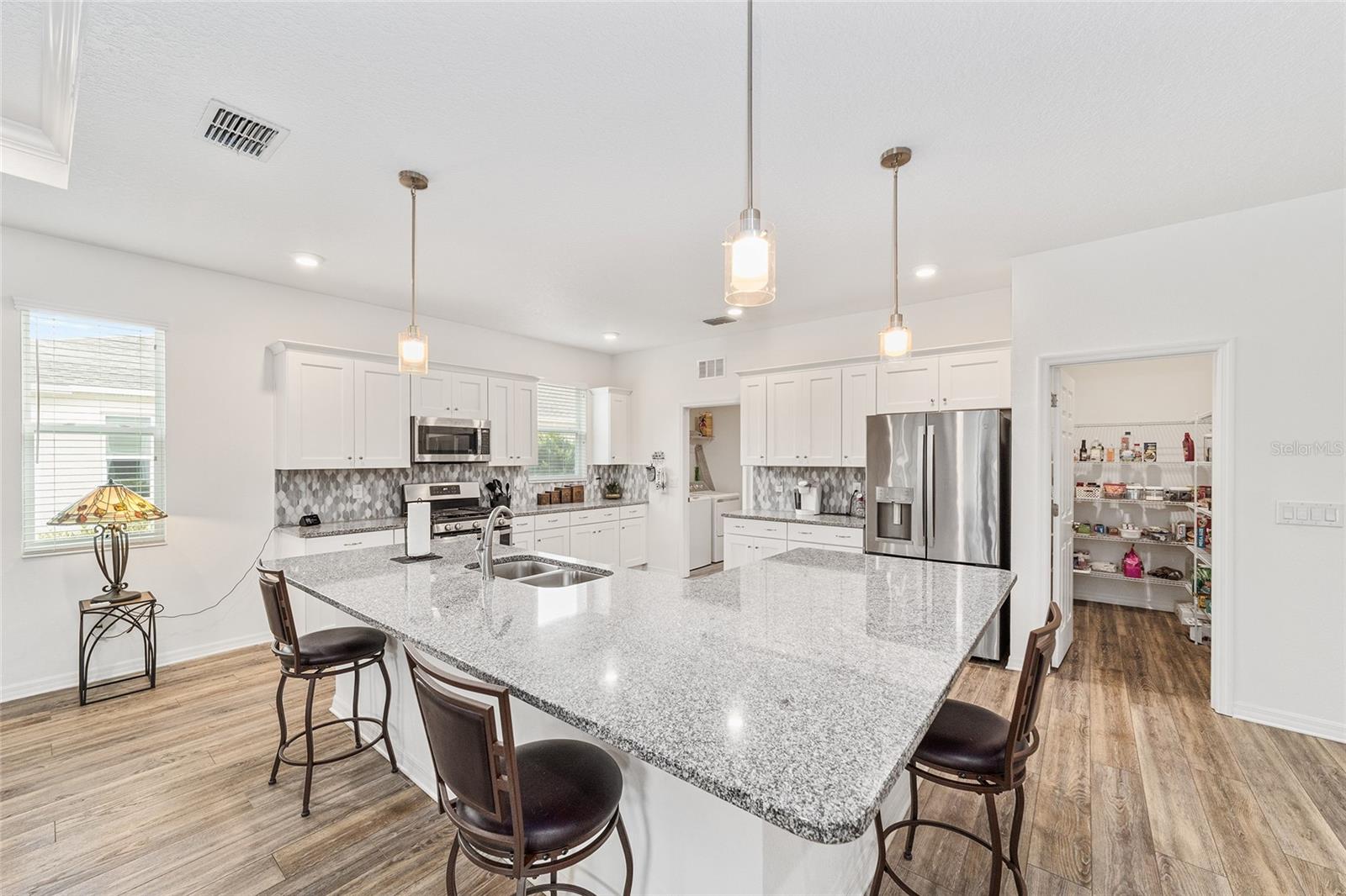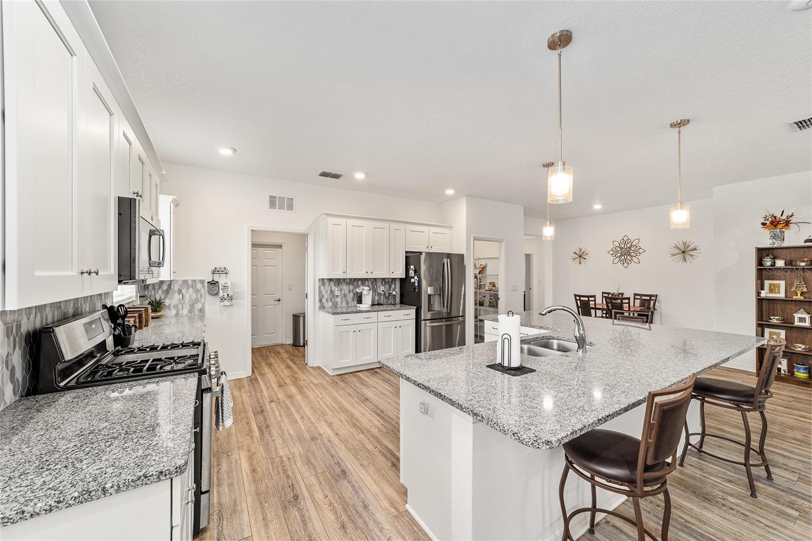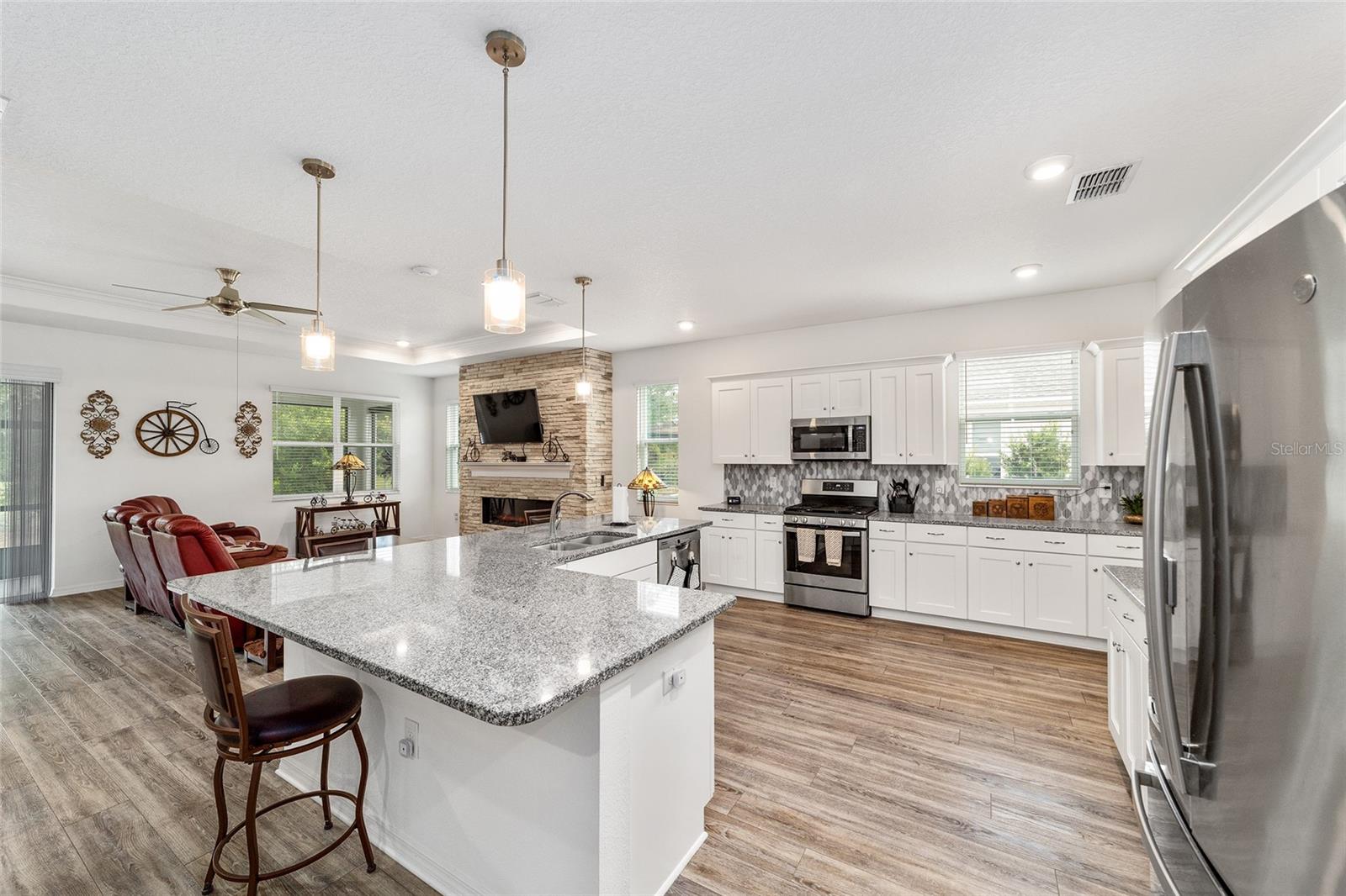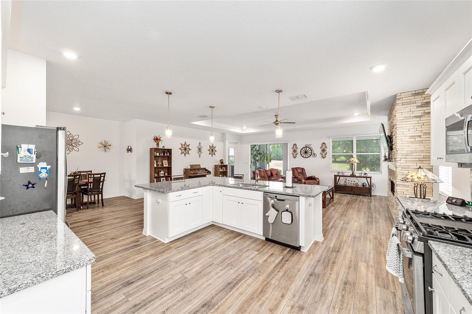Bem-vindo a esta casa lindamente decorada de 3 quartos e 2 banheiros que oferece 2.118 pés quadrados de espaço vital no desejável bairro Indigo East de On Top of the World, uma comunidade importante com mais de 55 anos. Situada em um terreno privativo de 0,21 acres, esta residência convidativa apresenta um layout de conceito aberto com luxuoso piso de pranchas de vinil em todas as áreas de estar principais e um elegante teto de bandeja. A cozinha atualizada possui fogão a gás, amplos armários e acabamentos modernos - perfeito para o chef caseiro. Aproveite o ar livre na grande varanda frontal acentuada por uma atraente paisagem ou relaxe na varanda com vista para um quintal com grandes árvores frondosas e um pátio adicional - ideal para manhãs divertidas ou tranquilas. A eficiência energética brilha com painéis solares próprios, e a casa oferece amplo espaço de garagem com extensão de garagem de 4 pés. Os residentes têm acesso a comodidades excelentes, incluindo duas piscinas, trilhas para caminhada, parque para cães e sala de ginástica. O acesso ao carrinho de golfe facilita a visita ao Circle Square Commons e às lojas nas proximidades, enquanto as instalações médicas ficam a uma curta distância de carro. Com sua planta espaçosa, atualizações cuidadosas e estilo de vida vibrante, esta casa está pronta para você começar seu próximo capítulo.