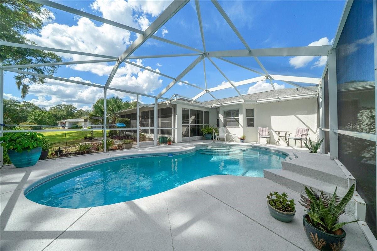 Mergulhe na Flórida vivendo com esta brilhante casa com piscina 3BR/2BA! Cercada por uma paisagem exuberante, a piscina cintilante e a varanda enorme são perfeitas para diversão durante todo o ano, sem vizinhos traseiros. No interior, a planta de quartos divididos apresenta suíte do proprietário com closet, banheiro privativo e tubos solares para luz natural. A cozinha com eletrodomésticos em inox tem vista para a piscina e oferece espaço para vários cozinheiros. Os hóspedes desfrutam de sua própria ala com dois quartos e banheiro completo. Lavandaria interior, arrumação abundante, telhado (2019), AC (2017). Em uma rua tranquila e sem saída em uma comunidade procurada por mais de 55 pessoas. More perto do Community Clubhouse com muitas comodidades, além de lojas, restaurantes e serviços médicos nas proximidades. Privacidade, conveniência e vida à beira da piscina, tudo em um!