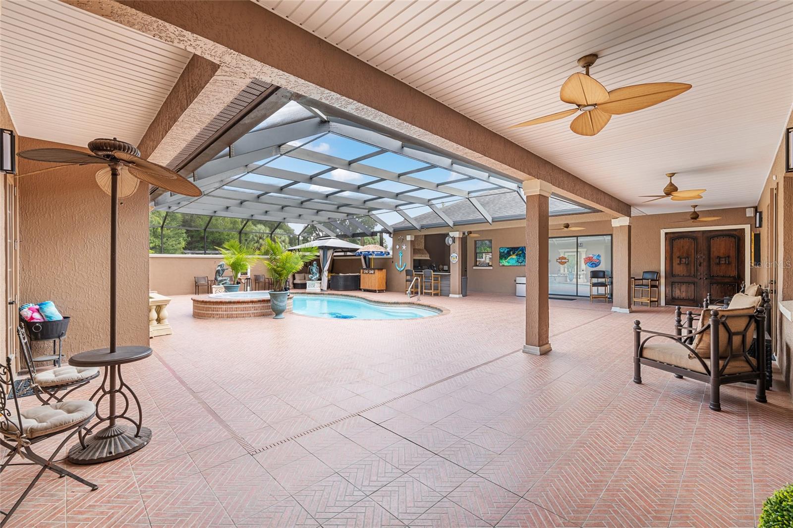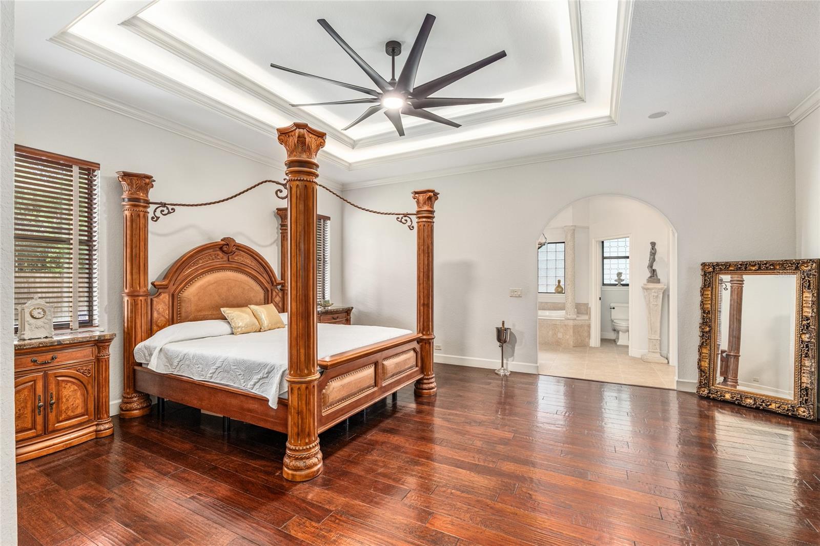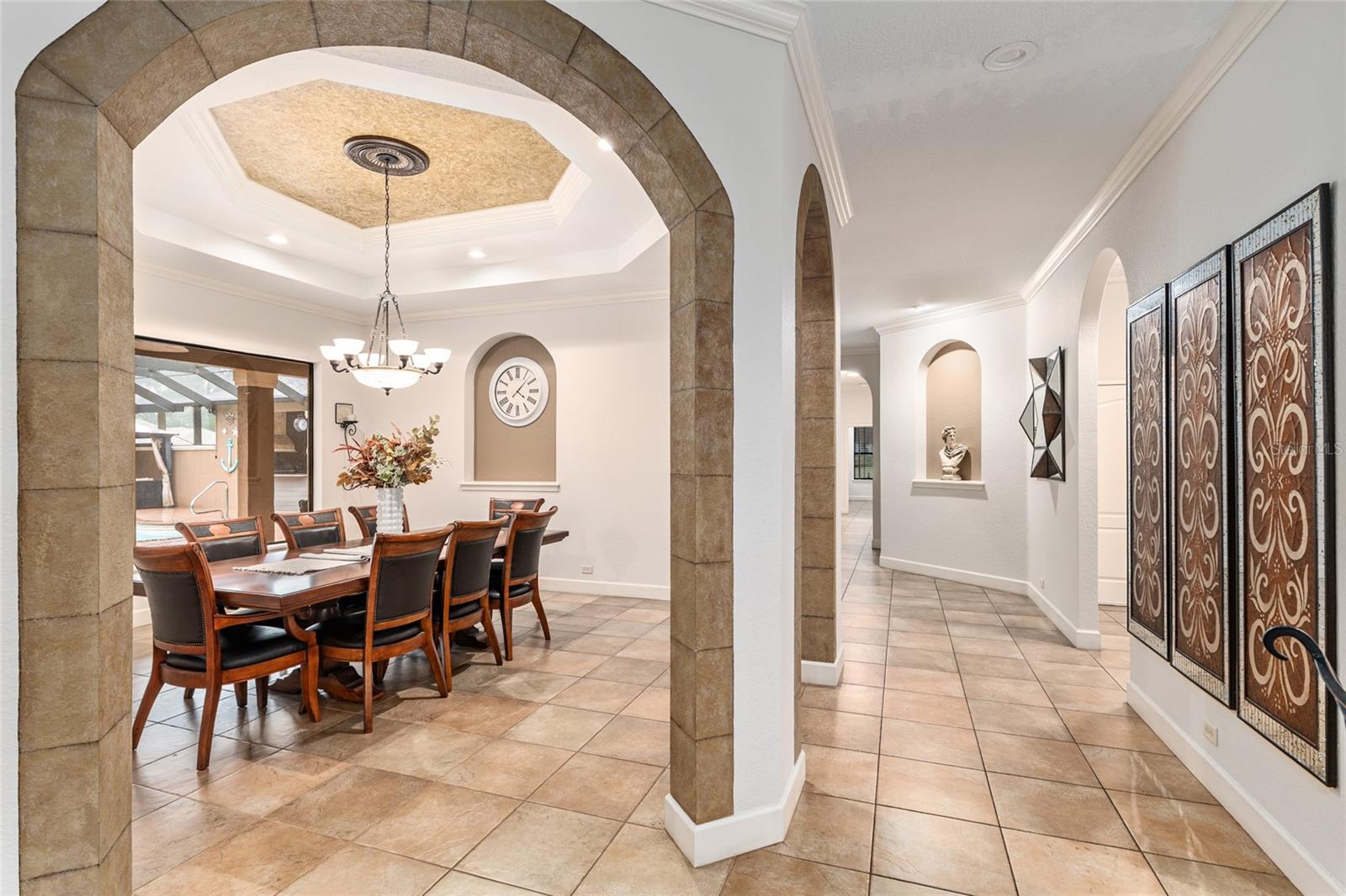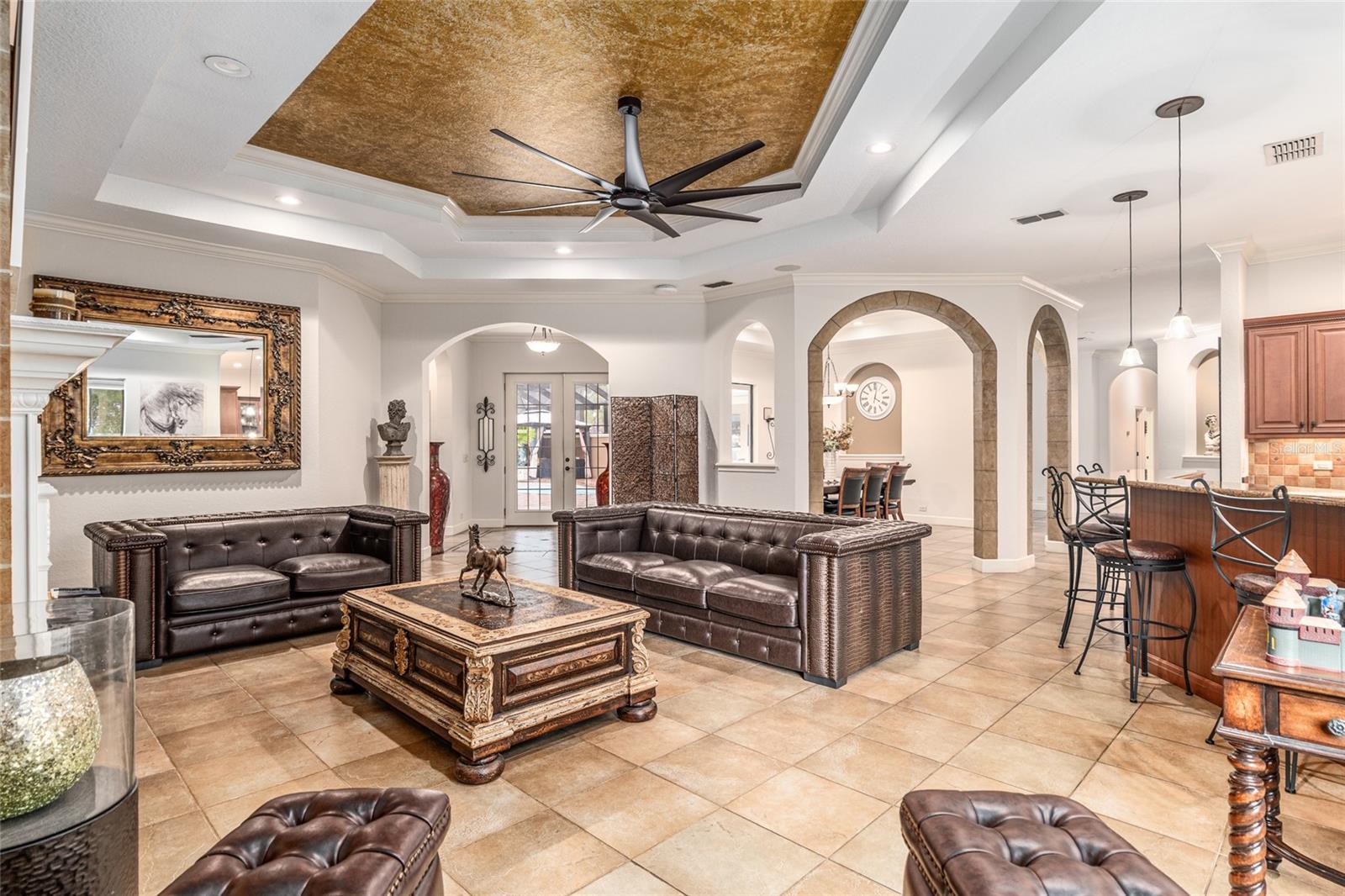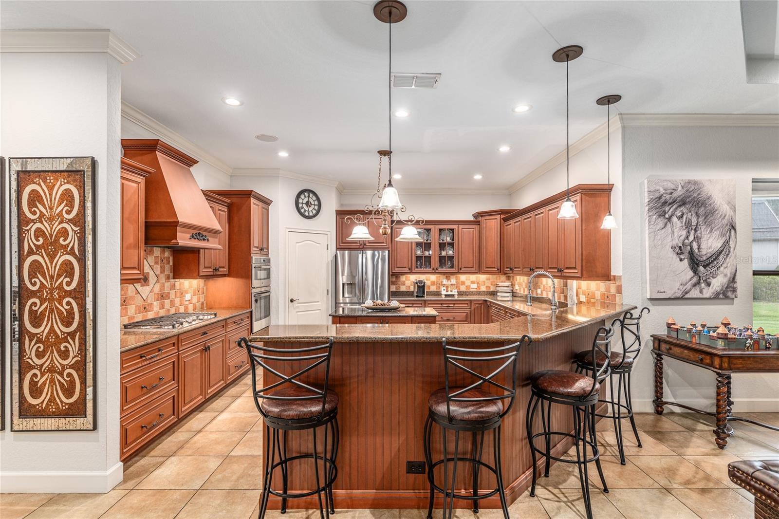 Privacidade. Exclusividade. Impressionante oásis mediterrâneo personalizado! Magnífica obra-prima exibida com destaque no exclusivo condomínio fechado de Devonshire, em Ocala. Através das enormes e convidativas portas duplas de madeira, você é recebido por um oásis de esplendor salpicado de serenidade e relaxamento suave. Seja agraciado por um estilo de vida simples ao chamar esta residência de lar. A suíte de entretenimento multiuso (5º BR) com cozinha, bar e banheiro completo também pode servir como suíte de sogros, refúgio para adolescentes ou sala de cinema (com projetor, tela elétrica e cortinas blackout), com porta para sua incrível cozinha de verão com churrasqueira, balcão com banquetas e cozinha externa. O ponto focal é a varanda envolvente que circunda a piscina de fibra de vidro salgada, o spa aquecido e o chuveiro externo. Através das portas francesas, a casa principal é complementada por portas em arco, pisos de madeira e cerâmica, quartos amplos e espaçosos, lareira a gás na grande sala e cozinha ampla com ilha, eletrodomésticos GE Profile atualizados e despensa com prateleiras embutidas. Duas salas bônus oferecem opções para uso múltiplo, para uma família em crescimento ou para uma vida multigeracional. O plano dividido oferece privacidade de forma inteligente para familiares e convidados. A enorme suíte principal oferece um banheiro sonhador e glamoroso com pias duplas, box amplo, banheira de hidromassagem, closet espaçoso com embutidos personalizados e porta para a varanda. Situado em um terreno de esquina enorme em um beco sem saída, o caminho circular, a fogueira externa, a pérgula e o amplo espaço no quintal completam a residência. Projetada e construída exclusivamente para este proprietário, esta casa oferece muitas atualizações, incluindo recursos de casa inteligente por toda parte, som surround por dentro e por fora, além de equipamentos, tetos altos, portas e janelas em arco, madeira de qualidade, azulejos de qualidade, balcões de quartzo e granito, pavimentação de garagem, além de todas as televisões e móveis ficarem. Sinta a qualidade deste oásis mediterrâneo – imperdível para apreciar. Simplesmente elegantemente deslumbrante.