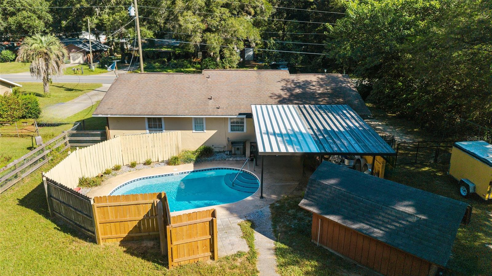 Casa de 3 quartos com piscina e lote extra em Ocala Park Estates Esta espaçosa casa de 3 quartos e 2 banheiros oferece 1.665 pés quadrados no total e fica em um lote de 0,24 acres, com o raro bônus de um lote adicional de 0,24 acres diretamente atrás da propriedade, perfazendo um total de 0,48 acres. O segundo lote é totalmente vedado com acesso rodoviário pavimentado, proporcionando flexibilidade para armazenamento, animais de estimação, jardinagem ou expansão futura. No interior, a casa apresenta um layout aberto com uma cozinha bem projetada com muitos armários e um bar que se abre para a área de jantar - ideal para refeições em família e entretenimento. Uma lavanderia dedicada oferece ainda mais armazenamento com armários embutidos. Saia pela porta dos fundos para o seu oásis privado ao ar livre. O quintal é totalmente vedado e inclui uma piscina subterrânea com cerca de privacidade própria, criando um espaço tranquilo e isolado para relaxar e descontrair. Um novo pátio coberto adiciona sombra e conforto para diversão durante todo o ano. Os edifícios adicionais incluem um galpão de armazenamento e um grande edifício de madeira 24x32, perfeito para uma oficina, espaço de hobby ou armazenamento extra. Alguns detalhes adicionados, incluindo um telhado em 2007 e um sistema de ar condicionado instalado em 2018. A localização é outro destaque: Ocala Park Estates oferece uma sensação de bairro tranquilo, ao mesmo tempo que fica a poucos minutos de lojas, restaurantes e serviços essenciais. Você também está a menos de 8 km da I-75, simplificando o deslocamento, e a apenas 14 km do centro de Ocala, hospitais e escolas locais. Para os cavaleiros, o Centro Equestre Mundial fica a apenas 6,4 km de distância, proporcionando acesso rápido a eventos, restaurantes e entretenimento de primeira linha. Esta casa oferece uma rara combinação de espaço, privacidade e comodidade com o valor acrescentado de um lote extra. Não perca a oportunidade de tornar este imóvel seu!