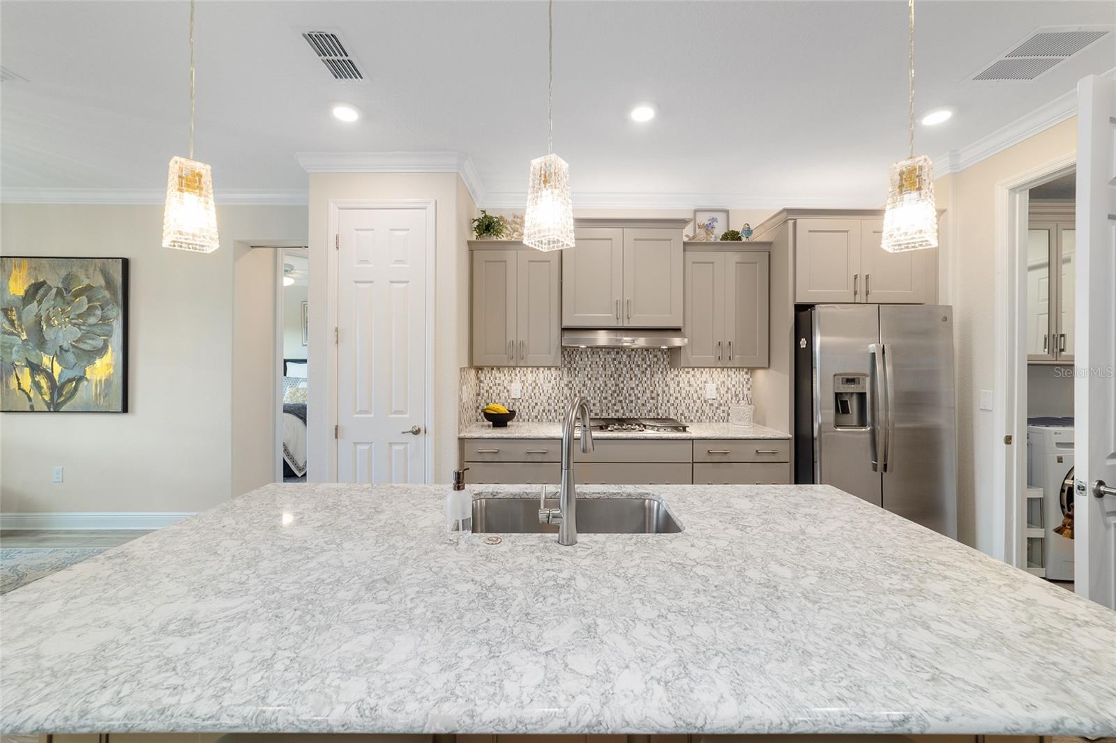 Vista privada! Bem-vindo a esta excepcional casa de 2 quartos e dois banheiros com uma sala flexível versátil, aninhada na comunidade serena de Long Leaf Ridge. Este modelo Livingston oferece a mistura perfeita de luxo e conforto, apoiando -se a um DRA tranquilo que fornece um cenário cênico privado, sem vizinhos diretamente atrás de você. Mais de US $ 80.000 em atualizações! A área de estar de conceito aberto possui um ventilador de teto e um controle deslizante de três painéis com persianas embutidas, levando a um lanai exibido com 3 fãs. A cozinha gourmet possui bancadas de quartzo, utensílios de aço inoxidável, incluindo um cooktop, um forno embutido e microondas, backsplash de telha e iluminação sub-cabinete. A sala flexível oferece infinitas possibilidades com uma bela porta deslizante e embutidos personalizados. A suíte primária é um verdadeiro retiro com um closet com embutido e um luxuoso banheiro na suíte com um chuveiro de vidro e azulejos. Ao ar livre, um pátio meticulosamente paisagístico, mostra 13x30 do grande pátio de pavimentação está sob o teto com 2 ventiladores, tornando -o um espaço ideal para entretenimento. Os recursos adicionais incluem piso LVP, lavanderia com pia e armários, um tubo solar para luz natural, calhas e garantia doméstica transferível. Esta casa é imperdível para quem procura um estilo de vida sofisticado e pacífico. Localizado na comunidade de 55 mais de 55 anos de Ocala, fechada e ativa, carregada de comodidades, incluindo acesso ao carrinho de golfe a 2 shopping centers.