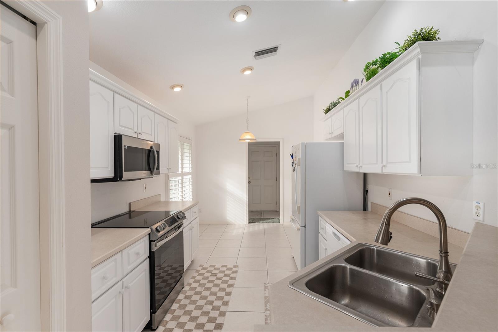 Bem -vindo a esta casa de 2 banheiros, com carinho, localizada em Lakeview Village. Lakeview Village faz parte do bairro procurado de Cala Hills, localizado na 19th Ave Rd (Easy Street). A comunidade está convenientemente aninhada em todas as compras, entretenimento e restaurantes que o sudoeste Ocala tem a oferecer. Sentado em pouco menos de 1/4 de acre, esta propriedade apresenta paisagismo colorido e árvores maduras. Dentro, você encontrará uma planta espaçosa com tetos altos e ladrilhos em toda a casa. As persianas foram instaladas em todas as janelas e portas deslizantes! A cozinha vem equipada com amplo gabinete e balcão, despensa e canto do café da manhã. O grande quarto primário possui uma porta deslizante para o seu lanchone, o teto da bandeja e uma baneada com vaidades duplas e um chuveiro. Sua exibida em Lanai é o espaço perfeito para relaxar com café e aproveitar o clima da Flórida. Lakeview Village apresenta comodidades a seus moradores para incluir o Clubhouse, Fitness Center, piscina e tênis. Novo telhado 2022!