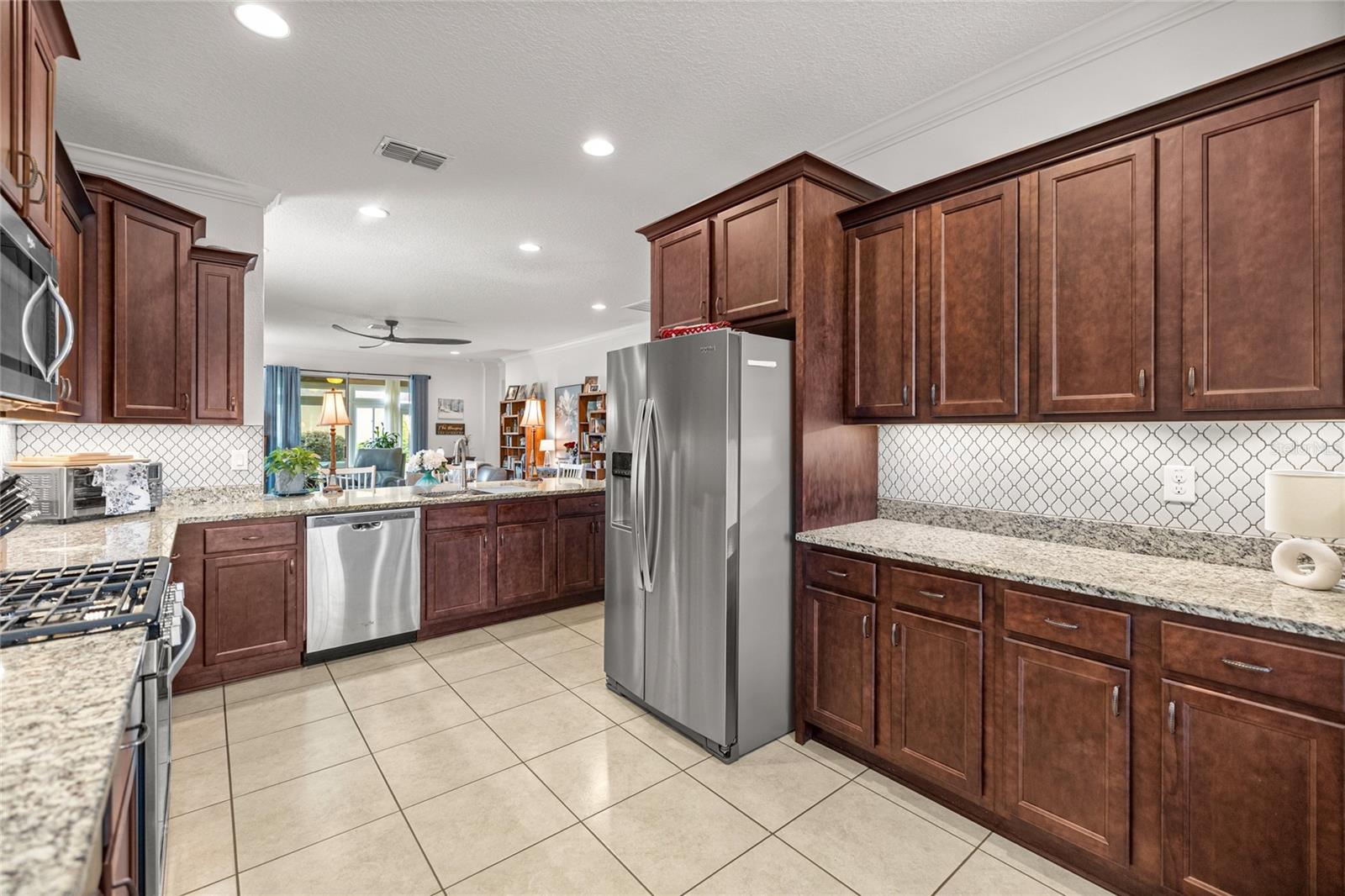 MANUTENÇÃO DE VIDA LIVRE. Imaculado como o novo modelo Kent na comunidade premier com mais de 55 anos, com um lindo oásis de marquise escondido na comunidade Windsor West do On Top Of The World. Localizado em uma rua sem saída tranquila em um belo terreno de esquina. A poucos minutos do centro de atividades Arbors, que inclui piscina coberta, piscina externa, academia e muito mais. Venha explorar esta comunidade adulta ativa com mais de 55 anos, com acesso de carrinho de golfe a 3 shopping centers. Casa imaculada e bem conservada de 2 quartos, 2 banheiros e garagem para 2 carros, oferece conforto elegante, atualizações modernas e vida de baixa manutenção. Entre para encontrar uma espaçosa planta aberta repleta de luz natural e atualizações por toda parte. Um hall de entrada espaçoso e acolhedor, tetos de 9'4 ", sancas em todas as áreas de estar. A cozinha gourmet possui bancadas de granito grandes, pia dupla, fogão a gás, backsplash de azulejos de vidro, copa, armários de cerejeira com sancas, eletrodomésticos de aço inoxidável, despensa e balcão de café da manhã perfeito para jantares casuais ou entretenimento. A área de jantar adjacente e a sala de estar fluem perfeitamente juntas, tornando a vida cotidiana relaxada e conectada. A suíte principal possui um amplo closet, pia dupla com balcões de quartzo, box amplo e um armário de roupa de cama conveniente. Um confortável quarto de hóspedes e banheiro completo com banheira/chuveiro oferecem versatilidade para visitantes ou um escritório em casa. armazenamento, sistema de filtragem de água e proteção contra surtos em toda a casa, incluindo piscinas, academias de ginástica, tênis, picles, campos de futebol, 3 campos de golfe, clubes sociais, restaurantes, armazenamento para trailers, centro educacional, organizações de serviços, trilhas para caminhada, parque para cães e muito mais.