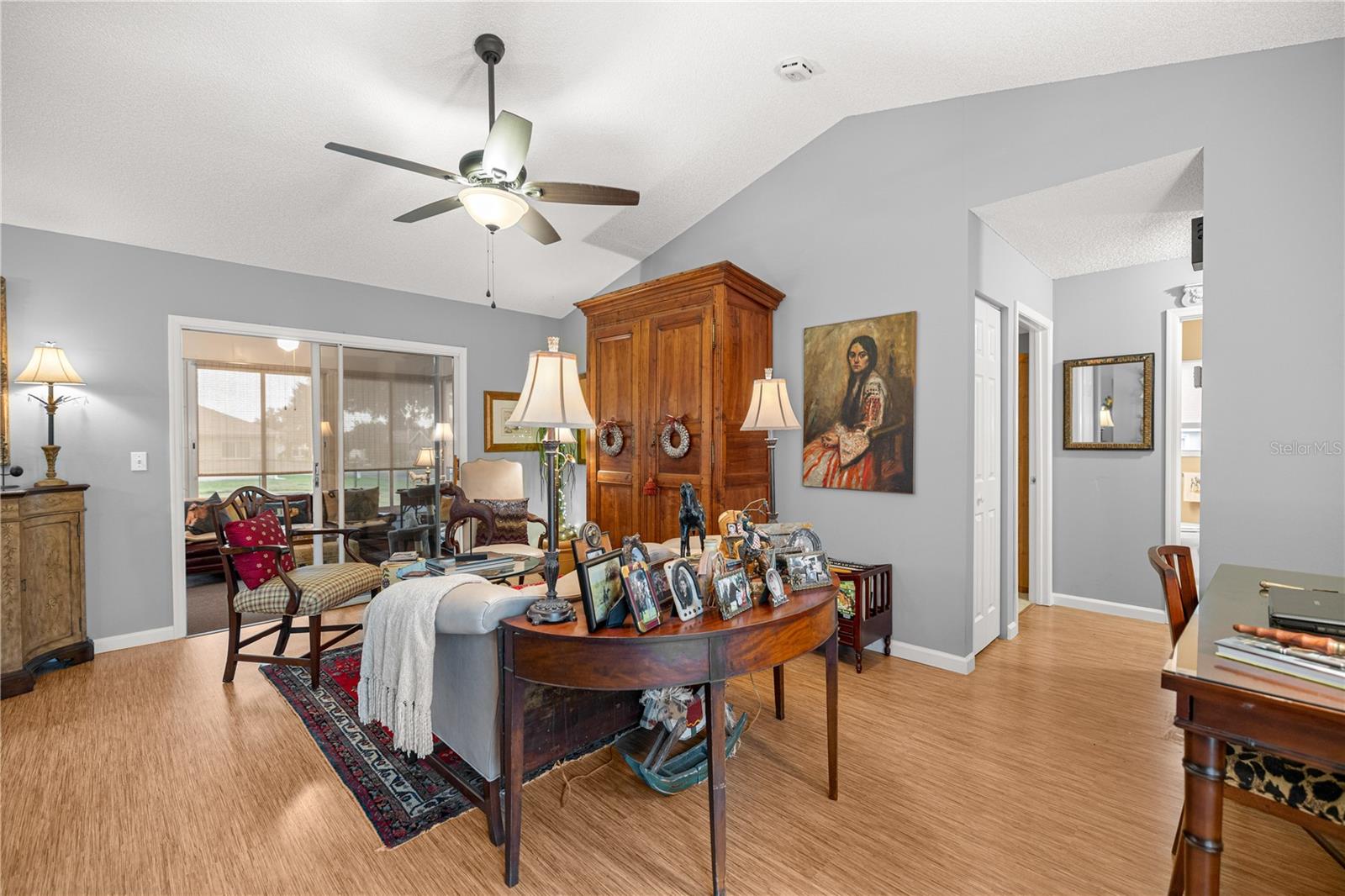 Bem-vindo a esta casa cercada, lindamente conservada, com 2 quartos e 2 banheiros no altamente desejável condomínio fechado de golfe com mais de 55 anos de Ocala Palms. Oferecendo conforto, estilo e conveniência, esta casa foi projetada para relaxamento e entretenimento. Entre para encontrar uma área de estar e jantar aberta e iluminada com tetos de catedral que criam uma sensação arejada e espaçosa. A cozinha possui bancadas de granito, eletrodomésticos de aço inoxidável e um aconchegante recanto com janela saliente - perfeito para o café da manhã. Relaxe na espaçosa suíte master com box amplo e amplo armário, enquanto o quarto de hóspedes e o segundo banheiro completo proporcionam conforto e privacidade aos visitantes. Aproveite a vida na Flórida o ano todo no quarto fechado da Flórida ou em seu quintal privativo cercado. As características adicionais incluem lavandaria interior e uma grande garagem para 2 carros e arrumos. Novo ar-condicionado em 2025. Localizado em Ocala Palms, você terá acesso a golfe, tênis, piscinas internas e externas, academia e inúmeras atividades sociais - tudo a poucos minutos de lojas, restaurantes e do World Equestrian Center.