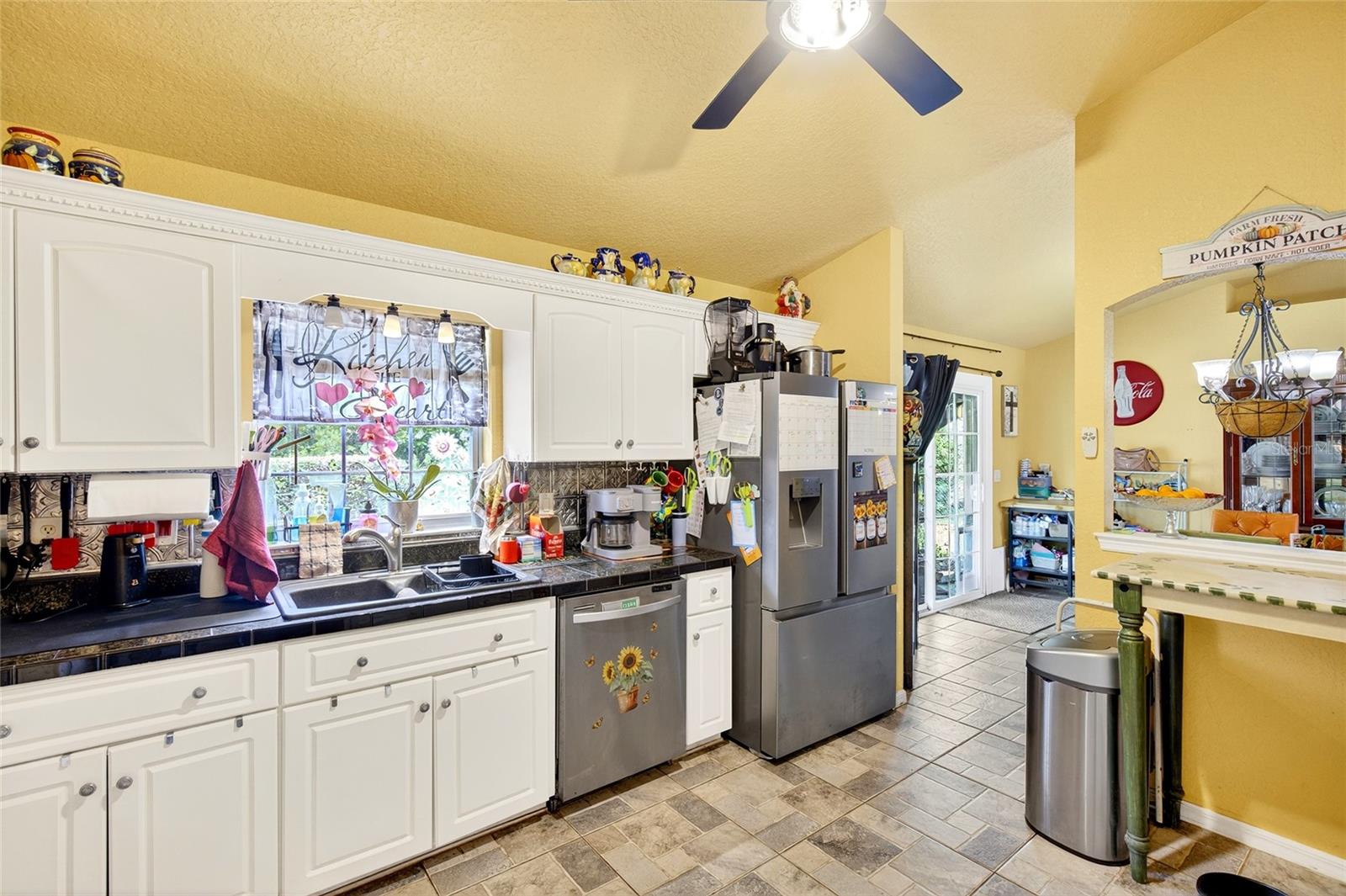 Casa de blocos de concreto lindamente mantida localizada em mais de meio acre e ostentando um novo telhado 2024, e HVAC 2016 oferecendo mais de 1.500 pés quadrados já está disponível! Em toda esta casa você não encontrará carpete para manutenção simplificada e sim um conceito aberto com tetos de catedral. A luz natural flui da frente para trás da casa e tem um conceito dividido. A cozinha oferece armários personalizados com bancada em granito e eletrodomésticos em aço inox. A área de jantar formal é perfeita para entretenimento e reuniões. As janelas são 'Anderson' e fornecem eficiência energética junto com durabilidade. A suíte master possui closet e banheiro privativo com ducha vertical. Saindo para o pátio dos fundos você encontrará uma vista arborizada e um quintal parcialmente cercado! Não há visão de vizinhos aqui. Pronto para você, reserve seu passeio hoje mesmo!