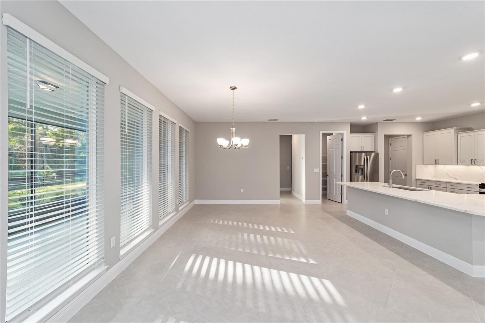 Impressionante modelo Magnolia em LongLeaf Ridge – No topo do mundo Bem-vindo ao requintado Magnolia Model no altamente desejável bairro de LongLeaf Ridge, no Top of the World. Esta casa cuidadosamente projetada possui 2 quartos, 2,5 banheiros, garagem para 2 carros e garagem para carrinhos de golfe, oferecendo estilo e funcionalidade. Entre em uma planta iluminada e aberta com piso de cerâmica, muita luz natural e portas deslizantes de 4 painéis na área de estar que levam a uma varanda sem vizinhos traseiros, perfeita para entreter ou relaxar com privacidade. A área de jantar adjacente é destacada por quatro janelas do chão ao teto, enchendo o espaço de luz solar e calor. A cozinha gourmet possui armários escalonados com sancas, eletrodomésticos de aço inoxidável, uma ilha em forma de L com bancada de quartzo e backsplash, iluminação sob o armário e uma despensa - uma combinação perfeita de beleza e funcionalidade. A luxuosa suíte master possui uma janela de 3 painéis com vista para o quintal, um closet e um banheiro tipo spa com pias duplas de quartzo e um chuveiro de azulejos com entrada zero e bancada embutida. O segundo quarto oferece um closet espaçoso e banheiro privativo com pia de quartzo individual e banheira/chuveiro de azulejos. Uma sala flexível versátil oferece espaço adicional para um escritório, escritório ou área de hobby. Aproveite as comodidades e o estilo de vida ativo que o On Top of the World oferece, incluindo trilhas para caminhada, academias de ginástica, clubes sociais e golfe, tudo em uma comunidade acolhedora com mais de 55 anos. Com acabamentos elegantes, layout aberto e localização privilegiada em LongLeaf Ridge, esta casa combina perfeitamente conforto, estilo e praticidade – tornando-a um lugar perfeito para chamar de lar.