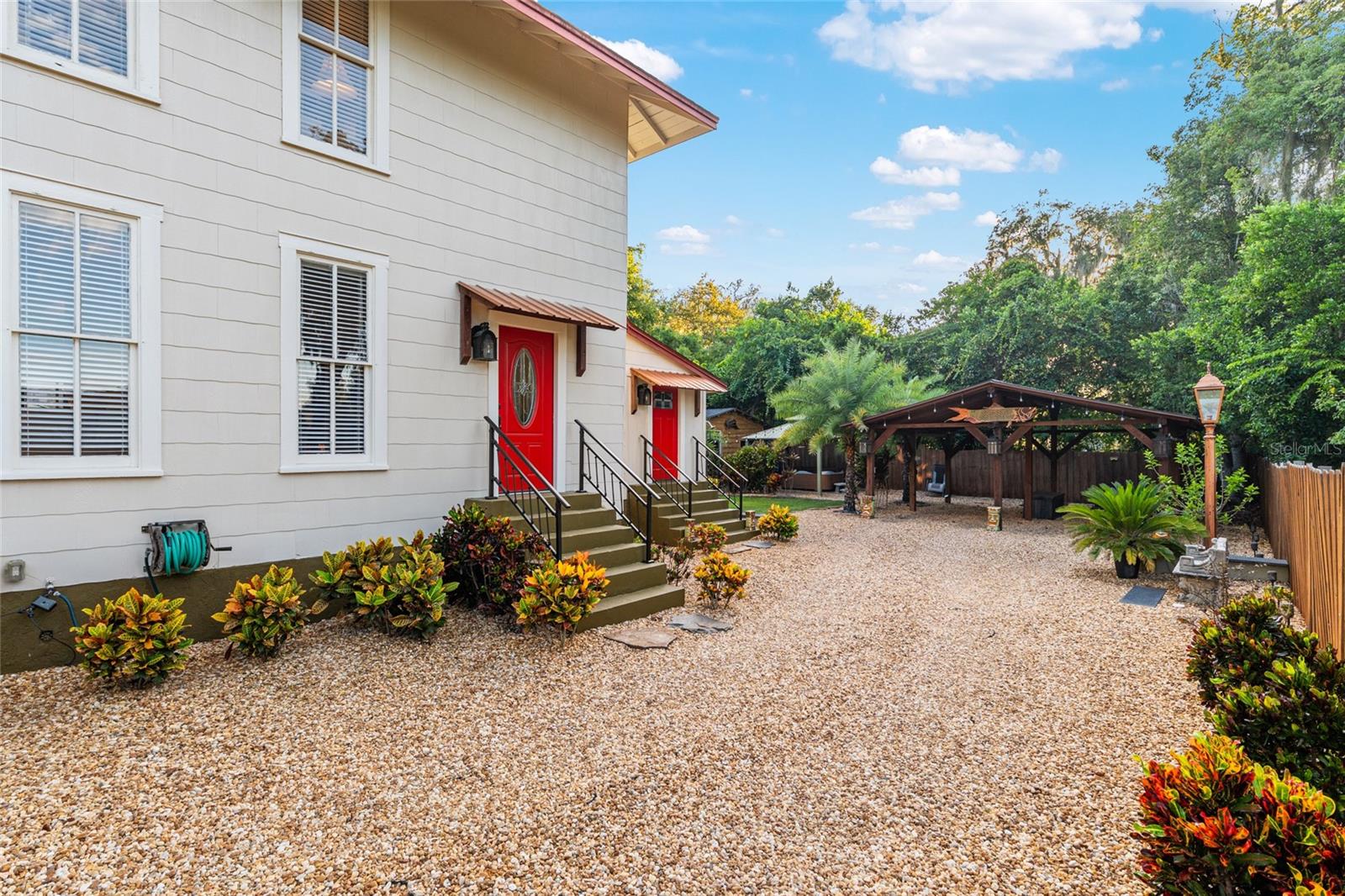 Pronto para morar e totalmente atualizado no coração do bairro histórico de Downtown Ocala! Esta propriedade lindamente mantida combina inovação moderna com charme atemporal, oferecendo não apenas uma casa principal meticulosamente atualizada, mas também um edifício de hóspedes versátil e independente, ideal para um escritório doméstico, Airbnb, estúdio criativo ou alojamento de hóspedes. Entre para encontrar novos pisos de madeira e bambu, elegantes bancadas de granito e uma área de bar com geladeira para bebidas para entretenimento. A cozinha está equipada com eletrodomésticos inteligentes de aço inoxidável, incluindo fogão a gás, geladeira, lava-louças e micro-ondas. Desfrute de conforto o ano todo com unidades mini-split que oferecem controle de temperatura por zonas e aprecie o trabalho artesanal de uma histórica porta de madeira asiática de 300 anos do Seven Sisters Inn - um ponto focal impressionante que conecta o passado e o presente da casa. As atualizações recentes incluem um aquecedor de água sem tanque, um sistema de resfriamento e aquecimento com um ano de uso e integração residencial inteligente controlando iluminação, tomadas, irrigação e eletrodomésticos. Um banheiro inteligente de luxo com bidê embutido, internet de fibra óptica e iluminação LED garantem que a conveniência atenda à tecnologia. A propriedade está totalmente vedada e dispõe de portão eléctrico de segurança, iluminação com sensor de movimento e sistema de irrigação inteligente para o jardim e relvado. A vida ao ar livre é redefinida com dois gazebos de metal, uma extensão de deck de madeira, chuveiro externo com água quente e fria e um pátio com iluminação ambiente LED – perfeito para relaxar à noite. O edifício bônus climatizado (caverna, academia ou estúdio) oferece um potencial infinito para uso pessoal ou de geração de renda. Os destaques adicionais incluem uma garagem segura com estacionamento, amplo armazenamento embaixo da casa e cinco estações de água convenientes para animais de estimação, jardins ou limpeza fácil. Localizada em uma área adequada para carrinhos de golfe, a poucos passos dos vibrantes restaurantes, boutiques e atrações culturais do centro de Ocala, esta propriedade oferece luxo moderno envolto em caráter histórico. Raramente uma casa oferece esse nível de versatilidade, conforto e estilo. Agende sua exibição privada hoje e experimente o melhor da vida em Ocala - onde história, tecnologia e estilo de vida se encontram.