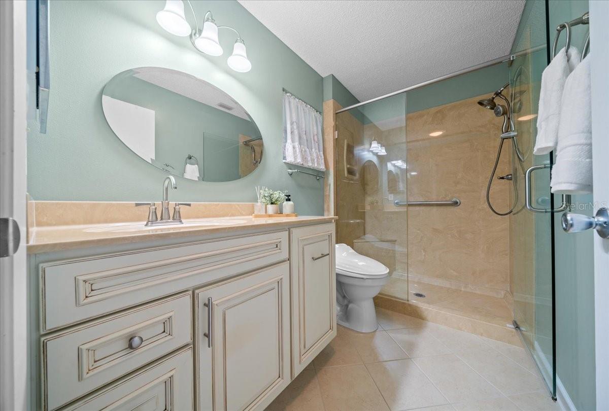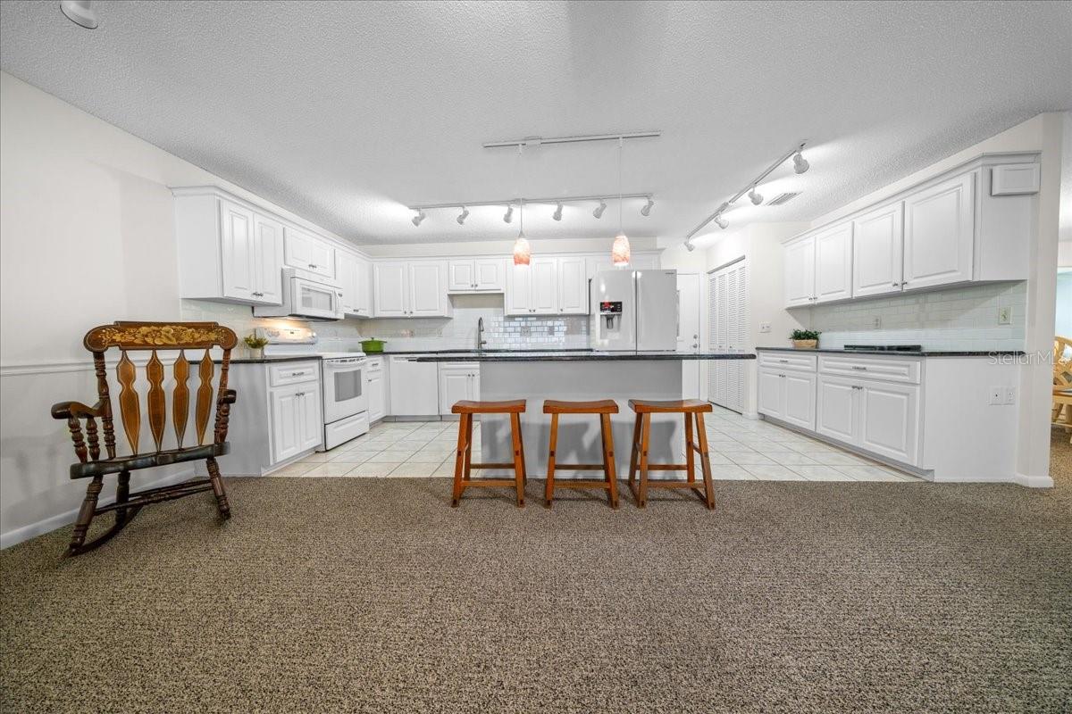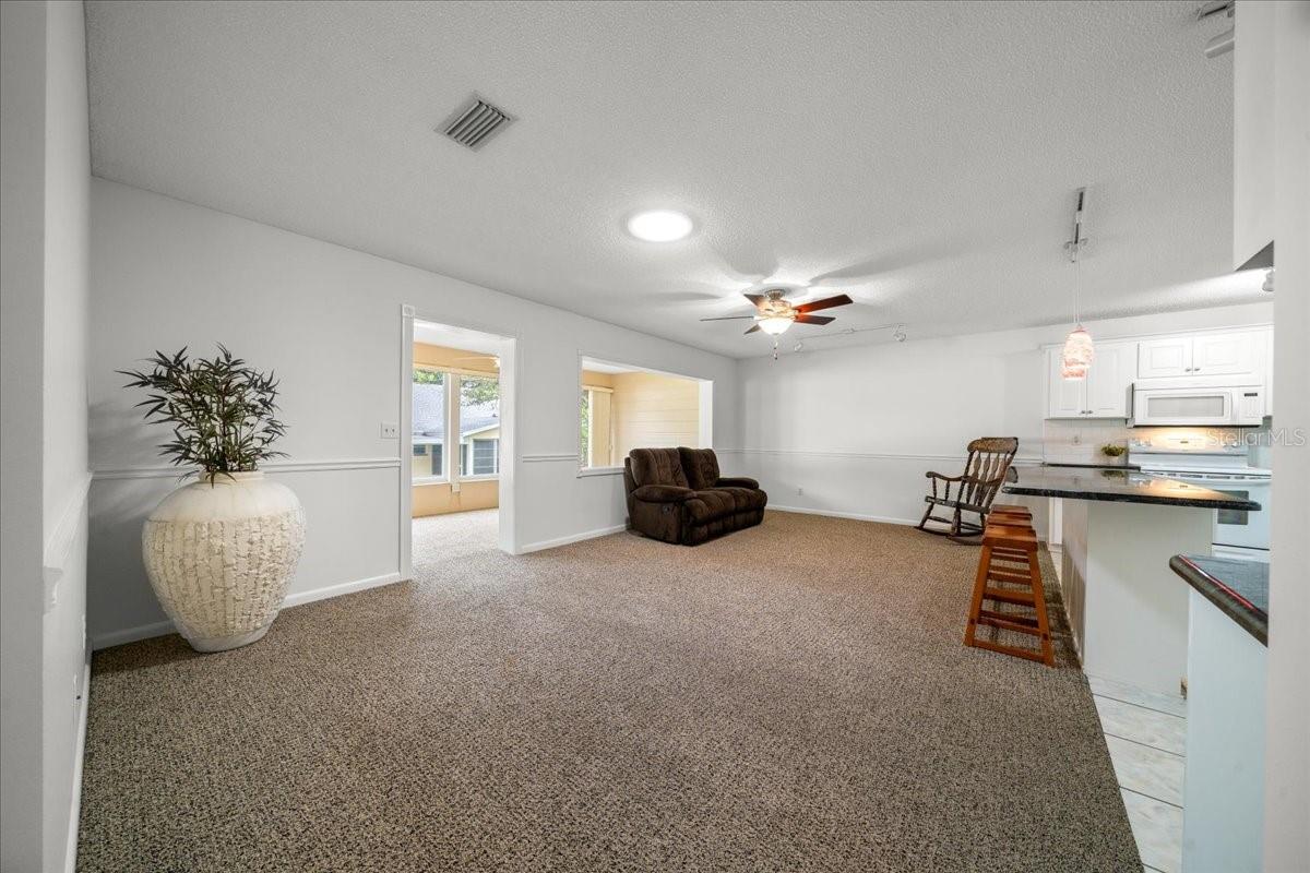 Uma ou mais fotos foram virtualmente encenadas. Modelo bostoniano meticulosamente atualizado em On Top of The World, uma das comunidades mais populares de Ocala com mais de 55 anos. Esta villa de 2 quartos e 2 banheiros com garagem para dois carros está repleta de atualizações e está pronta para morar. Esta villa é ampla, oferecendo 1.835 pés quadrados de área útil com ar condicionado e tubos solares cuidadosamente posicionados que proporcionam muita luz natural em todas as áreas principais da casa. A espaçosa cozinha foi recentemente atualizada com armários brancos brilhantes com prateleiras removíveis, backsplash branco de azulejos de metrô, bancadas de granito preto, um pacote de eletrodomésticos de aço inoxidável e uma ilha grande com assentos de bar - perfeita para entretenimento. Aproveite seu café da manhã na marquise anexa ou relaxe na varanda fechada com ar-condicionado. A espaçosa suíte principal oferece um banheiro privativo remodelado com chuveiro com box de vidro e chuveiro com efeito de chuva com sistema de spray corporal separado, enquanto o banheiro de hóspedes também foi atualizado com um chuveiro de vidro e uma bela penteadeira. Toda a casa foi pintada recentemente por dentro e por fora, com um telhado mais novo (2022), e você nunca mais precisará se preocupar com falta de energia, pois esta casa possui conexão para gerador e gerador que alimentará toda a casa. Até a garagem foi remodelada, com armários para arrumação e portão de garagem isolado com tela de privacidade. On Top of The World é uma comunidade amigável para carrinhos de golfe, onde os residentes podem desfrutar de um estilo de vida ativo e de baixa manutenção, com três piscinas (duas externas e uma interna (mais outra em construção), duas academias de ginástica, pickleball, tênis, shuffleboard, bocha, ferraduras e mais de 175 tacos. Há também uma marcenaria, um campo de tiro com arco, um campo de voo com controle remoto e acesso a três shopping centers próximos - todos acessíveis por carrinho de golfe. E você terá muito tempo para aproveite tudo isso e muito mais, porque esta vila oferece o benefício de uma vida livre de manutenção - a taxa HOA mensal cobre cabos básicos, reparo de telhado, pintura externa a cada sete anos, água de irrigação, manutenção externa e seguro, paisagismo, lixo e reciclagem, além de segurança fechada 24 horas por dia, 7 dias por semana, em uma das comunidades mais vibrantes de Ocala, esta casa oferece tudo o que você poderia desejar em termos de conforto, conveniência e tranquilidade. linda casa hoje!