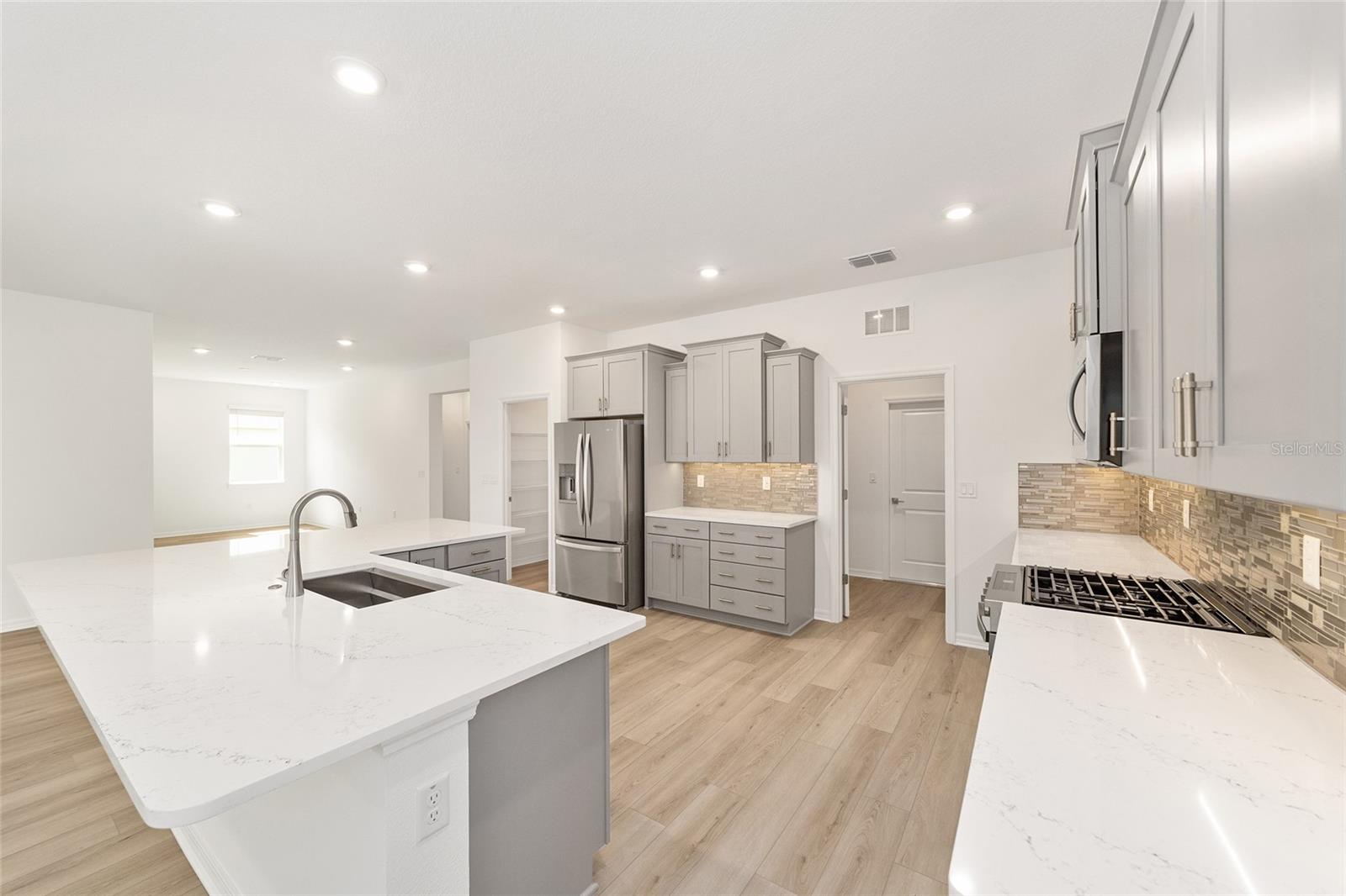 Modelo encantador de glicínias em LongLeaf Ridge no On Top of the World! Entre nesta casa lindamente projetada de 3 quartos e 2 banheiros, garagem para 2 carros e planta de conceito aberto, oferecendo estilo e funcionalidade. A cozinha gourmet é uma delícia do chef, com armários escalonados com sancas, bancadas de quartzo, backsplash de azulejos, eletrodomésticos de aço inoxidável, iluminação sob o armário, despensa e uma espaçosa ilha em forma de L perfeita para entretenimento. A área de estar flui perfeitamente para a varanda através de portas de vidro deslizantes, criando uma conexão natural entre interior e exterior. A suíte principal oferece um retiro sereno com banheiro privativo com pia dupla de quartzo, box amplo de azulejos com porta de vidro, armário de roupa de cama e closet amplo. O segundo quarto possui um armário espaçoso e está convenientemente localizado perto do segundo banheiro, que oferece uma pia estendida com quartzo e uma combinação de banheira e chuveiro de azulejos. Aproveite o estilo de vida vibrante e ativo do On Top of the World, uma comunidade importante para mais de 55 pessoas em Ocala, com comodidades de classe mundial, golfe, natação, fitness e infinitas oportunidades sociais projetadas para diversão e conexão.