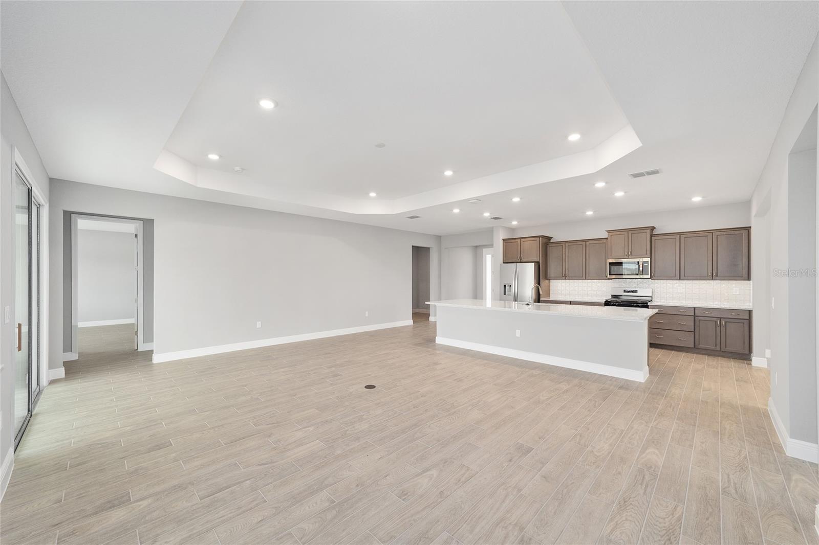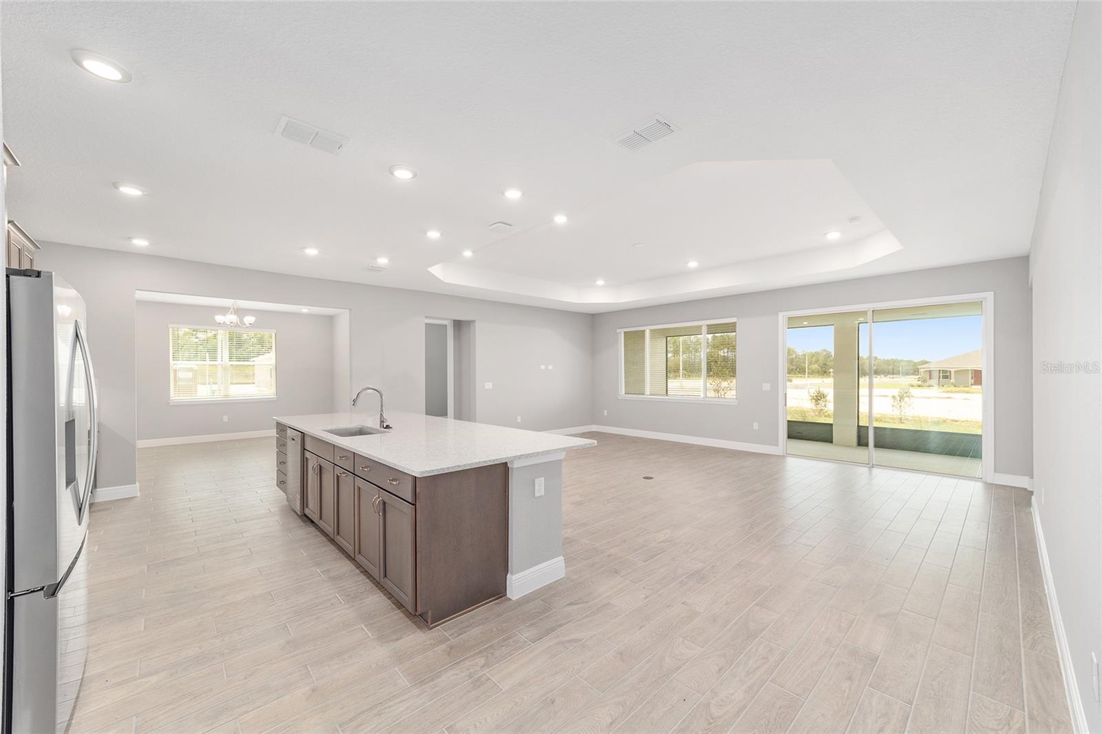 Lindo novo modelo Willem de construção em Longleaf Ridge! Bem-vindo a este novo modelo Willem deslumbrante que oferece mais de 2.500 pés quadrados de espaço lindamente projetado. Situada em um lote de esquina desejável, esta casa de 3 quartos, 3 banheiros e garagem para 2 carros combina design elegante com conforto funcional. A planta aberta apresenta piso de cerâmica e tetos que melhoram a sensação luminosa e espaçosa da casa. A cozinha gourmet é uma vitrine com eletrodomésticos de aço inoxidável, uma grande ilha com bancada de quartzo, armários escalonados com sancas, iluminação sob o armário, backsplash de azulejos e despensa. Uma área de jantar separada oferece o espaço perfeito para receber familiares e amigos. A luxuosa suíte principal inclui um teto falso e uma janela de três painéis com vista para o quintal, um grande closet e um banheiro privativo inspirado em spa com pias duplas de quartzo e um chuveiro de azulejos com entrada zero e banco embutido. O quarto 2 oferece seu próprio banheiro privativo com uma penteadeira de quartzo estendida e um box amplo de azulejos com porta de vidro. O quarto 3 tem um armário espaçoso e acesso conveniente ao terceiro banheiro completo, que inclui uma penteadeira de quartzo e uma combinação de banheira/chuveiro de azulejos. Localizada no desejável bairro de Longleaf Ridge, no Top of the World, esta casa excepcional combina design moderno, conforto e comodidades incomparáveis de uma das principais comunidades adultas ativas de Ocala.