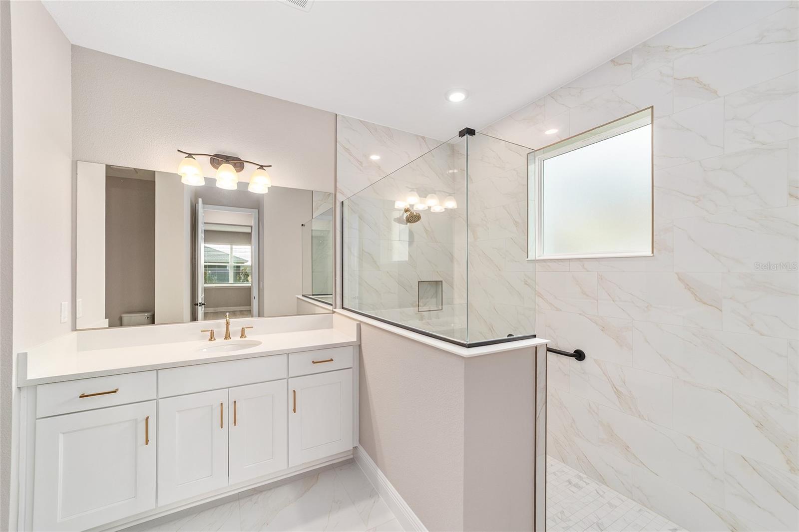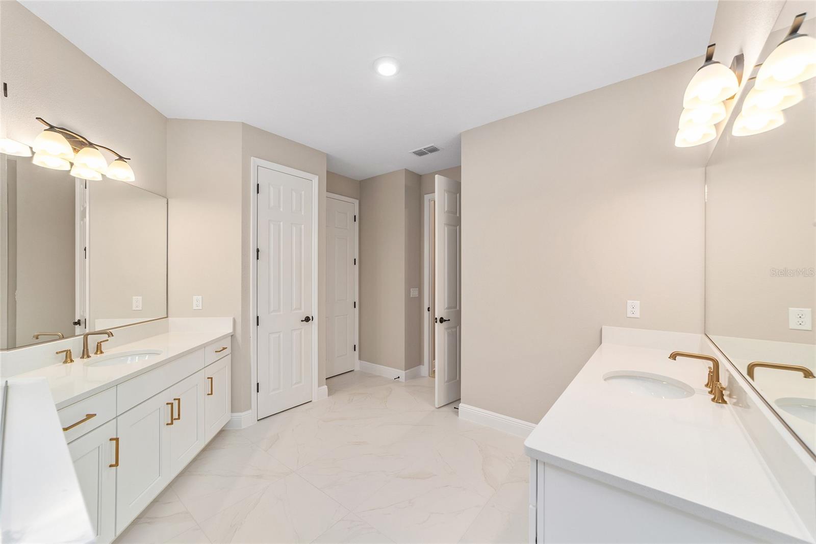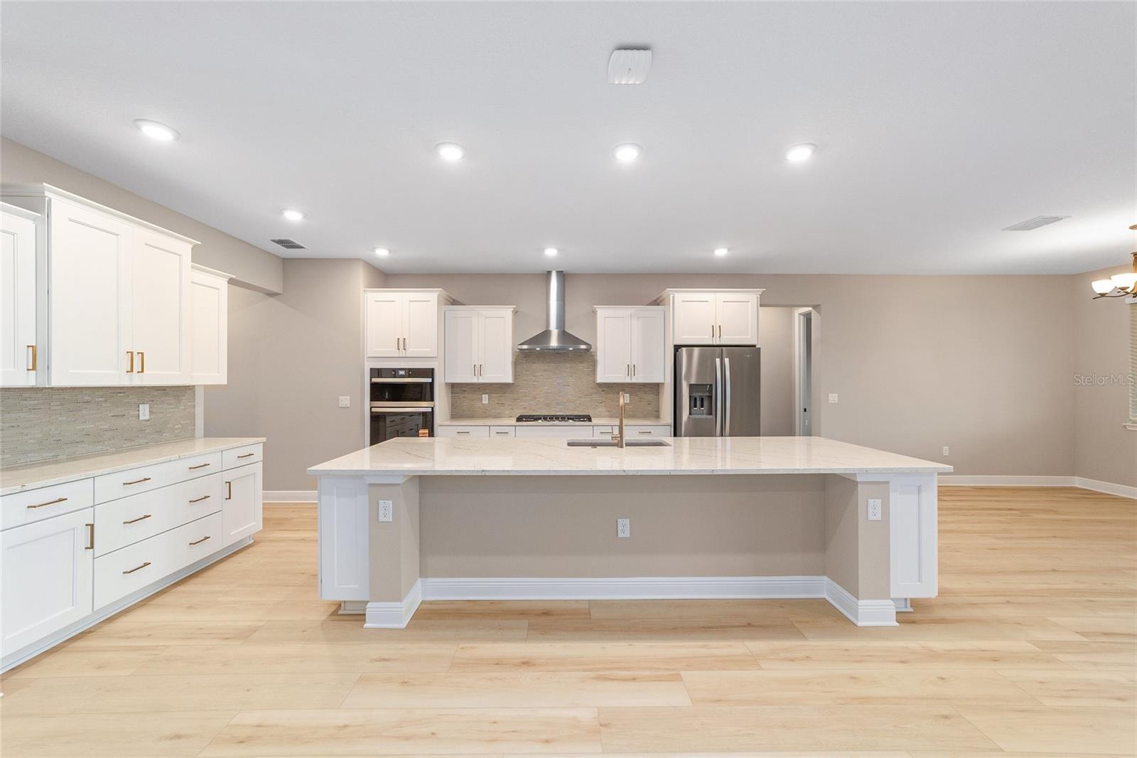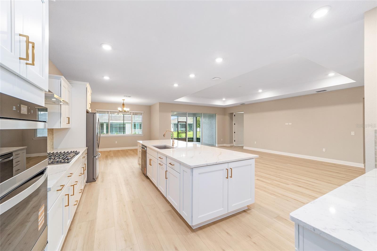 Impressionante Aberdeen em Longleaf Ridge! Este luxuoso modelo de nova construção de Aberdeen oferece mais de 2.900 pés quadrados de área de estar lindamente projetada com 3 quartos, 3 banheiros, uma sala flexível com portas francesas e uma garagem para 3 carros. Com portas de entrada francesas, tetos planos e uma planta aberta, esta casa combina perfeitamente elegância, funcionalidade e conforto moderno. A cozinha gourmet é o sonho de um chef com armários escalonados brancos premium com sancas, iluminação sob o armário, bancadas de quartzo, forno e micro-ondas embutidos, fogão de 5 bocas com exaustor, eletrodomésticos de aço inoxidável, um backsplash elegante, uma ilha central de grandes dimensões e uma espaçosa despensa. A área de estar possui um teto grande e uma porta deslizante de 3 painéis que se abre para a varanda com tela, criando uma vida interna e externa perfeita. A suíte principal é um verdadeiro retiro com cinco janelas com persianas, um teto de bandeja e um banheiro luxuoso com piso de cerâmica, penteadeiras de quartzo estendidas para ele e para ela, box amplo de azulejos com entrada zero e banco embutido e closets para ele e para ela. O quarto 2 oferece duas janelas com persianas, banheiro privativo com penteadeira única com tampo de quartzo, box amplo de azulejos com bancada embutida e closet. O quarto 3 fica ao lado do terceiro banheiro, que possui uma pia única e uma combinação de banheira/chuveiro de azulejos. O espaço flexível na frente da casa, completo com portas francesas, oferece um espaço ideal para escritório, escritório ou sala de hobby. Localizada no cobiçado bairro de Longleaf Ridge, no On Top of the World, esta casa combina acabamentos de alta qualidade, design inteligente e acesso às comodidades em estilo resort da comunidade para o que há de melhor na vida na Flórida.