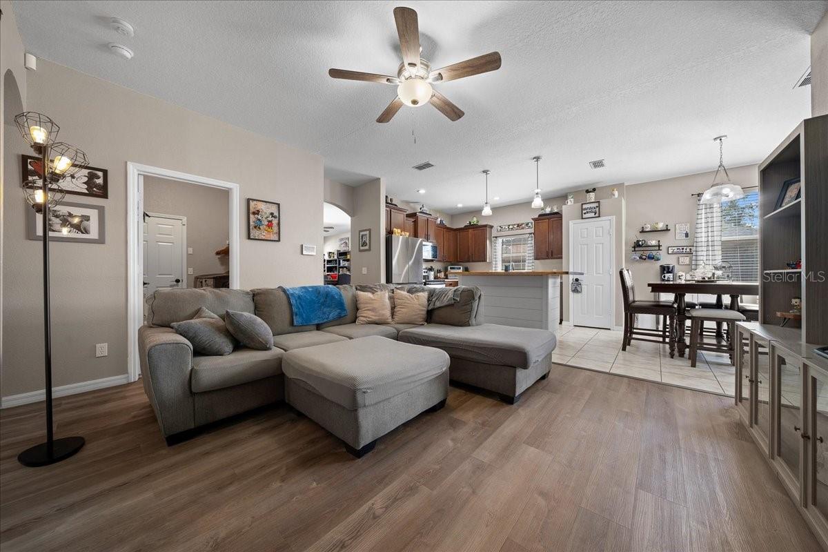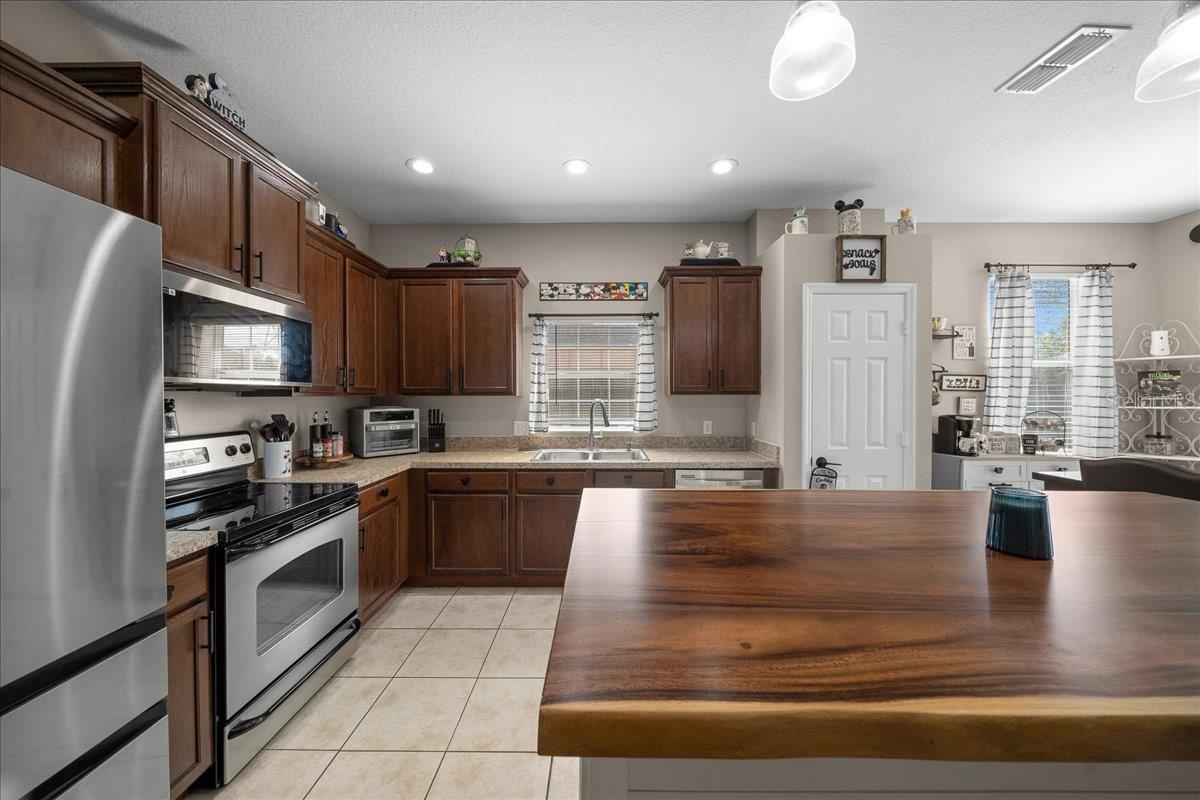 Esta casa deslumbrante e pronta para morar oferece mais de 1.800 pés quadrados de espaço cuidadosamente atualizado, com 3 quartos espaçosos, 2 banheiros completos e um layout projetado para conforto e estilo. Esta casa recebe você com tetos altos, luz natural abundante e piso de pranchas de vinil de luxo mais recente por toda parte. Ao entrar, você é recebido por uma ampla combinação formal de sala de estar e sala de jantar - ideal para entretenimento ou reuniões familiares. O coração da casa é a grande cozinha de conceito aberto, que apresenta ricos armários de madeira escura, elegantes sancas, eletrodomésticos de aço inoxidável, uma despensa e uma charmosa copa. Uma ilha personalizada com assentos amplos conecta perfeitamente a cozinha à aconchegante sala de família, garantindo que ninguém fique de fora durante a preparação da refeição ou o entretenimento. A espaçosa suíte principal possui um closet grande e um banheiro privativo lindamente atualizado, completo com pias duplas, bancadas de granito e um box amplo adornado com azulejos de metrô atemporais. Dois quartos adicionais de tamanho generoso e um segundo banheiro completo com banheira de imersão oferecem conforto e privacidade para hóspedes ou familiares. As atualizações recentes incluem luminárias e ventiladores de teto mais novos e uma unidade de ar condicionado com eficiência energética 16 SEER que tem apenas alguns anos. O exterior é igualmente impressionante. O lote de um quarto de acre totalmente cercado oferece privacidade e segurança. Aproveite a vida na Flórida o ano todo no pátio coberto dos fundos, ideal para relaxar ou se divertir. A poucos minutos das melhores escolas, lojas, restaurantes e instalações médicas. Não perca esta oportunidade de ter uma casa chave na mão numa localização privilegiada!