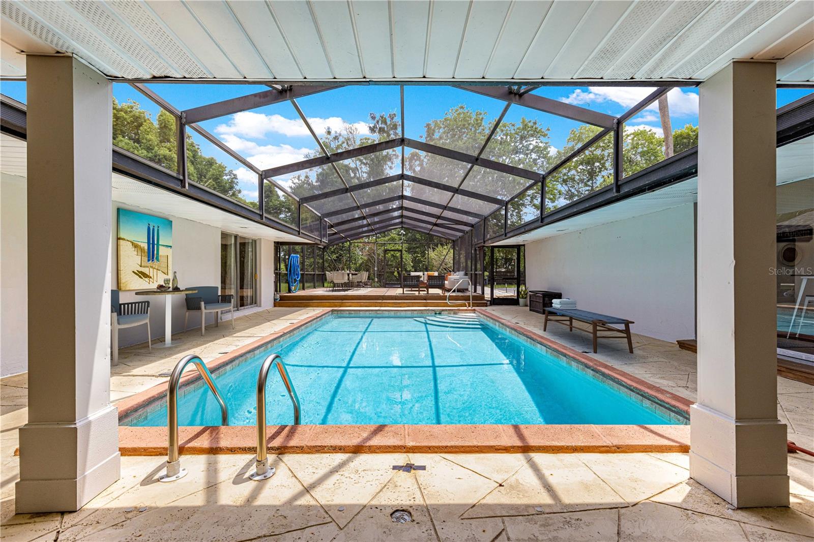 Bem-vindo à sua fatia particular do charme da Velha Flórida! Com um design verdadeiramente único, esta casa gira em torno de uma piscina subterrânea cristalina. O layout excepcional em estilo de pátio oferece uma vida interna e externa perfeita. A espaçosa área de estar apresenta calor e charme arquitetônico com um teto abobadado de madeira macho e fêmea, ancorado por uma impressionante lareira de pedra. A sala de jantar fica ao lado da área de estar e da espaçosa cozinha com armários brancos, eletrodomésticos de aço inoxidável e área para refeições! Possibilidades infinitas com duas salas bônus além dos 3 quartos! Procurando um aluguel de curto prazo? Potencial chave na mão com charme inesquecível! Os hóspedes vão adorar a piscina privativa em estilo pátio, os vários pontos de acesso de dentro da casa e o ambiente tranquilo e à sombra de árvores. Design cuidadoso, confortos modernos e uma localização que parece uma joia escondida fazem deste um investimento de alto desempenho esperando para acontecer. As atualizações recentes incluem um novo telhado e entrada de automóveis de asfalto em 2021 e um novo painel elétrico de 200 A em 2025. Todos os cinco conjuntos de portas de vidro deslizantes foram atualizados para vidro duplo com baixo consumo de energia em 2025. Sem HOA! Situado em um terreno de tamanho generoso de 0,78 acres com uma entrada circular conveniente para o centro de Ocala, o corredor Hwy 200 e a I-75. Agende uma visita privada para apreciar verdadeiramente tudo o que este imóvel tem para oferecer!