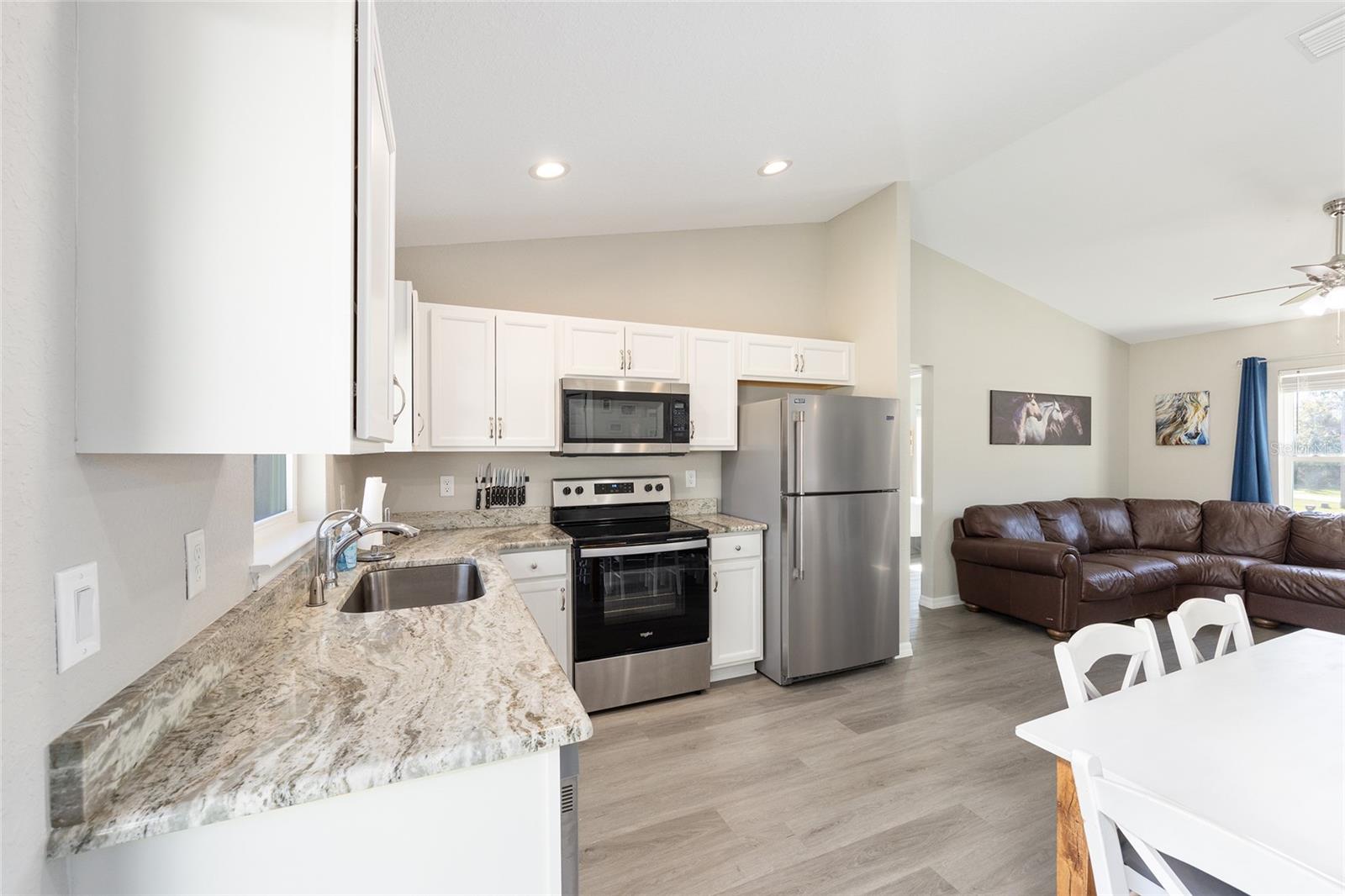 Charmosa casa moderna em espaçoso terreno de esquina – ideal para famílias ou investimento Airbnb! Descubra esta deslumbrante residência construída em 2021, que combina perfeitamente o conforto moderno com uma vida de baixa manutenção. Esta casa pronta para uso com 3 quartos e 2 banheiros apresenta construção de blocos duráveis, janelas com eficiência energética para economia durante todo o ano e luxuoso piso de pranchas de vinil - sem tapetes para se preocupar! Entre no coração da casa: uma cozinha bem iluminada com elegantes bancadas de granito, completa com todos os eletrodomésticos, incluindo lavadora e secadora para maior comodidade. Ambas as casas de banho ecoam esta elegância com acabamentos em granito a condizer. Situada num generoso lote de esquina que combina duas parcelas num total de 0,49 hectares, a propriedade oferece amplo espaço exterior. Desfrute de privacidade e segurança com uma cerca de madeira de 6 pés de altura que envolve o quintal - perfeita para família, animais de estimação ou entretenimento - completa com 2 grandes portões de acesso para facilitar a entrada de seu barco, trailer ou brinquedos de 4 rodas! E se isso não bastasse, há um sistema de alarme de anel e câmeras externas Hikvision com fio que gravam e podem ser visualizadas remotamente, proporcionando segurança máxima. Localização é tudo! Situada perto do Centro Equestre Mundial, do pitoresco Rio Rainbow e de uma variedade de lojas e restaurantes, esta casa é uma excelente escolha para famílias que procuram um retiro tranquilo ou para investidores experientes que procuram o potencial da Airbnb para obter fortes rendimentos de aluguer. Preço de venda – não perca esta joia chave na mão meticulosamente mantida! Entre em contato para detalhes e apresentações.