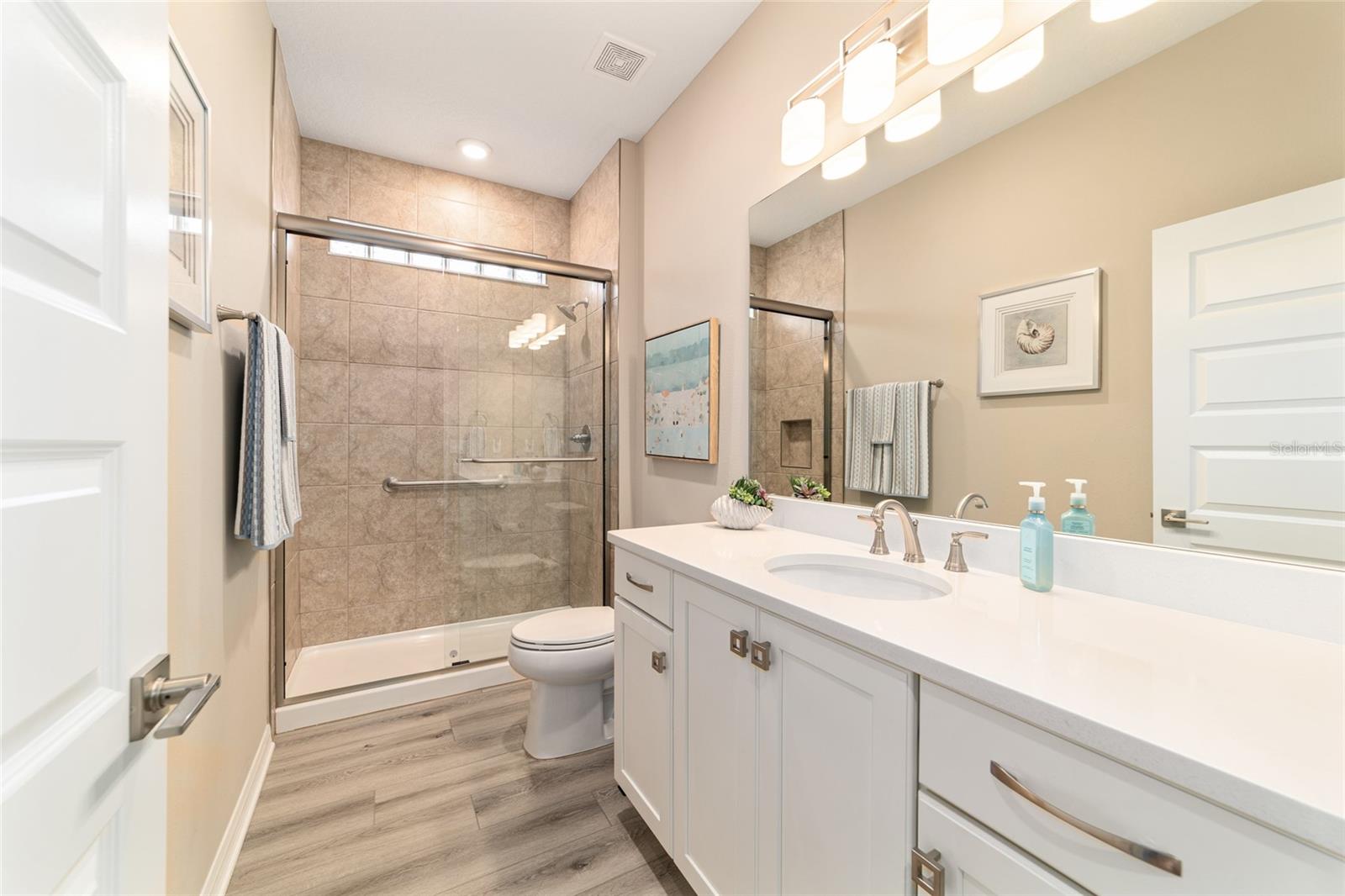 Procurando uma glicínia em Weybourne Landing com toneladas de atualizações? Não procure mais! Esta Wisteria construída em 2023 é um verdadeiro empecilho, oferecendo 3 quartos, 2 banheiros e uma garagem estendida de 4' para 2 carros situada em um lote premium. Entre em uma cozinha gourmet que qualquer chef vai adorar, com uma ilha espaçosa, iluminação sob o armário, balcões e backsplash de quartzo, despensa e eletrodomésticos de aço inoxidável, incluindo forno/micro-ondas embutido e fogão a gás. Os armários brancos escalonados têm um lindo acabamento com sancas, gavetas em formato de cauda de andorinha e ferragens com fechamento suave. A suíte principal inclui dois closets com prateleiras personalizadas e um elegante banheiro privativo com pias duplas e um amplo box amplo com azulejos atualizados. Em toda a casa, desfrute de luxuosos pisos de pranchas de vinil, persianas, tetos de bandeja, sancas, iluminação embutida extra, ventiladores e acessórios de design e entrada de automóveis, garagem e varanda com epóxi de diamante. A vida ao ar livre é um destaque com uma varanda voltada para o leste e um pátio personalizado que oferece espaço profundo entre os vizinhos traseiros e uma vista distante ao sul do campo de golfe Candler. A atratividade aprimorada do meio-fio vem de canteiros elevados e uma elevação frontal atualizada. Esta casa é verdadeiramente extraordinária. Weybourne Landing oferece propriedade simples, taxas HOA baixas e comodidades privadas, incluindo piscina, pickleball, minigolfe, academia, clube e coleta de lixo na calçada. On Top of the World é a principal comunidade de resorts de golfe para adultos ativos com mais de 55 anos de Ocala, oferecendo acesso em carrinhos de golfe a compras, restaurantes, entretenimento, serviços de saúde e muito mais.