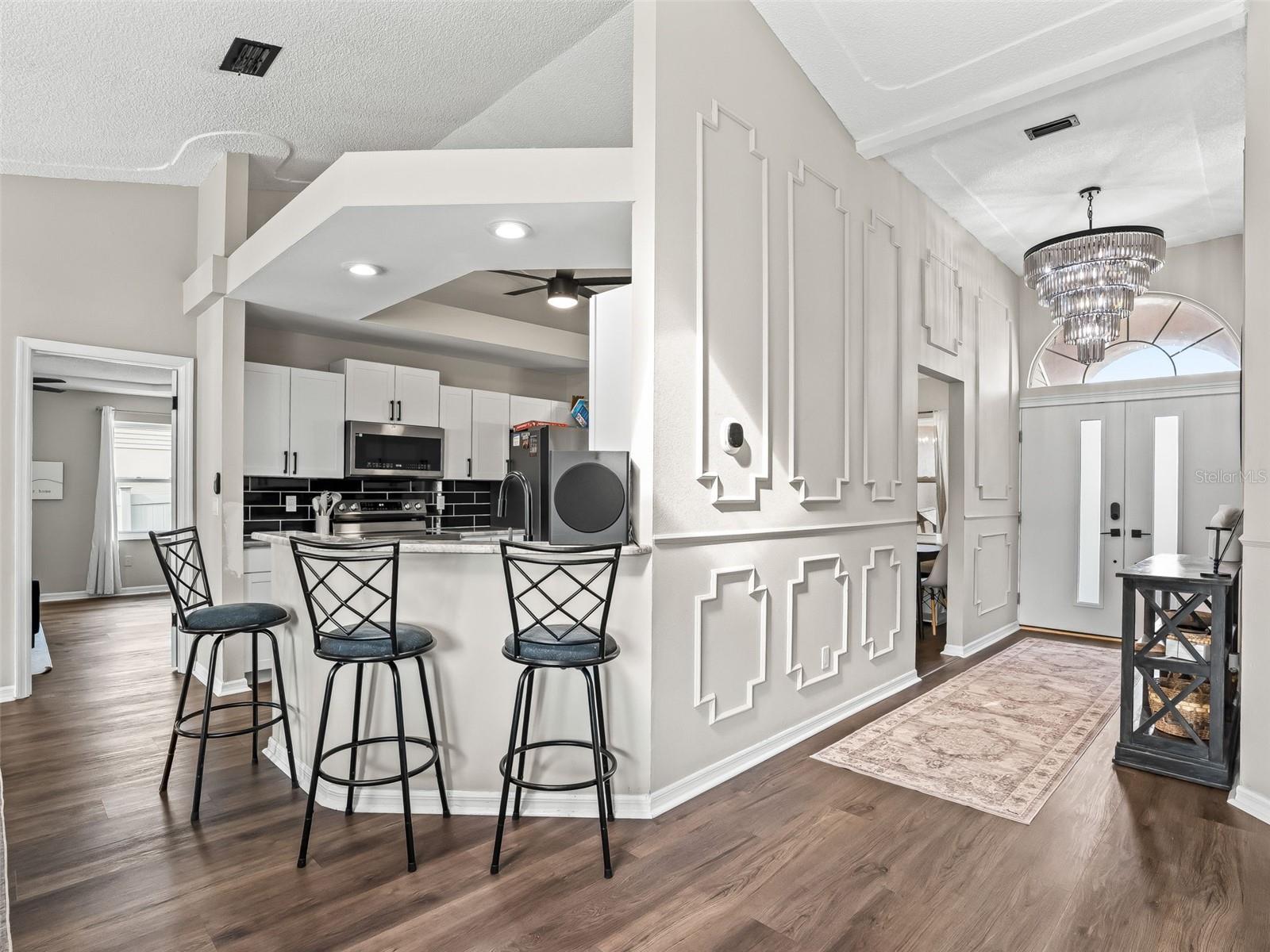 Casa espaçosa e lindamente atualizada em Marion Oaks com layout de quarto dividido oferecendo 3 quartos completos, 2 banheiros completos, um grande escritório/sala flexível e um quarto na Flórida! A entrada circular lhe dá as boas-vindas e leva à garagem anexa para dois carros e à varanda coberta. Através da entrada de porta dupla, o hall de entrada apresenta tetos abobadados que se estendem para a área de estar com piso LVP (sem carpete ou piso incompatível!), acabamentos decorativos nas paredes e parede com detalhes em pedra do chão ao teto com lareira elétrica. A cozinha aberta possui armários leves novos, bancadas em granito, backsplash de azulejos, cafeteria, armário e eletrodomésticos de aço inoxidável, incluindo geladeira com porta francesa. A suíte principal oferece uma parede de destaque com arandelas e banheiro privativo que lembra um spa com lindos azulejos novos, enorme box amplo/sala úmida com banheira de jardim, pia dupla e closet com prateleiras de dois níveis. No lado oposto da casa há dois quartos espaçosos com banheiro compartilhado com pia dupla e combinação de chuveiro/banheira com porta de vidro. Há também um grande escritório frontal/sala flexível com porta de correr e janela saliente - grande o suficiente para ser um espaço de trabalho e um 4º quarto (sem armário). Na parte de trás da casa você apreciará a grande sala da Flórida com muitas janelas grandes e uma porta de vidro deslizante que leva ao pátio e ao quintal cercado de privacidade de vinil. Recursos e atualizações adicionais: lavanderia interna espaçosa com armários de armazenamento e balcão dobrável, clarabóia na área de estar, novas janelas de vidro duplo e porta de vidro deslizante, novo HVAC 2023, novo aquecedor de água quente 2022, novo telhado 2013 e todas as atualizações cosméticas internas nos últimos anos. Aproveite o tour interativo em 3D anexado e agende uma exibição privada antes que seja tarde demais!