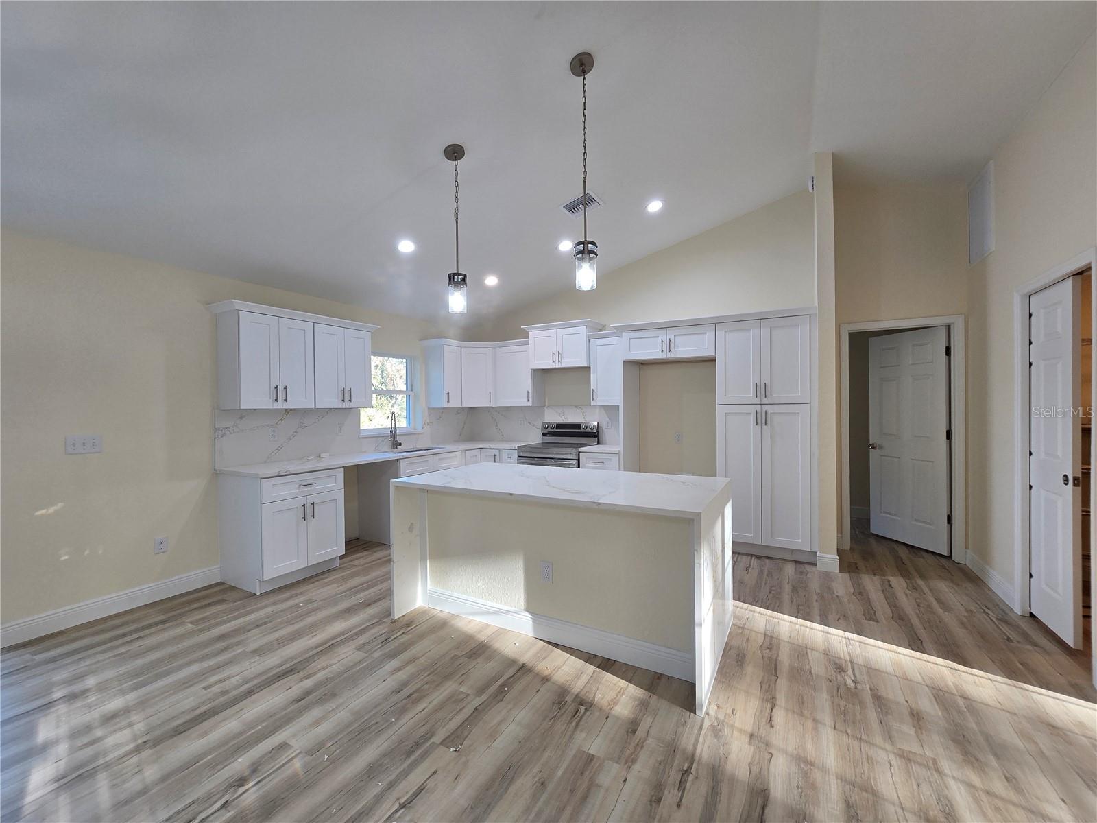 Venha ver este maravilhoso estilo, 3 quartos, 2 banheiros, garagem para 2 carros em um LOTE DE CANTO GRANDE 0,42 AC na área muito popular de Silver Springs Shores. Esta casa possui uma planta dividida, tetos altos e balcões de PEDRA DE QUARTZO na COZINHA, BANHEIROS E JANELAS! Ao entrar lateralmente, você notará o design aberto com tetos altos e uma planta dividida. O quarto principal possui um armário grande e banheiro privativo com CHUVEIRO TOTALMENTE DE TELHA, ENTRADA EZ e armário de linho. A cozinha tem gavetas silenciosas e armários ATUALIZADOS com puxadores elegantes. Pia linda com uma bela vista aberta. O PACOTE DE APARELHO INTELIGENTE DELUXE INCLUI Geladeira, máquina de lavar louça, fogão e micro-ondas de aço inoxidável que acompanham a casa. Uma ilha de balcão de quartzo lindamente estampada vem com espaço para cadeiras. Nas proximidades, você tem acesso à lavanderia e à garagem através de uma prática porta de correr. Do outro lado da casa, os quartos secundários partilham a casa de banho e terão um bom espaço para um quarto completo, escritório ou sala de jogos. As escolhas são infinitas! Amplo espaço no armário também foi fornecido para todas as suas necessidades de armazenamento. O LOTE DE CANTO GRANDE DE 0,42 acres oferece muito espaço para todos os seus brinquedos! Você pode estacionar facilmente seu trailer e entrar imediatamente! NÃO ESTÁ EM UMA HOA, então você é livre para construir uma cerca, adicionar uma piscina, fazer o que quiser, como quiser! Em um poço e sistema séptico, SEM CONTAS DE UTILIDADE também é uma grande vantagem! Se você instalar energia reserva em preparação para qualquer possível interrupção, ainda poderá usar água e esgoto enquanto tiver energia elétrica! Perto o suficiente para lhe dar acesso a Belleview, Summerfield, The Villages, The Interstate e muito mais. A menos de 10 minutos do Wal-Mart, Publix, Aldi e Save a Lot, dos correios, 3 lojas de peças de automóveis e lavagens de carros, bem como muitos consultórios médicos e de alimentação nas proximidades para facilitar. Uma curta viagem de carro em qualquer direção levará à praça do centro de Ocala ou ao nosso famoso Lago Weir, onde você pode passear de barco, caiaque, jet ski ou desfrutar de uma refeição no lago com vista para o pôr do sol. USDA, comprador de casa pela primeira vez e veterano! Quase concluído, você pode entrar rapidamente!