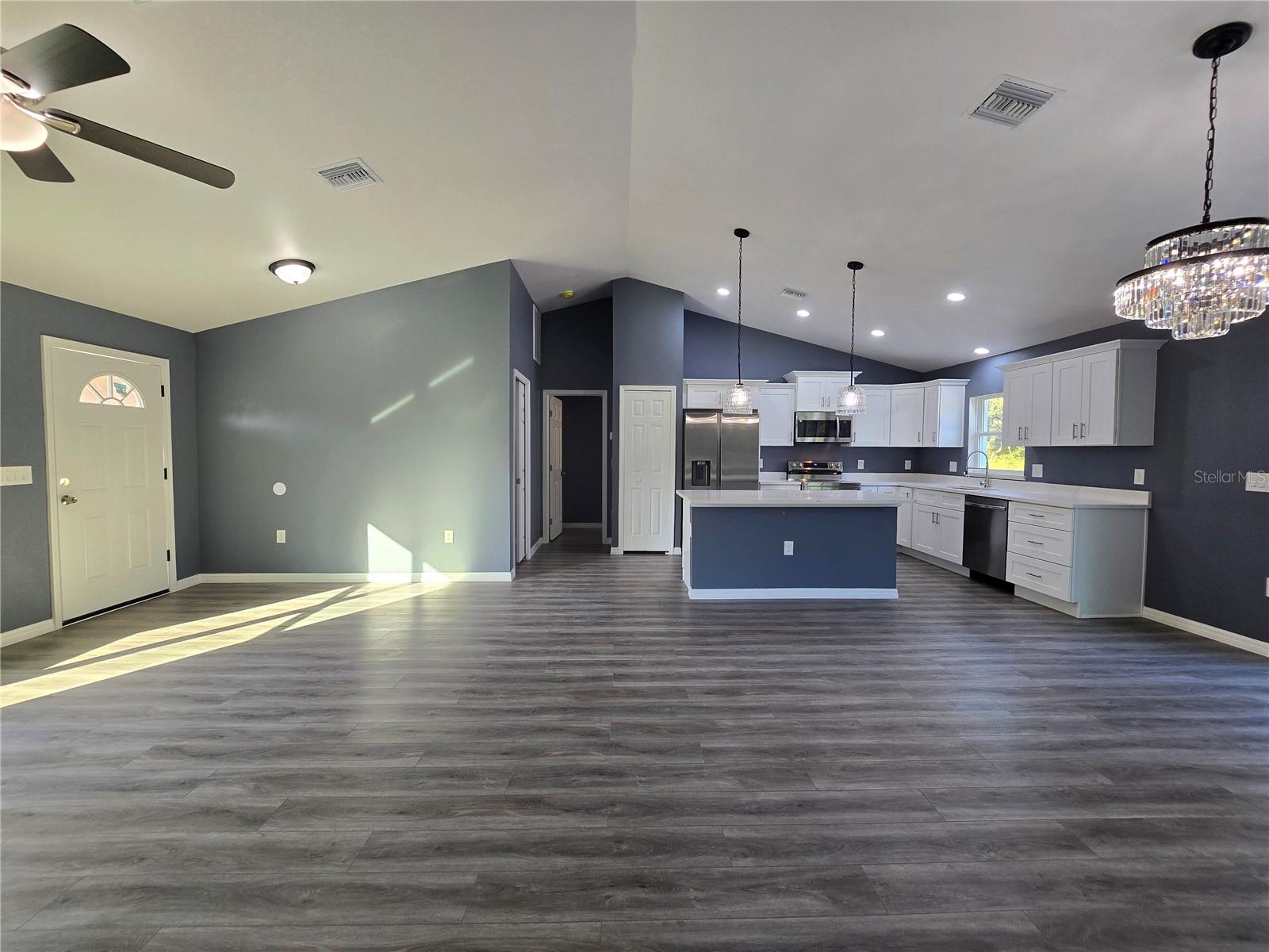 Venha ver este maravilhoso estilo, 3 quartos, 2 banheiros, garagem para 2 carros em um LOTE DE CANTO GRANDE 0,26 AC na área muito popular de Silver Springs Shores. Esta casa possui uma planta dividida, tetos altos e balcões de PEDRA DE QUARTZO na COZINHA, BANHEIROS E JANELAS! Ao entrar lateralmente, você notará o design aberto com tetos altos e uma planta dividida. O quarto principal possui um armário grande e banheiro privativo com CHUVEIRO TOTALMENTE DE TELHA, ENTRADA EZ e armário de linho. A cozinha tem gavetas silenciosas e armários ATUALIZADOS com puxadores elegantes. Pia linda com uma bela vista aberta. O PACOTE DE APARELHO INTELIGENTE DELUXE INCLUI Geladeira, máquina de lavar louça, fogão e micro-ondas de aço inoxidável que acompanham a casa. Uma ilha de balcão de quartzo lindamente estampada vem com espaço para cadeiras. Nas proximidades, você tem acesso à lavanderia e à garagem através de uma prática porta de bolso. Do outro lado da casa, os quartos secundários partilham a casa de banho e terão um bom espaço para um quarto completo, escritório ou sala de jogos. As escolhas são infinitas! Amplo espaço no armário também foi fornecido para todas as suas necessidades de armazenamento. O LOTE DE CANTO GRANDE DE 0,26 acres oferece muito espaço para todos os seus brinquedos! NÃO ESTÁ EM UMA HOA, então você é livre para construir uma cerca, adicionar uma piscina, fazer o que quiser, como quiser! Em um poço e sistema séptico, SEM CONTAS DE UTILIDADE também é uma grande vantagem! Se você instalar energia reserva em preparação para qualquer possível interrupção, ainda poderá usar água e esgoto enquanto tiver energia elétrica! Perto o suficiente para lhe dar acesso a Belleview, Summerfield, The Villages, The Interstate e muito mais. A menos de 10 minutos do Wal-Mart, Publix, Aldi e Save a Lot, dos correios, 3 lojas de peças de automóveis e lavagens de carros, bem como muitos consultórios médicos e de alimentação nas proximidades para facilitar. Uma curta viagem de carro em qualquer direção levará à praça do centro de Ocala ou ao nosso famoso Lago Weir, onde você pode passear de barco, caiaque, jet ski ou desfrutar de uma refeição no lago com vista para o pôr do sol. USDA, comprador de casa pela primeira vez e veterano! Quase concluído, você pode entrar RAPIDAMENTE!