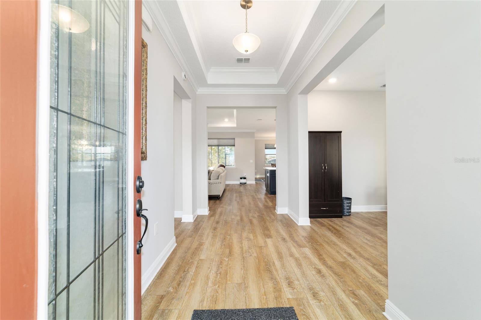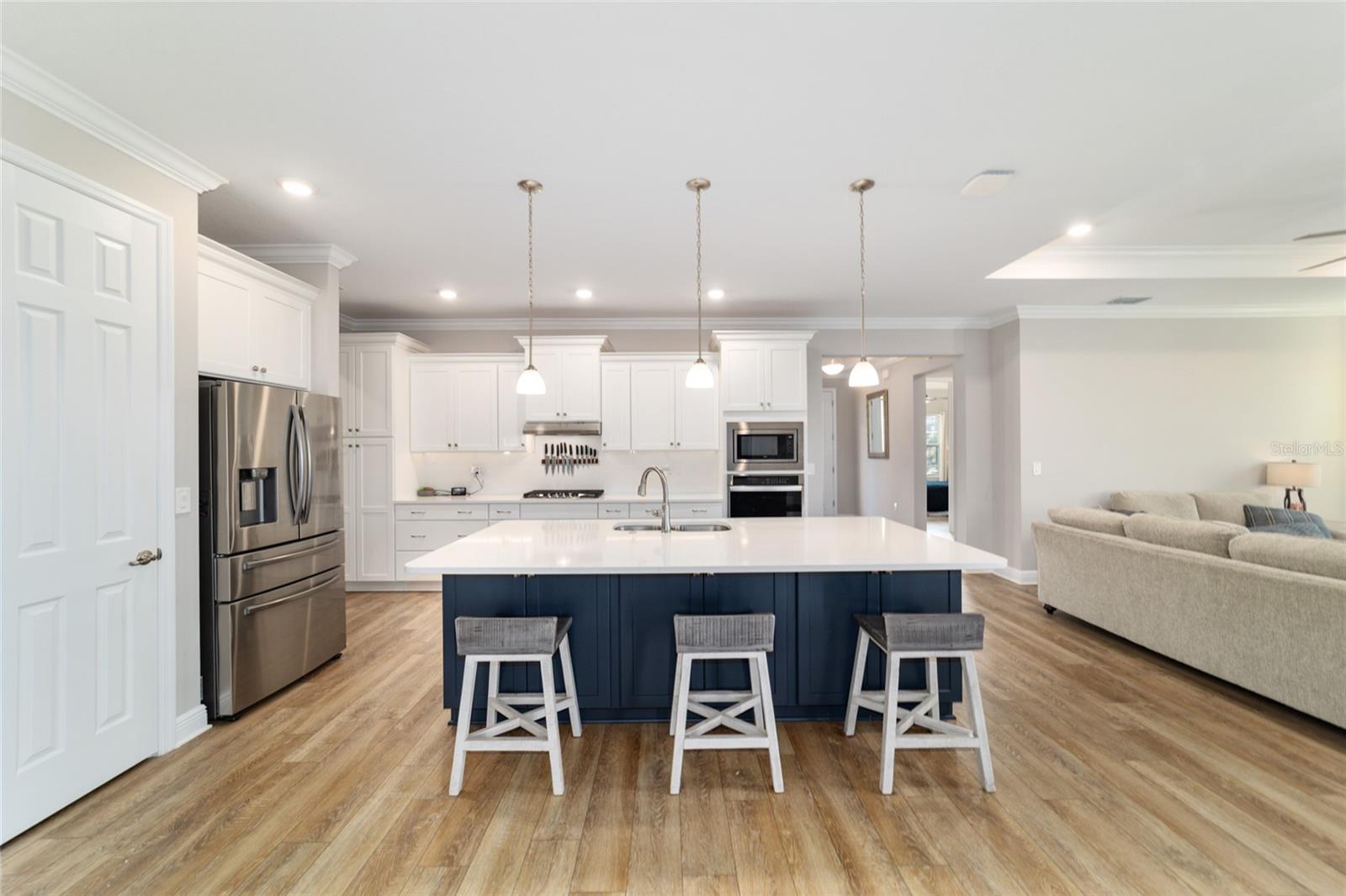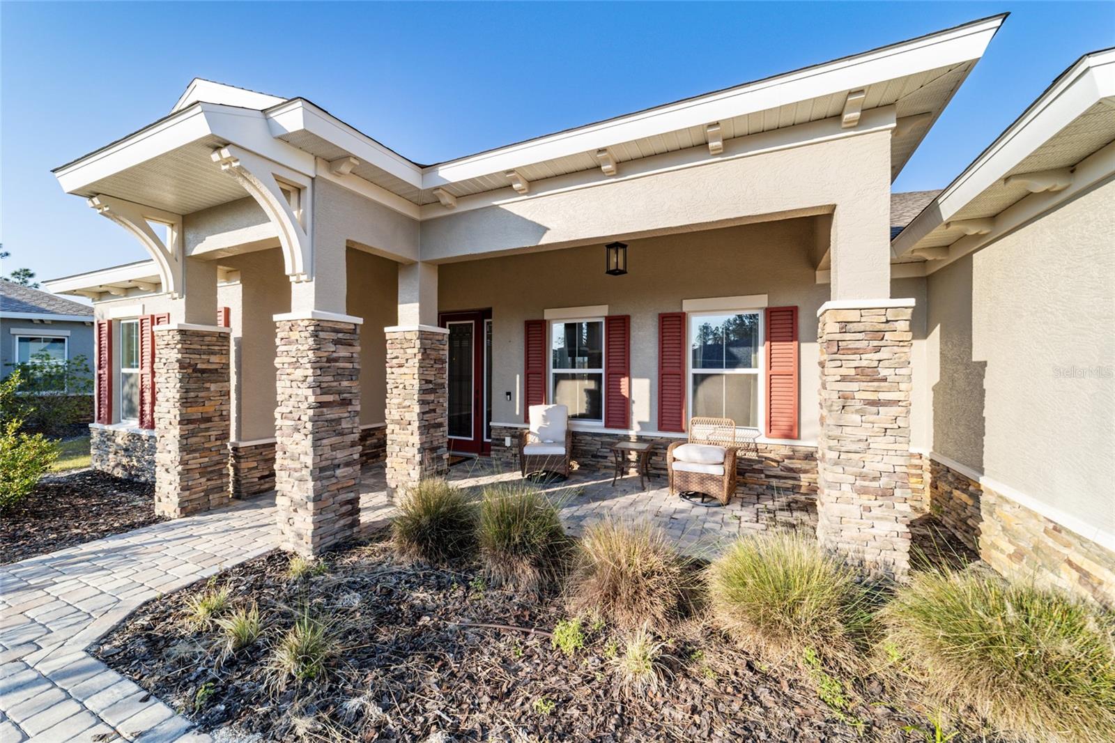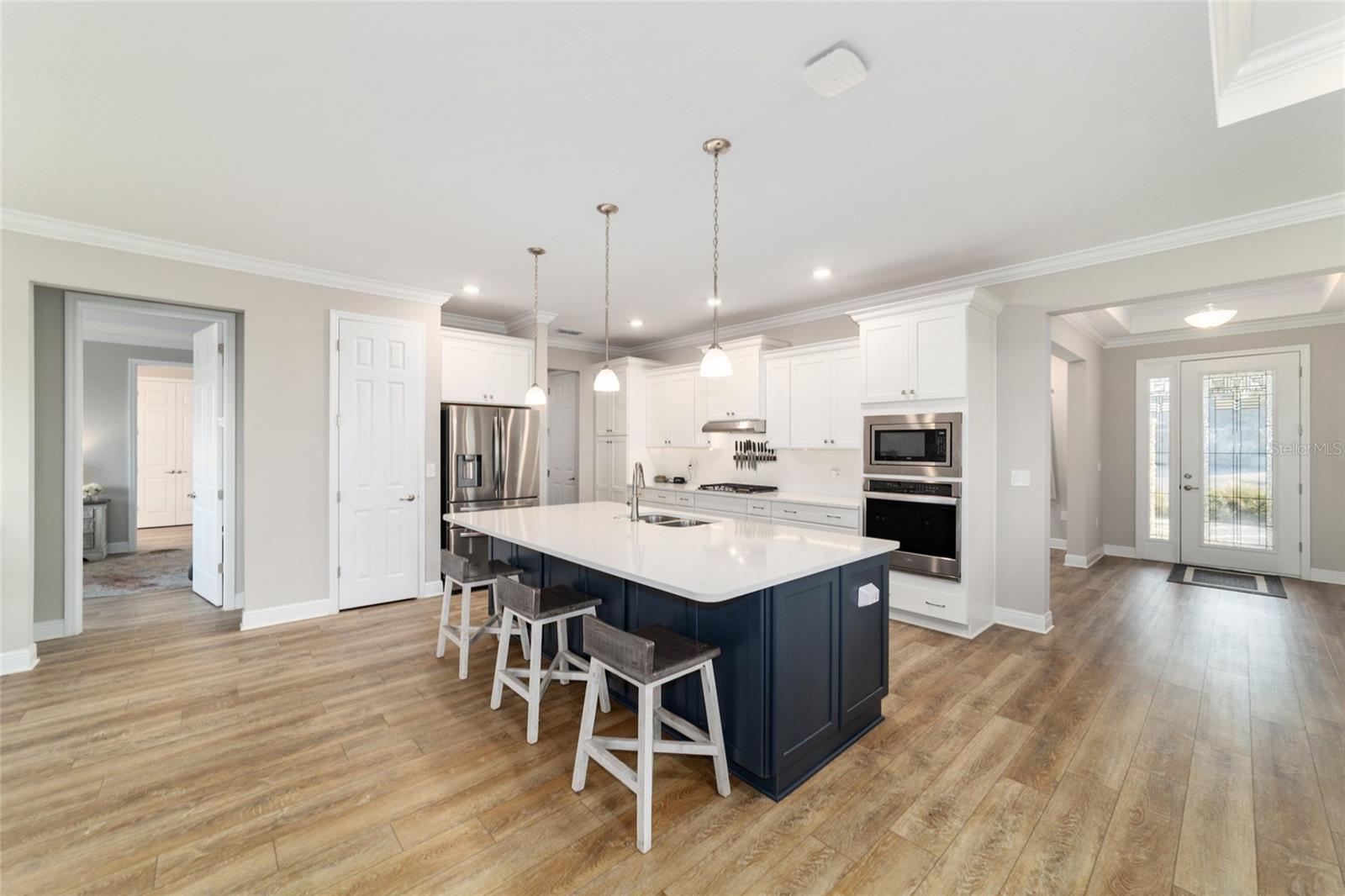 LOTE PRIVADO E CUL-DE-SAC ELEVADO | EXPOSIÇÃO PREMIUM DO NORTE Modelo Brighton 2023 melhor que o novo em Longleaf Ridge, idealmente situado em um terreno privado elevado e com vista alta no final de um beco sem saída tranquilo com exposição desejável à varanda ao norte. Esta casa inteligente cuidadosamente projetada oferece 2 quartos, 2 banheiros, uma sala flexível versátil e uma garagem grande para 3,5 carros. A excepcional atratividade do meio-fio começa com uma fachada com detalhes em pedra e uma calçada de tijolos. No interior, os recursos incluem sancas, tetos de bandeja, piso LVP e um layout de conceito aberto brilhante projetado para conforto diário e entretenimento. A cozinha gourmet é o sonho de qualquer padeiro, apresentando uma grande ilha central, bancadas de quartzo e backsplash, armários brancos escalonados com sancas, gavetas extraíveis, gavetas para panelas, despensa, iluminação sob o armário e eletrodomésticos premium de aço inoxidável, incluindo fogão a gás, forno embutido e micro-ondas. A cozinha flui perfeitamente para a espaçosa sala e área de jantar, todas com vista para o quintal privado. A luxuosa suíte principal possui um amplo closet personalizado e banheiro inspirado em spa com box amplo de azulejos do chão ao teto, bancadas de quartzo e pias duplas. A conveniente entrada do proprietário fornece acesso direto da garagem através da lavanderia atualizada; completo com armários extras em ambos os lados e pia; no armário principal, banheiro e quarto. O segundo banheiro oferece uma combinação de banheira/chuveiro para os hóspedes. A vida ao ar livre realmente brilha com uma gaiola de grandes dimensões (aproximadamente 450 pés quadrados), um pátio adicional (aproximadamente 360 pés quadrados) e um quintal totalmente cercado - perfeito para relaxar, entreter ou desfrutar de privacidade tranquila durante todo o ano.