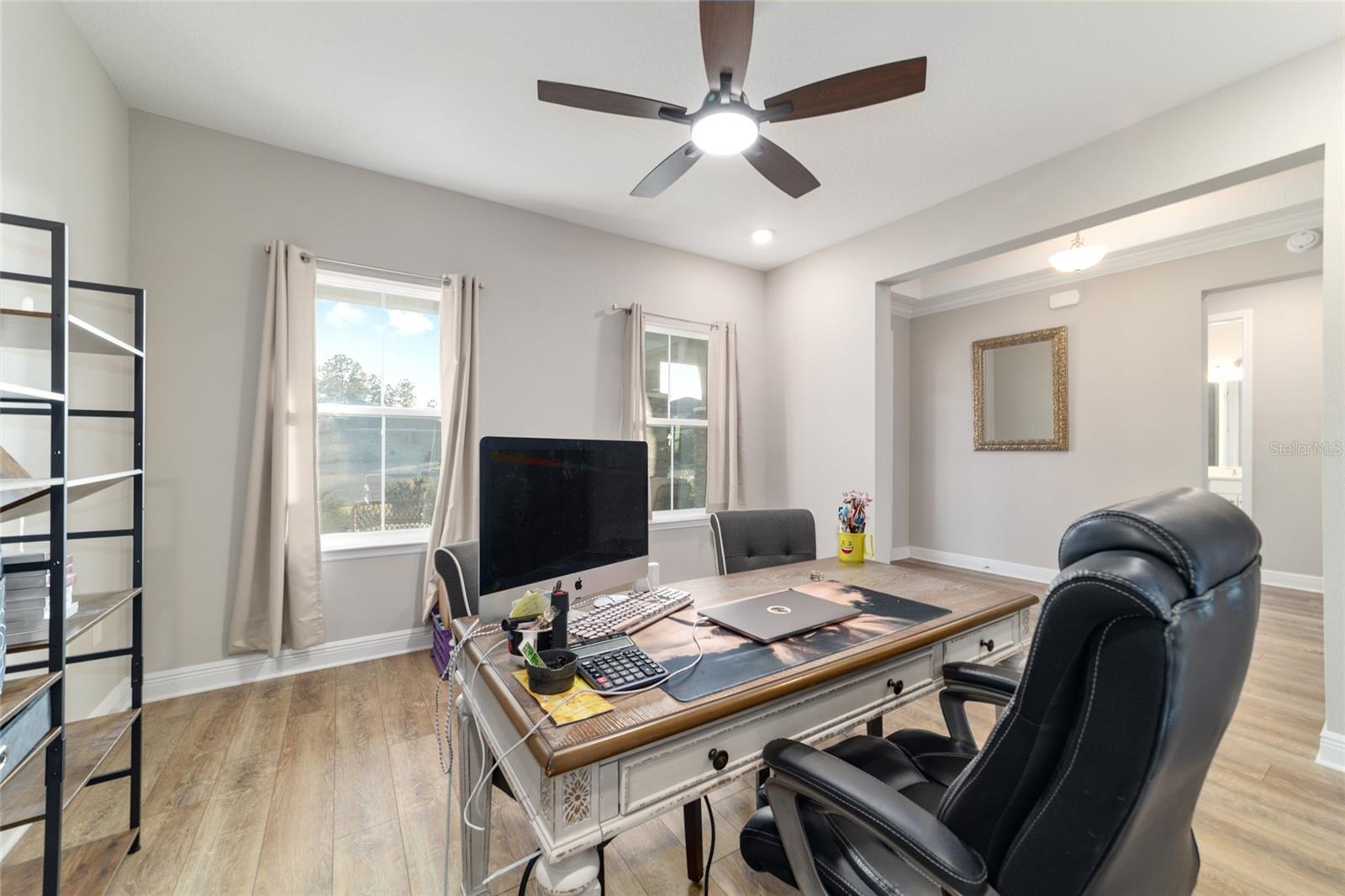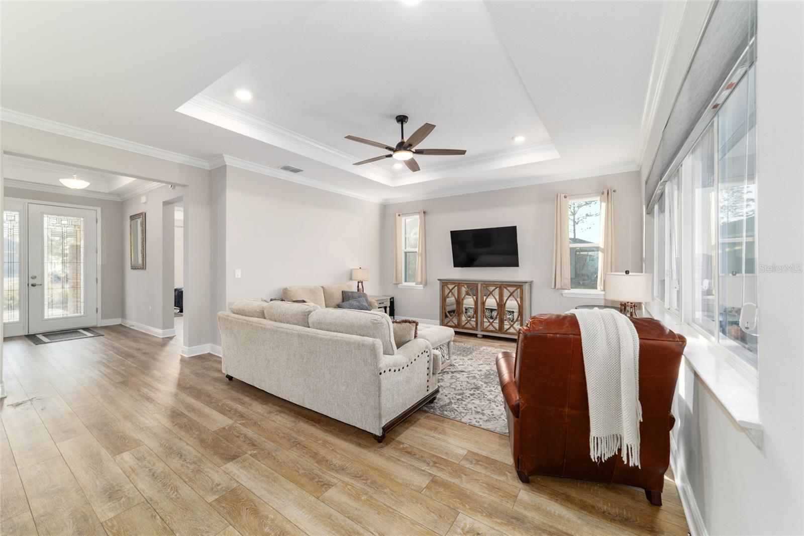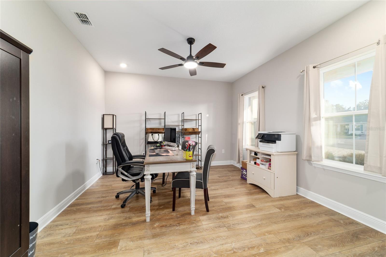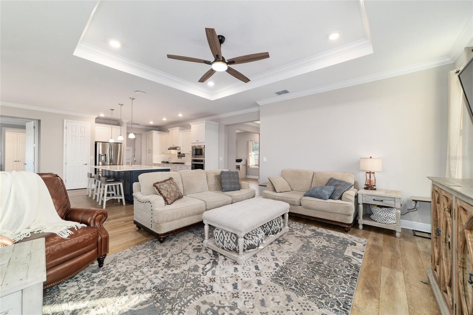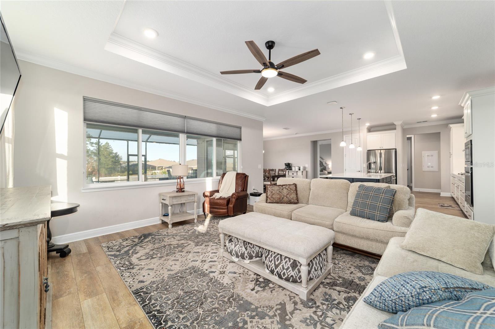 LOTE PRIVADO E CUL-DE-SAC ELEVADO | EXPOSIÇÃO PREMIUM DO NORTE Modelo Brighton 2023 melhor que o novo em Longleaf Ridge, idealmente situado em um terreno privado elevado e com vista alta no final de um beco sem saída tranquilo com exposição desejável à varanda ao norte. Esta casa inteligente cuidadosamente projetada oferece 2 quartos, 2 banheiros, uma sala flexível versátil e uma garagem grande para 3,5 carros. A excepcional atratividade do meio-fio começa com uma fachada com detalhes em pedra e uma calçada de tijolos. No interior, os recursos incluem sancas, tetos de bandeja, piso LVP e um layout de conceito aberto brilhante projetado para conforto diário e entretenimento. A cozinha gourmet é o sonho de qualquer padeiro, apresentando uma grande ilha central, bancadas de quartzo e backsplash, armários brancos escalonados com sancas, gavetas extraíveis, gavetas para panelas, despensa, iluminação sob o armário e eletrodomésticos premium de aço inoxidável, incluindo fogão a gás, forno embutido e micro-ondas. A cozinha flui perfeitamente para a espaçosa sala e área de jantar, todas com vista para o quintal privado. A luxuosa suíte principal possui um amplo closet personalizado e banheiro inspirado em spa com box amplo de azulejos do chão ao teto, bancadas de quartzo e pias duplas. A conveniente entrada do proprietário fornece acesso direto da garagem através da lavanderia atualizada; completo com armários extras em ambos os lados e pia; no armário principal, banheiro e quarto. O segundo banheiro oferece uma combinação de banheira/chuveiro para os hóspedes. A vida ao ar livre realmente brilha com uma gaiola de grandes dimensões (aproximadamente 450 pés quadrados), um pátio adicional (aproximadamente 360 pés quadrados) e um quintal totalmente cercado - perfeito para relaxar, entreter ou desfrutar de privacidade tranquila durante todo o ano.
