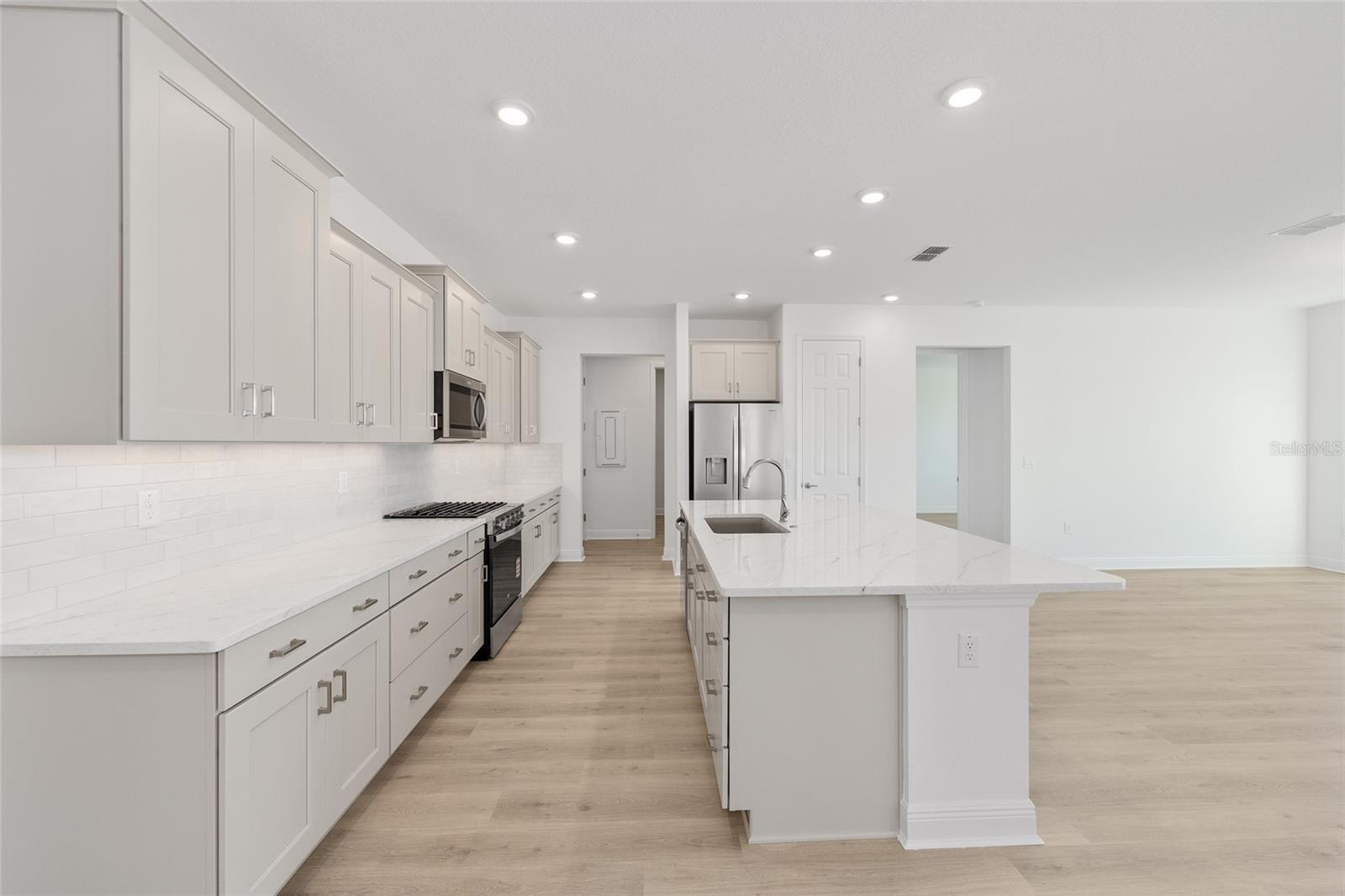 Bem-vindo ao modelo Beatrix lindamente elaborado, uma nova casa de construção projetada para uma vida tranquila na Flórida. Esta residência cuidadosamente planejada possui 2 quartos, 2 banheiros e garagem para 2 carros com espaço dedicado para carrinho de golfe, oferecendo conforto e funcionalidade. A área de estar aberta é aprimorada por luxuoso piso de vinil, iluminação embutida e um fluxo contínuo entre a sala de estar e a cozinha - perfeito para a vida cotidiana e para o entretenimento. A cozinha inspirada no chef apresenta uma ilha de quartzo enorme, armários elegantes, backsplash de azulejos de metrô e eletrodomésticos de aço inoxidável, todos com vista para a sala principal. Uma sala flexível versátil oferece infinitas possibilidades para um escritório doméstico, sala de hobby ou espaço para hóspedes, enquanto a lavanderia adiciona conveniência com amplo armazenamento e espaço de trabalho. A suíte principal oferece um retiro tranquilo com um layout espaçoso e banheiro privativo bem equipado. Localizada na desejável comunidade de Longleaf Ridge no On Top of the World, esta casa combina acabamentos modernos, design inteligente e artesanato de qualidade em um ambiente vibrante.