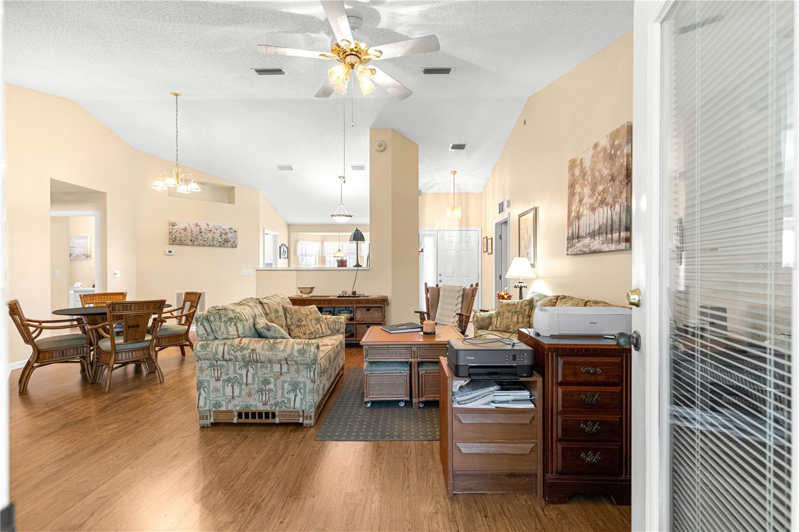 Belo modelo Royal 2/2/2 no procurado bairro tranquilo de Ocala Palms, uma comunidade com mais de 55 anos. A espaçosa cozinha permite uma pequena mesa e cadeiras com janela saliente. O quarto de hóspedes tem teto falso e carpete. O quarto principal oferece um amplo closet. A área de estar possui piso vinílico que confere aconchego à casa. A varanda é fechada para que você possa sentar e tomar seu café/camiseta matinal e observar os pássaros. O condomínio possui restaurante, piscina comunitária e campo de golfe, para citar algumas das comodidades. Novo AC será instalado antes de fechar. A campainha não transmite.