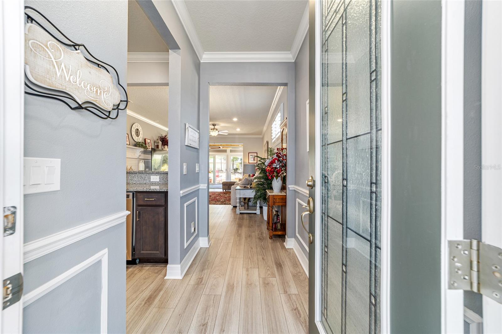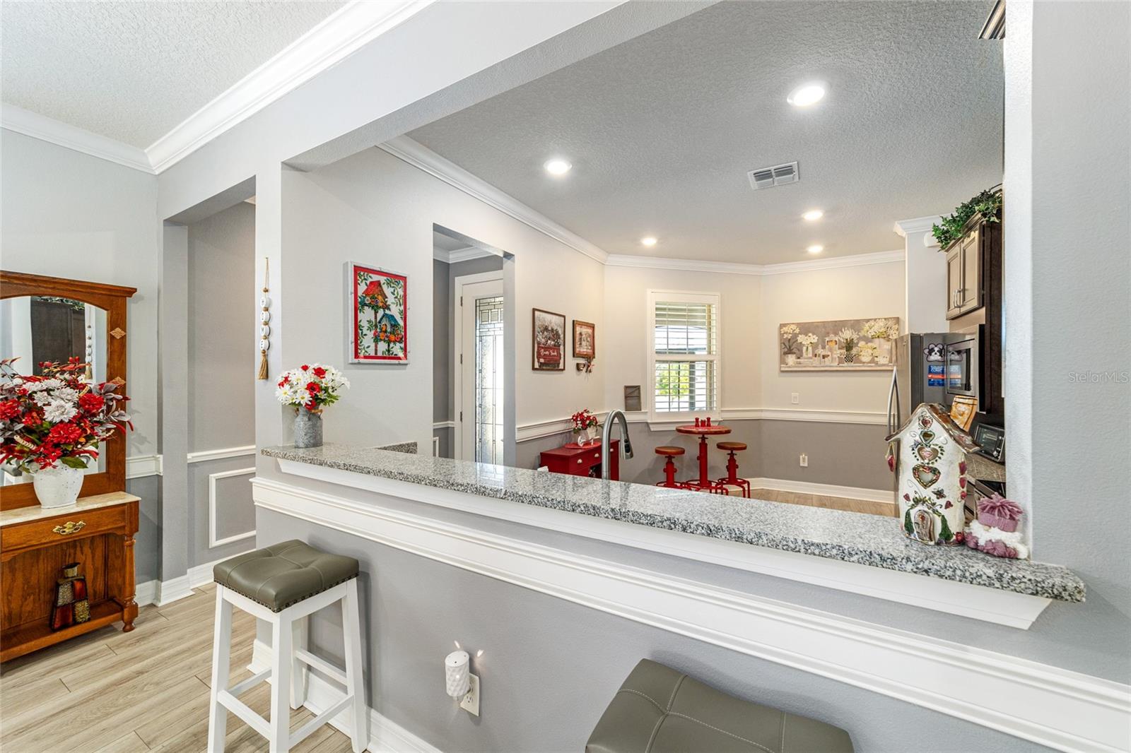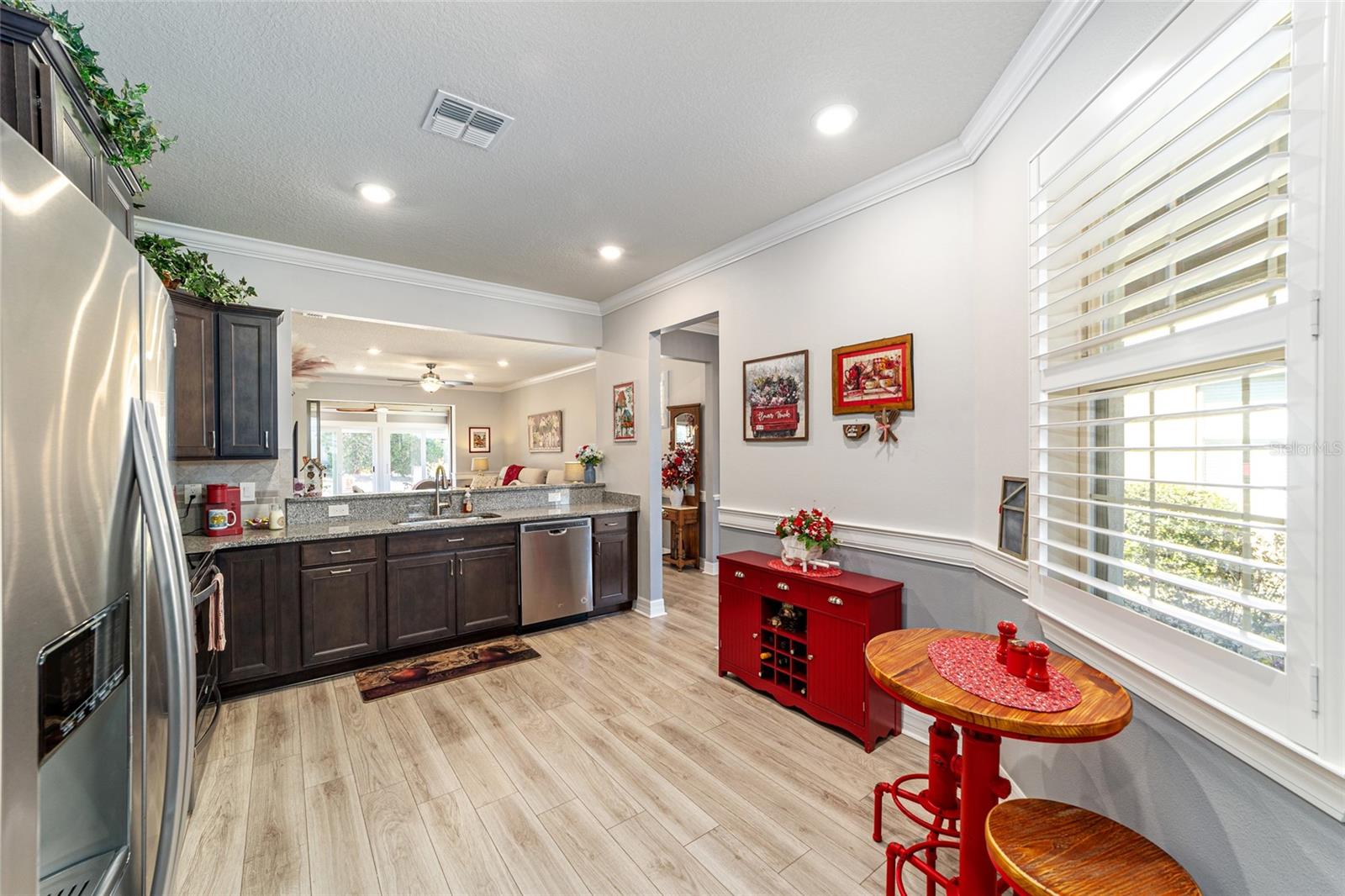 Pare de raspar os pára-brisas e comece a saborear passeios ao pôr do sol, coquetéis em clubes e invernos quentes da Flórida nesta bela comunidade de Del Webb Stone Creek. Como os móveis são negociáveis, esta casa pode estar pronta para morar, dando-lhe mais tempo para melhorar seu estilo de vida agora, fugir e aproveitar um pouco mais a vida. Defina seus horários de partida, programe suas partidas de pickleball e deixe a vida seguir o ritmo descontraído da vida ao ar livre no centro-norte da Flórida durante todo o ano. Este impressionante modelo Noir Coast 2/2 com garagem estendida foi cuidadosamente atualizado e repleto de toques personalizados. A partir do momento em que você chega, o paisagismo maduro, detalhes em pedra e uma varanda frontal criam uma sensação impressionante de chegada. Entre e você será recebido por detalhes atualizados, como uma parede personalizada com detalhes em shiplap, piso de pranchas de vinil luxuoso, detalhes de acabamento elegantes, rodapés atualizados, sancas e iluminação embutida adicional que elevam todo o espaço. A cozinha está lindamente decorada com bancadas de granito, backsplash de azulejos, armários Flagstone Grey com altura adicional, eletrodomésticos de aço inoxidável atualizados e uma grande pia de tigela única que combina estilo e função sem esforço. Ambos os banheiros possuem bancadas de granito, acabamentos em níquel escovado, armários de altura confortável, e a suíte principal tem chuveiro totalmente remodelado e pia dupla. O que realmente chama sua atenção ao entrar é a grande sala cheia de luz, onde amplas portas de vidro deslizantes atraem seus olhos para uma marquise lindamente fechada. Além disso, um charmoso pátio pavimentado com toldo elétrico Sunsetter oferece o refúgio perfeito à sombra para o café da manhã ou reuniões à tarde. Rodeado por uma paisagem madura, o quintal oferece um ambiente tranquilo e privado, ideal para relaxamento e entretenimento. Além da beleza da casa em si, encontra-se uma das comunidades em estilo resort mais procuradas de Ocala – onde os dias são repletos de risadas, dança, jogos amigáveis e conexões significativas. Atividades infinitas, comodidades vibrantes e uma atmosfera calorosa e acolhedora fazem com que cada dia pareça um refúgio. Esta não é simplesmente uma casa que você está escolhendo - é um estilo de vida que parece uma vida de férias, onde você pode desacelerar, explorar mais e aproveitar o sol contínuo e o pôr do sol de tirar o fôlego. Esta não é apenas uma comunidade, é o seu próximo capítulo – lindamente reimaginado.