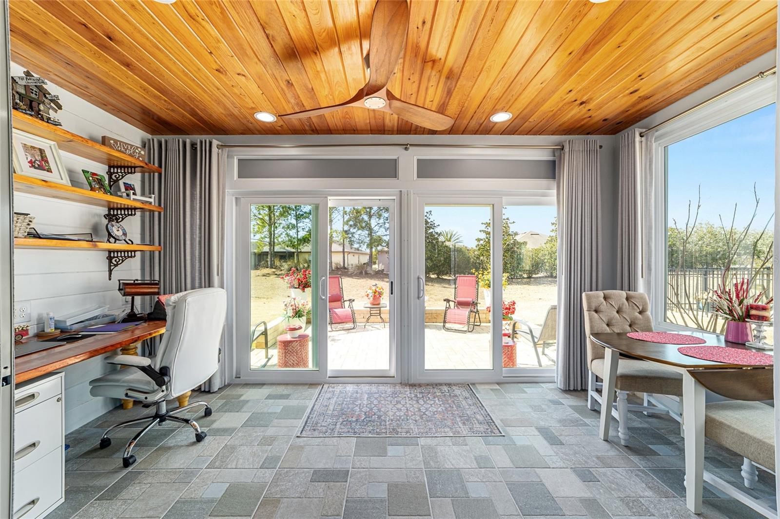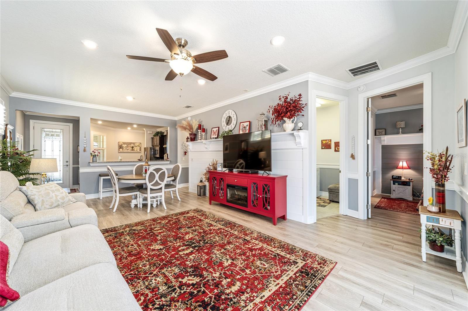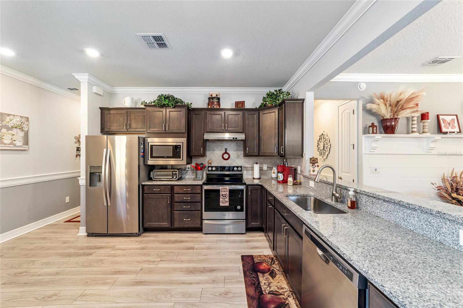 Pare de raspar os pára-brisas e comece a saborear passeios ao pôr do sol, coquetéis em clubes e invernos quentes da Flórida nesta bela comunidade de Del Webb Stone Creek. Como os móveis são negociáveis, esta casa pode estar pronta para morar, dando-lhe mais tempo para melhorar seu estilo de vida agora, fugir e aproveitar um pouco mais a vida. Defina seus horários de partida, programe suas partidas de pickleball e deixe a vida seguir o ritmo descontraído da vida ao ar livre no centro-norte da Flórida durante todo o ano. Este impressionante modelo Noir Coast 2/2 com garagem estendida foi cuidadosamente atualizado e repleto de toques personalizados. A partir do momento em que você chega, o paisagismo maduro, detalhes em pedra e uma varanda frontal criam uma sensação impressionante de chegada. Entre e você será recebido por detalhes atualizados, como uma parede personalizada com detalhes em shiplap, piso de pranchas de vinil luxuoso, detalhes de acabamento elegantes, rodapés atualizados, sancas e iluminação embutida adicional que elevam todo o espaço. A cozinha está lindamente decorada com bancadas de granito, backsplash de azulejos, armários Flagstone Grey com altura adicional, eletrodomésticos de aço inoxidável atualizados e uma grande pia de tigela única que combina estilo e função sem esforço. Ambos os banheiros possuem bancadas de granito, acabamentos em níquel escovado, armários de altura confortável, e a suíte principal tem chuveiro totalmente remodelado e pia dupla. O que realmente chama sua atenção ao entrar é a grande sala cheia de luz, onde amplas portas de vidro deslizantes atraem seus olhos para uma marquise lindamente fechada. Além disso, um charmoso pátio pavimentado com toldo elétrico Sunsetter oferece o refúgio perfeito à sombra para o café da manhã ou reuniões à tarde. Rodeado por uma paisagem madura, o quintal oferece um ambiente tranquilo e privado, ideal para relaxamento e entretenimento. Além da beleza da casa em si, encontra-se uma das comunidades em estilo resort mais procuradas de Ocala – onde os dias são repletos de risadas, dança, jogos amigáveis e conexões significativas. Atividades infinitas, comodidades vibrantes e uma atmosfera calorosa e acolhedora fazem com que cada dia pareça um refúgio. Esta não é simplesmente uma casa que você está escolhendo - é um estilo de vida que parece uma vida de férias, onde você pode desacelerar, explorar mais e aproveitar o sol contínuo e o pôr do sol de tirar o fôlego. Esta não é apenas uma comunidade, é o seu próximo capítulo – lindamente reimaginado.
