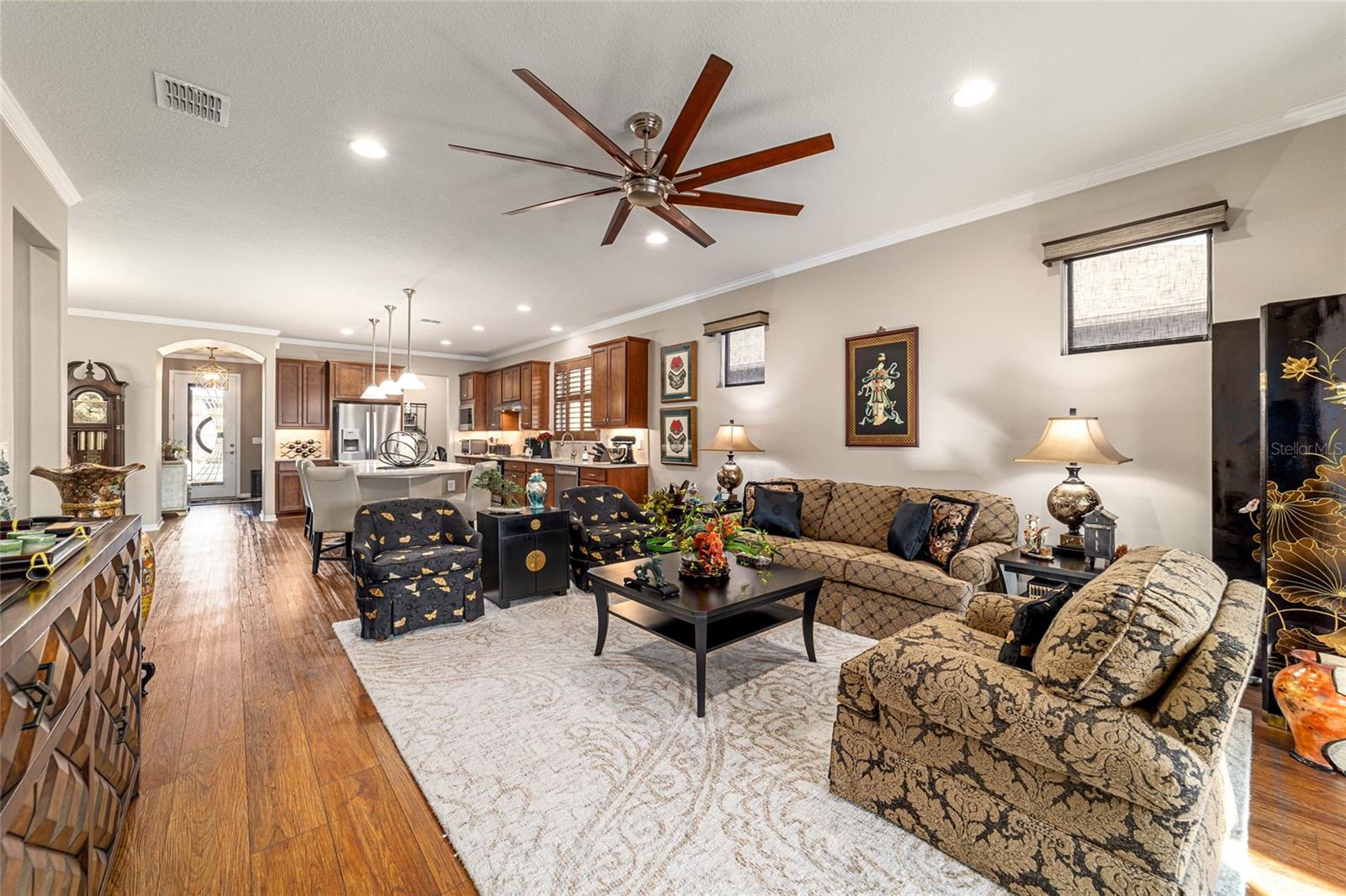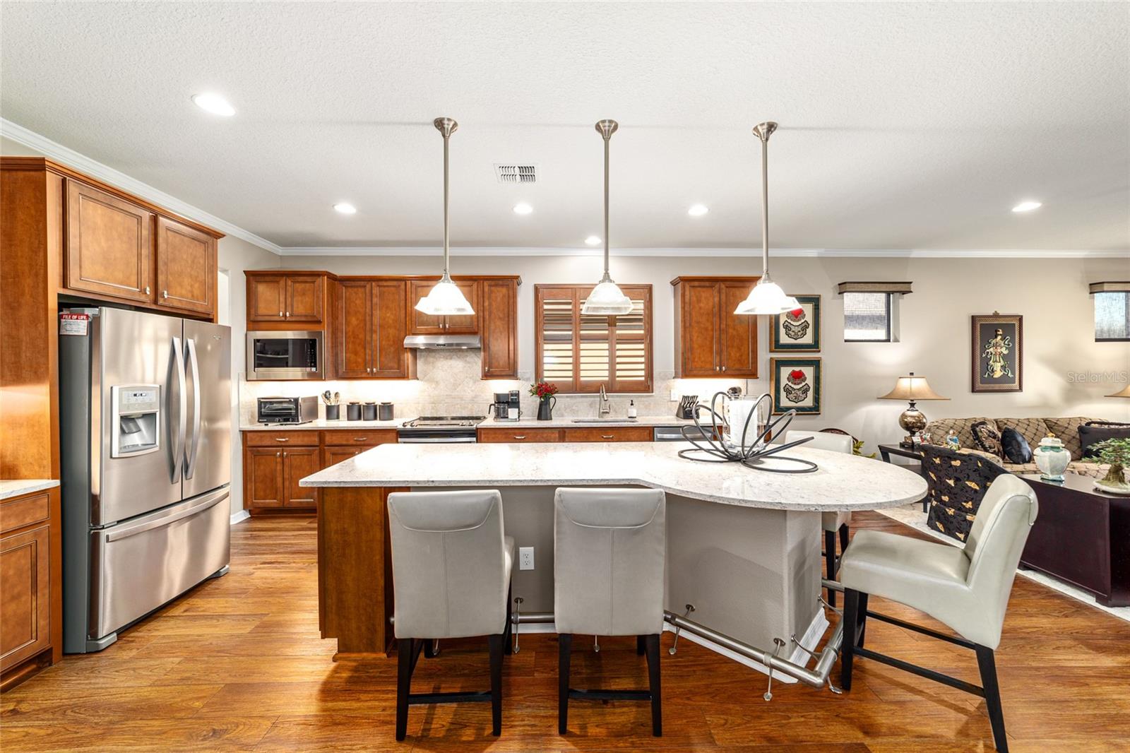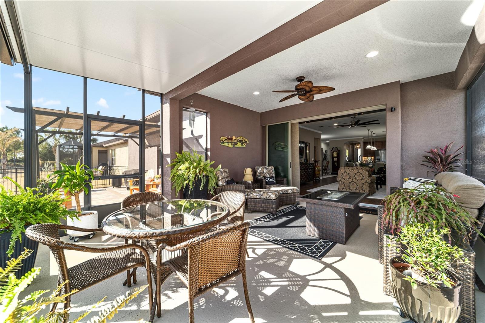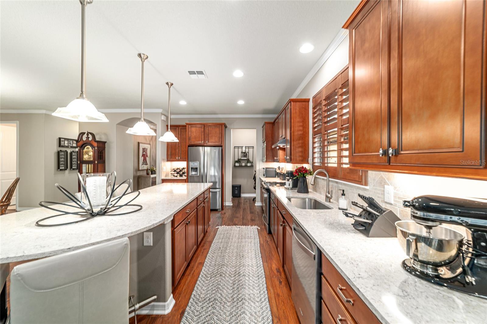 Desfrute de uma vida sem esforço neste lindo modelo Martin Ray de dois quartos e dois banheiros com um versátil quarto flexível e garagem estendida, localizado no condomínio fechado 55+ Stone Creek Golf Course, conhecido por suas comodidades excepcionais em estilo resort. Esta casa oferece um apelo maravilhoso do meio-fio, completo com paisagismo maduro, iluminação de ônibus personalizada e uma porta frontal de vidro embutida de Perry com design personalizado e garantia vitalícia, dando o tom para os detalhes atenciosos encontrados dentro dela. A planta baixa versátil combina conforto e elementos de design, incluindo piso de pranchas de vinil de luxo atualizado, iluminação embutida de LED embutida, portas internas de 2,5 metros e sancas que adicionam um toque de requinte. A sala flexível, emoldurada por portas francesas, oferece um espaço extra desejável, ideal para um escritório doméstico, biblioteca ou espaço de hobby. A espaçosa sala de reuniões possui um controle deslizante de bolso triplo que se abre perfeitamente para a varanda coberta e para a sala estendida da Flórida, criando uma experiência convidativa de vida interna e externa. Um pouco além, uma área de estar forrada de pavimentação com uma pérgula à sombra do sol oferece um local tranquilo para reuniões ao ar livre. A cozinha bem equipada oferece elegantes bancadas de quartzo, eletrodomésticos de aço inoxidável, uma ilha grande com iluminação pendente especial e trilho de bar, um impressionante backsplash de azulejos e armários atualizados com sancas, iluminação sob o armário e extensões nos armários inferiores. Uma grande despensa com prateleiras atualizadas e uma despensa com mesa embutida acrescentam ainda mais comodidade e espaço de armazenamento. A suíte do proprietário possui um closet personalizado e um banheiro privativo com pia dupla com tampo de quartzo, um grande box amplo em estilo romano com banco de assento e revestimento decorativo de azulejos de vidro e uma janela de popa que preenche o espaço com luz natural. Atualizações adicionais cuidadosas incluem tratamentos de janela de designer que adicionam um acabamento personalizado a cada quarto, iluminação de tubo solar, um mudroom com embutidos proporcionando organização conveniente conforme você entra e sai, e azulejos atualizados no banheiro secundário. As melhorias práticas continuam com um amaciante de água para toda a casa, uma extensão de garagem de mais de um metro para um carrinho de golfe ou espaço de trabalho e racks de armazenamento suspensos para armazenamento adicional. A porta deslizante de tela de privacidade da garagem permite a circulação de ar fresco, mantendo o conforto, e todas as janelas da casa, exceto as deslizantes, foram pintadas profissionalmente para ajudar a proteger os móveis e manter uma temperatura interna agradável. Experimente o melhor da vida em estilo resort e descubra um condomínio projetado para conforto, conexão e dias despreocupados, completo com uma entrada fechada com equipe 24 horas por dia, 7 dias por semana, que oferece segurança e tranquilidade. Os residentes desfrutam de comodidades de inspiração luxuosa, incluindo piscinas aquecidas, uma academia de ginástica de última geração, um spa e banheiras de hidromassagem e saunas relaxantes que tornam o relaxamento parte da vida cotidiana. Para aqueles que gostam de se manter ativos, o condomínio oferece pickleball, bocha, tênis e até mesmo um campo de softball, enquanto uma equipe dedicada ao estilo de vida planeja entretenimento, atividades e eventos especiais que facilitam o contato com os vizinhos. Logo além dos portões, você encontrará um campo de golfe bem cuidado, uma loja especializada e um restaurante no local, perfeito para socializar, relaxar e aproveitar o estilo de vida da Flórida.