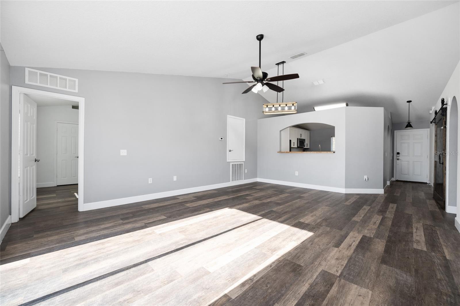 Localizada na área muito desejável do sudoeste, esta casa atualizada de 3 quartos e 2 banheiros oferece servidão mantida pelo condado atrás da casa para maior privacidade. Iluminação atualizada e porta deslizante do celeiro. Linda cozinha moderna com armários personalizados, balcões de açougue, pia de aço inoxidável com torneira para encher panelas, eletrodomésticos de aço inoxidável e ilha de preparação de granito. O luxuoso piso de pranchas de vinil percorre toda a casa. Suíte principal ampla com closet, banheiro privativo com chuveiro, pia de granito. O pátio aberto nos fundos oferece muito espaço para entreter, grelhar ou simplesmente sentar e desfrutar da privacidade do seu quintal.