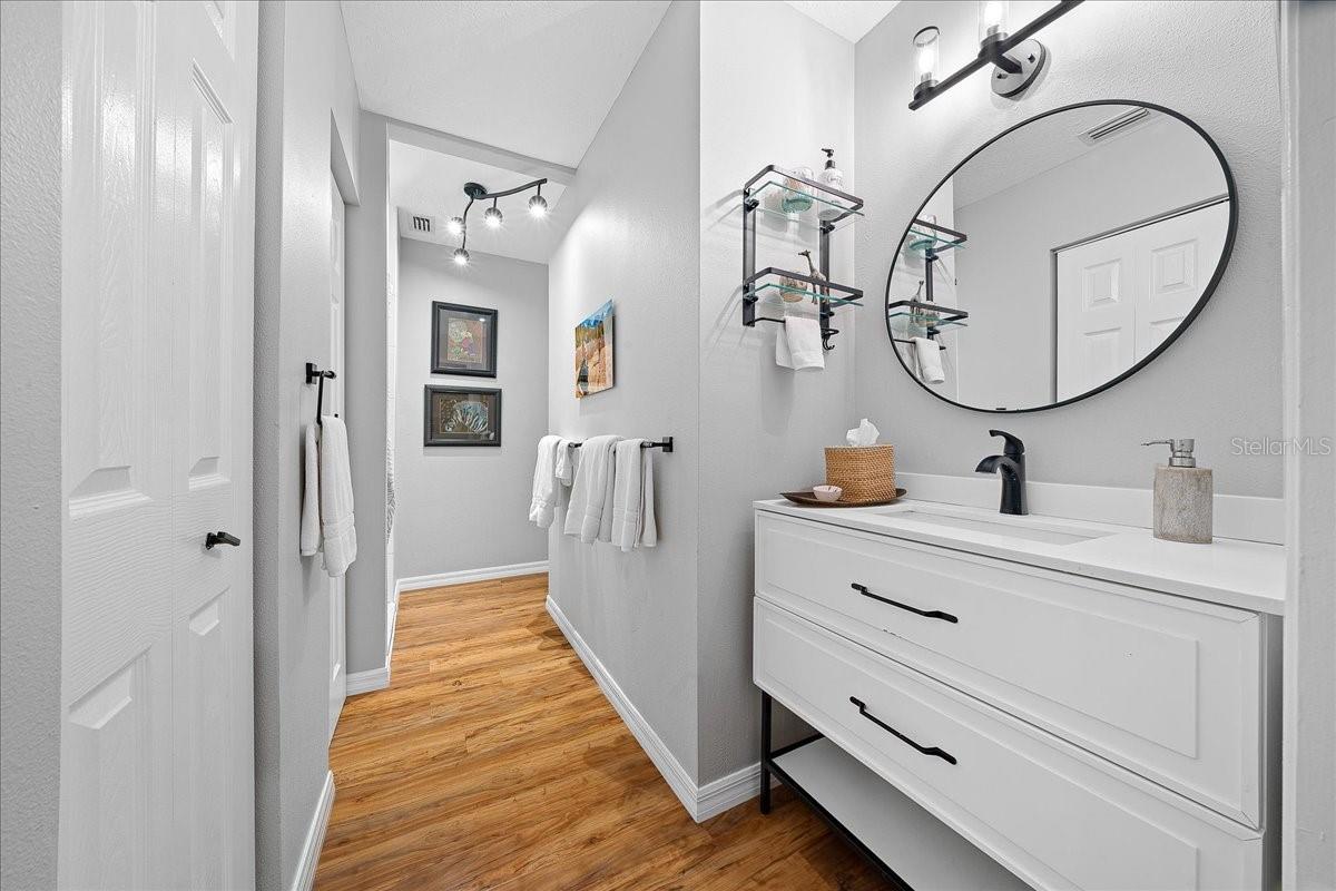 Bem-vindo ao 1228 NE 17th Ter – uma beleza sólida de meados do século 1960, cuidadosamente renovada, preservando seu charme original. Esta casa pronta para morar apresenta seu piso original de madeira maciça, agora perfeitamente reformado, complementado por pintura interna fresca e detalhes em madeira personalizados por toda parte. As novas luminárias e ventiladores de teto adicionam um toque moderno, mantendo o caráter atemporal da casa. A cozinha e os banheiros totalmente atualizados apresentam elegantes bancadas de quartzo, backsplashes de designer e acabamentos elegantes. A lavanderia também foi atualizada para uma aparência coesa. As principais melhorias incluem encanamento atualizado, um novo telhado (2018) e um novo sistema de ar condicionado (2021), oferecendo tranquilidade nos próximos anos. Originalmente projetado como uma casa de quatro quartos, o quarto quarto foi aberto para criar um espaço flexível de conceito aberto - ideal como sala de jantar, escritório doméstico ou escritório para se adequar ao seu estilo de vida. A vida ao ar livre brilha com uma varanda frontal lindamente renovada e uma nova porta externa, além de uma pérgula recém-adicionada no quintal - perfeita para entretenimento ou relaxamento. Melhorias paisagísticas exuberantes complementam as árvores maduras da propriedade, criando um ambiente sereno e convidativo. Localizada a poucos minutos do bairro histórico de Ocala, esta casa oferece a combinação perfeita entre arquitetura clássica de meados do século e atualizações modernas em uma localização privilegiada.