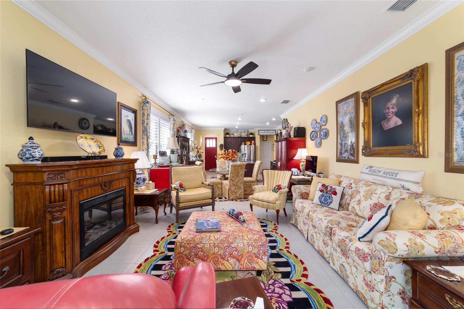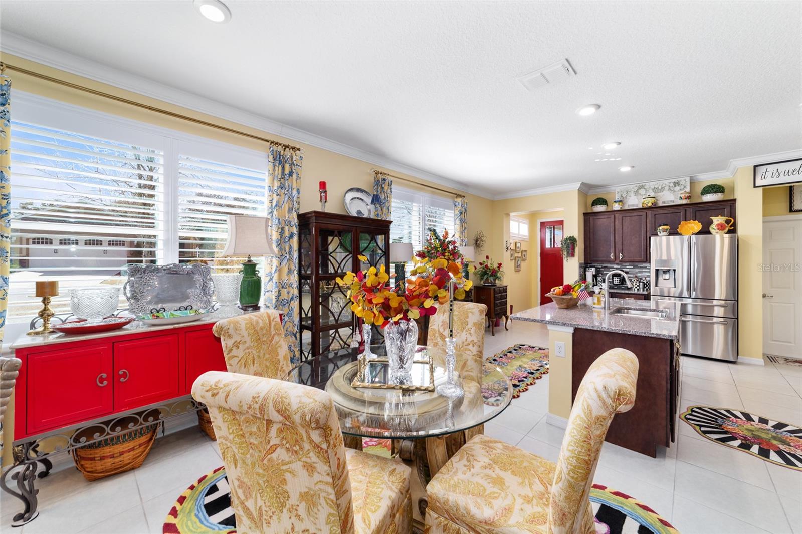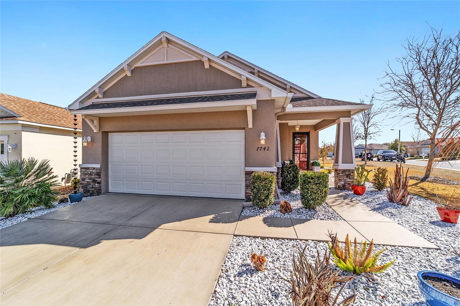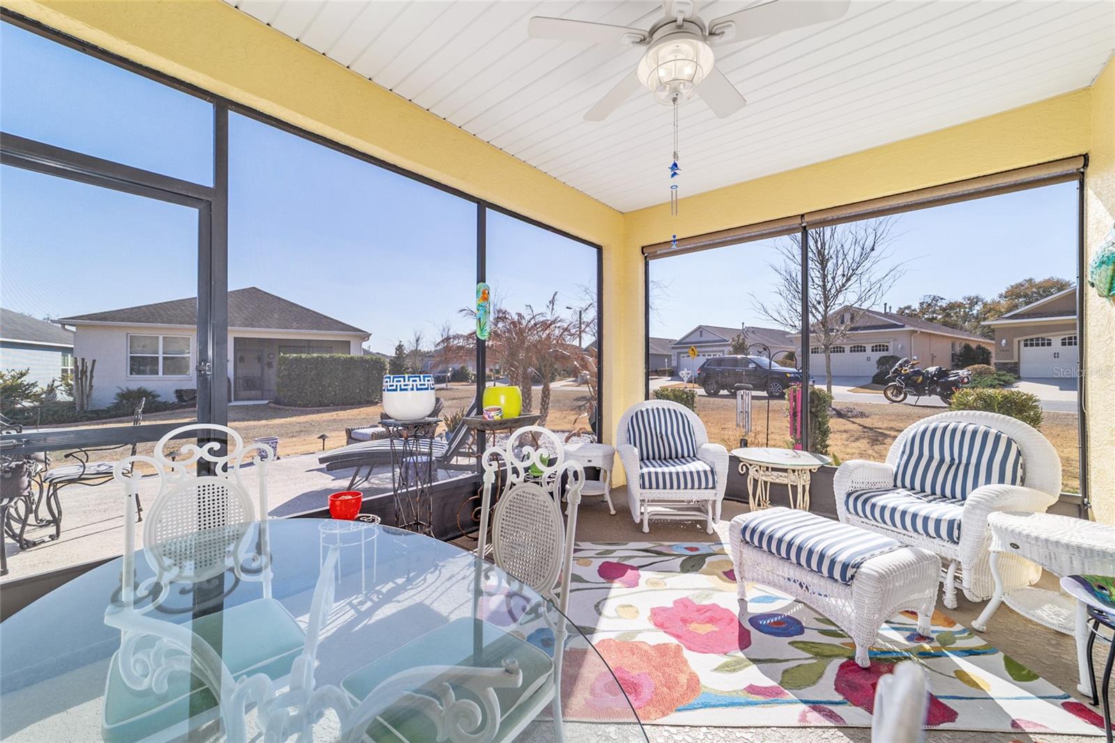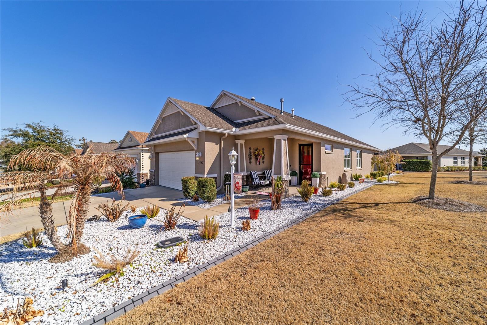 LOTE PREMIUM: Perfeitamente posicionado em um lote de esquina premium com vistas profundas para espaços verdes, este modelo Rimon lindamente conservado em Indigo East no On Top of the World oferece uma vida refinada com um toque de elegância. Banhada por luz natural, esta residência de 2 quartos e 2 banheiros, uma espaçosa garagem para 2 carros e um quarto flexível com ar-condicionado no segundo andar combina conforto, sofisticação e funcionalidade. A cozinha de conceito aberto é elegante e convidativa, com bancadas de granito, eletrodomésticos de aço inoxidável, armários de madeira maciça com sancas, ilha central e um impressionante backsplash de mosaico de vidro que adiciona um toque de designer. O fluxo contínuo para as principais áreas de estar cria um ambiente ideal para uma vida funcional. A suíte principal é um retiro privado, completo com dois closets e um elegante banheiro privativo com pias duplas e box amplo com banco embutido. O acesso através de um corredor separado leva ao 2º quarto e banheiro, dando privacidade aos hóspedes, e à lavanderia que possui armários extras para arrumação. As persianas melhoram a estética clássica ao mesmo tempo que permitem um belo controle de luz natural. Escondida no andar de cima, a sala flexível com ar-condicionado oferece versatilidade excepcional, perfeita como sala de artesanato, espaço para hobby, escritório privativo, área de armazenamento ou uma convidativa caverna masculina. Saia para a espaçosa varanda com tela e continue até o impressionante pátio de 15x30, o sonho de qualquer artista e o cenário perfeito para aproveitar o sol da Flórida o ano todo. O pátio totalmente irrigado apresenta canteiros de paisagem curvados com preenchimento de rocha decorativa e iluminação paisagística, criando um apelo polido ao meio-fio com facilidade de baixa manutenção. Aproveite as comodidades privadas do Indigo com acesso a duas piscinas, academia, club house, acesso à praça e golfe no Candler Hills Golf Club. Como parte do principal condomínio fechado de Ocala para mais de 55 pessoas, o On Top of the World também oferece acesso de carrinho de golfe a três shopping centers. Um Gateway Pass opcional oferece acesso ampliado às amplas comodidades da comunidade.