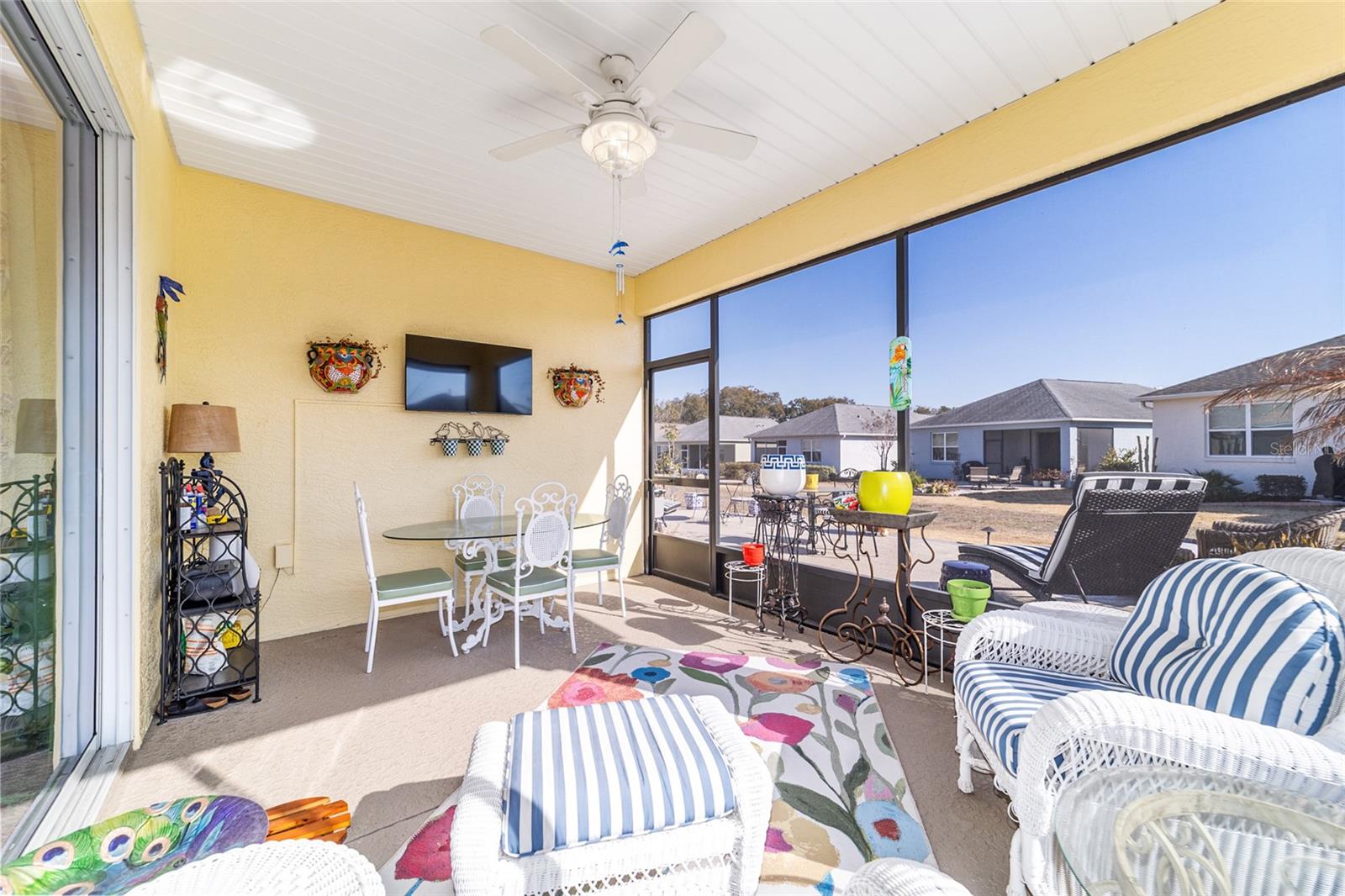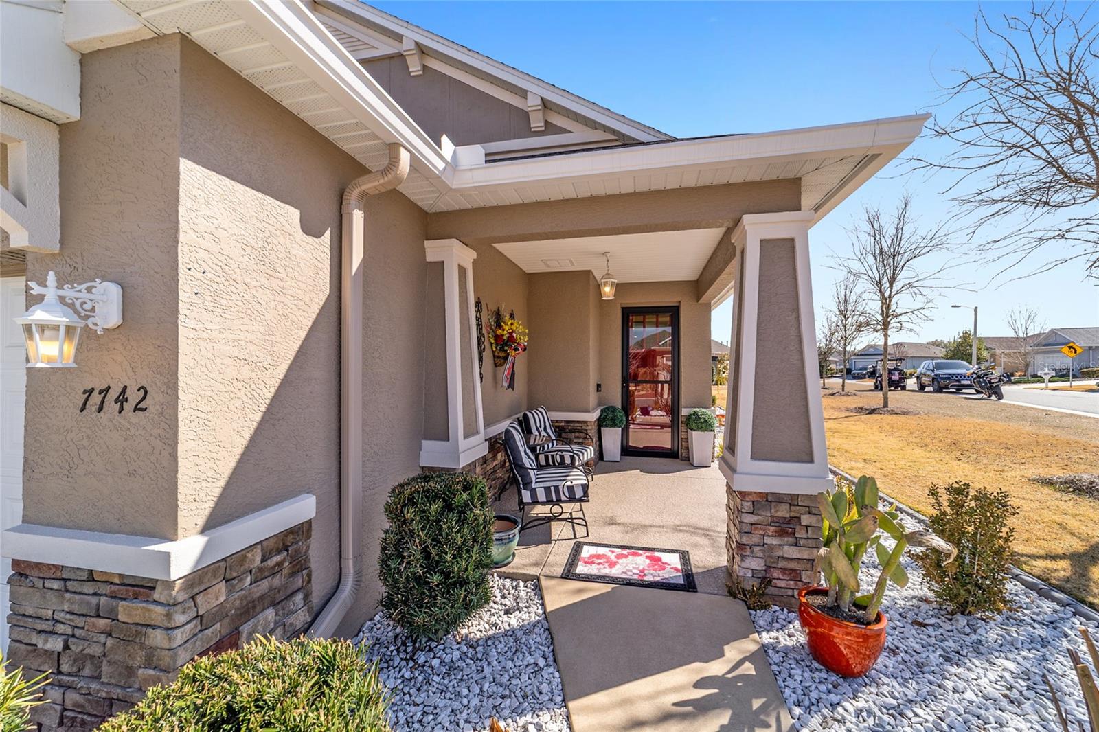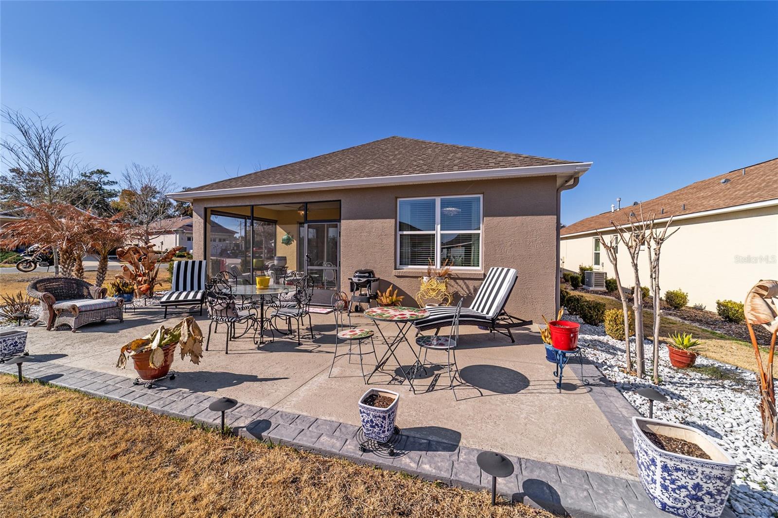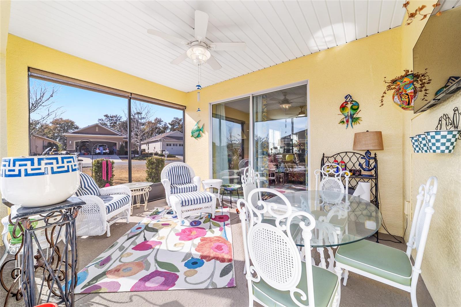LOTE PREMIUM: Perfeitamente posicionado em um lote de esquina premium com vistas profundas para espaços verdes, este modelo Rimon lindamente conservado em Indigo East no On Top of the World oferece uma vida refinada com um toque de elegância. Banhada por luz natural, esta residência de 2 quartos e 2 banheiros, uma espaçosa garagem para 2 carros e um quarto flexível com ar-condicionado no segundo andar combina conforto, sofisticação e funcionalidade. A cozinha de conceito aberto é elegante e convidativa, com bancadas de granito, eletrodomésticos de aço inoxidável, armários de madeira maciça com sancas, ilha central e um impressionante backsplash de mosaico de vidro que adiciona um toque de designer. O fluxo contínuo para as principais áreas de estar cria um ambiente ideal para uma vida funcional. A suíte principal é um retiro privado, completo com dois closets e um elegante banheiro privativo com pias duplas e box amplo com banco embutido. O acesso através de um corredor separado leva ao 2º quarto e banheiro, dando privacidade aos hóspedes, e à lavanderia que possui armários extras para arrumação. As persianas melhoram a estética clássica ao mesmo tempo que permitem um belo controle de luz natural. Escondida no andar de cima, a sala flexível com ar-condicionado oferece versatilidade excepcional, perfeita como sala de artesanato, espaço para hobby, escritório privativo, área de armazenamento ou uma convidativa caverna masculina. Saia para a espaçosa varanda com tela e continue até o impressionante pátio de 15x30, o sonho de qualquer artista e o cenário perfeito para aproveitar o sol da Flórida o ano todo. O pátio totalmente irrigado apresenta canteiros de paisagem curvados com preenchimento de rocha decorativa e iluminação paisagística, criando um apelo polido ao meio-fio com facilidade de baixa manutenção. Aproveite as comodidades privadas do Indigo com acesso a duas piscinas, academia, club house, acesso à praça e golfe no Candler Hills Golf Club. Como parte do principal condomínio fechado de Ocala para mais de 55 pessoas, o On Top of the World também oferece acesso de carrinho de golfe a três shopping centers. Um Gateway Pass opcional oferece acesso ampliado às amplas comodidades da comunidade.