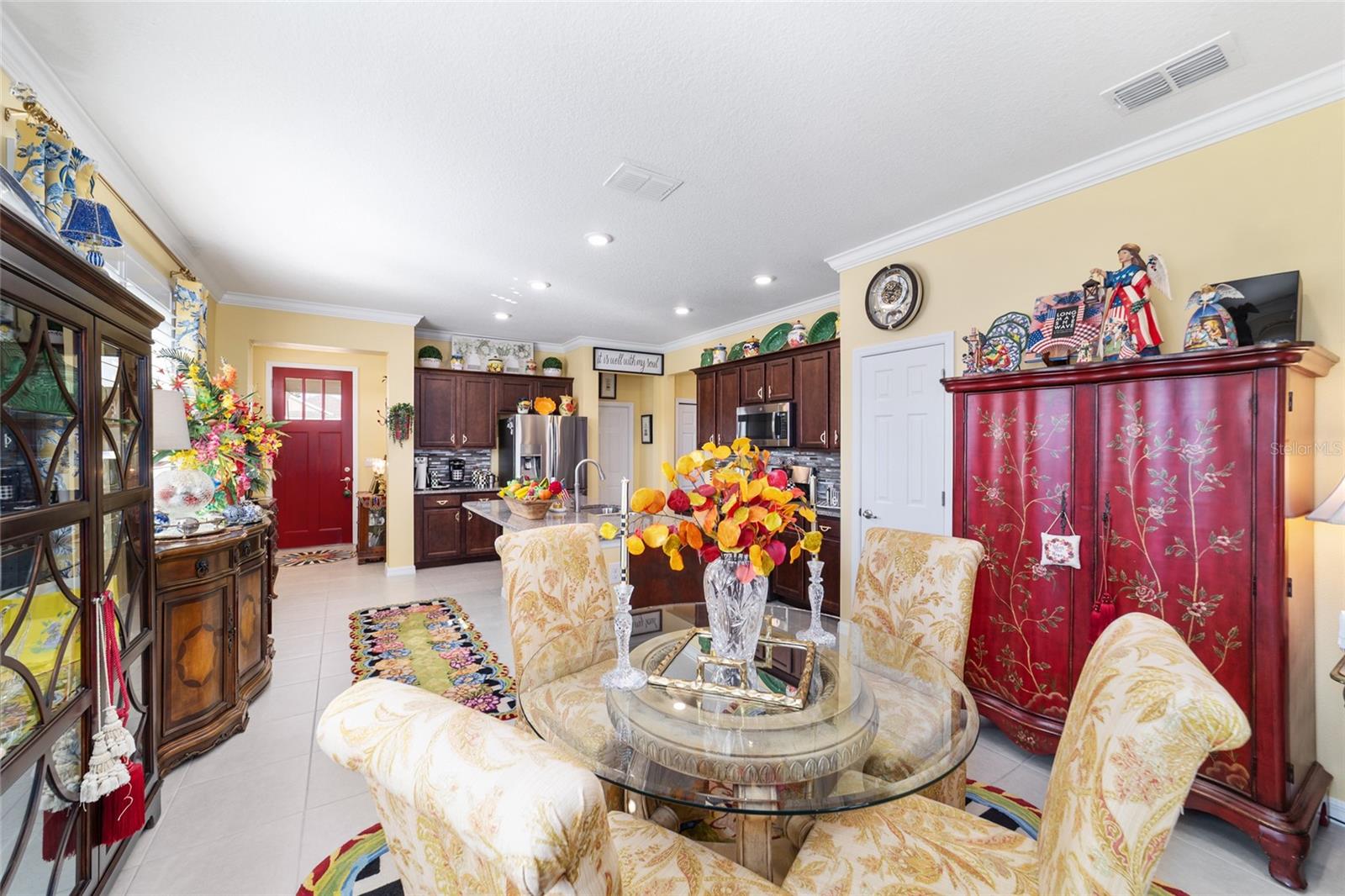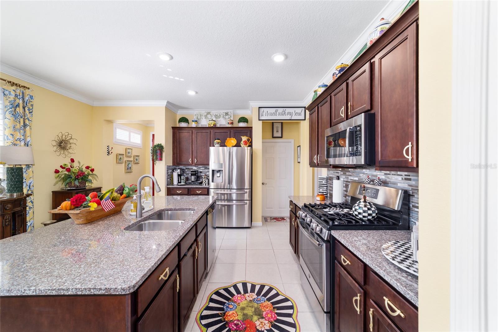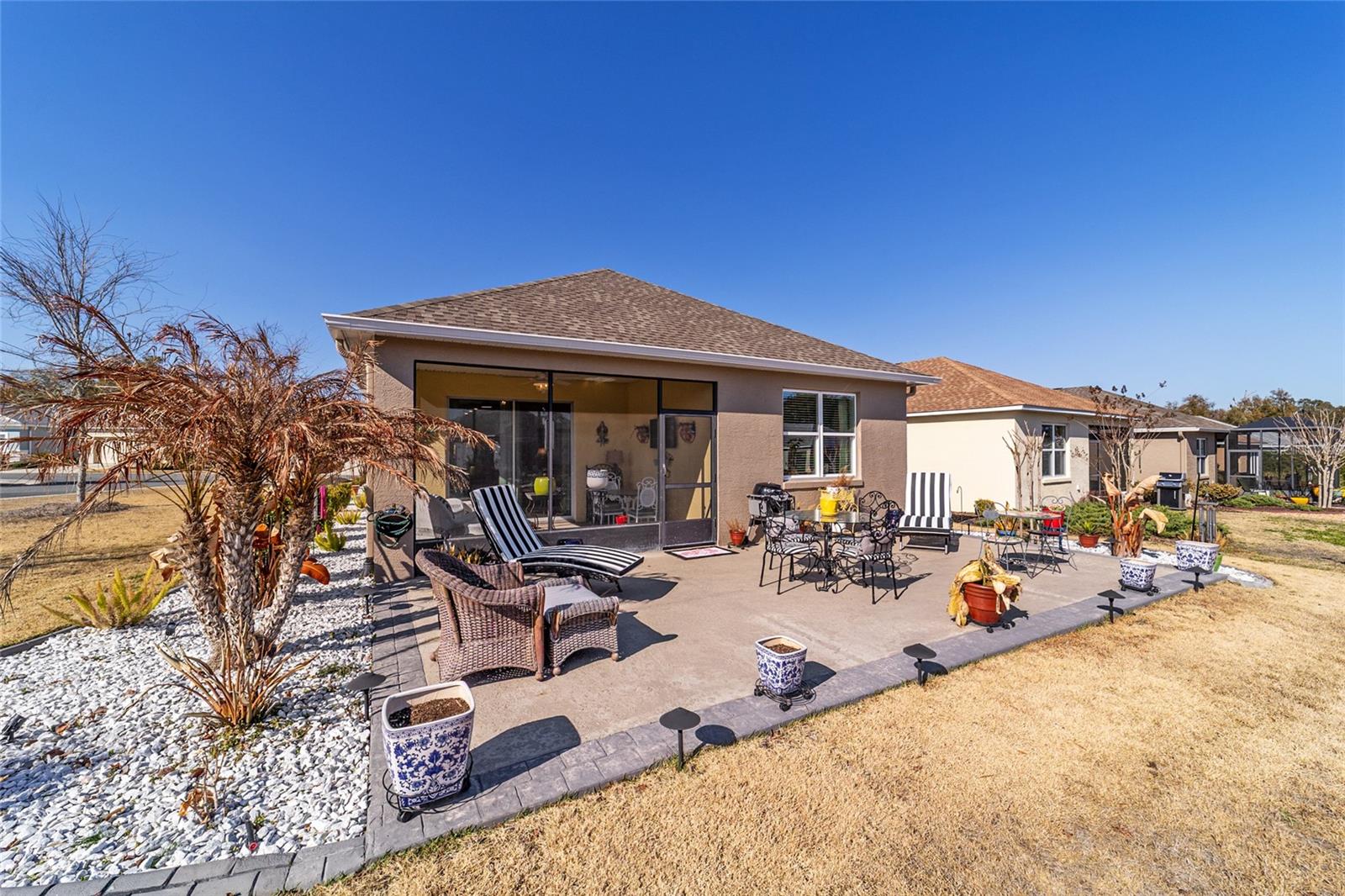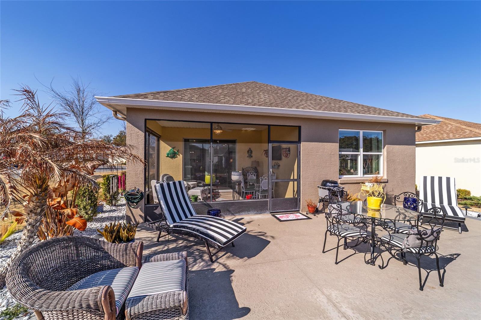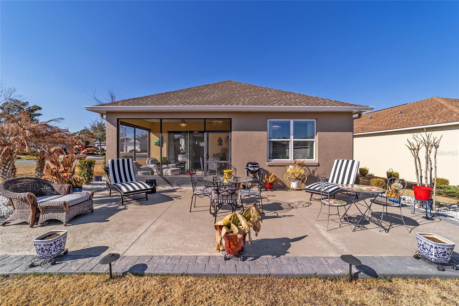 LOTE PREMIUM: Perfeitamente posicionado em um lote de esquina premium com vistas profundas para espaços verdes, este modelo Rimon lindamente conservado em Indigo East no On Top of the World oferece uma vida refinada com um toque de elegância. Banhada por luz natural, esta residência de 2 quartos e 2 banheiros, uma espaçosa garagem para 2 carros e um quarto flexível com ar-condicionado no segundo andar combina conforto, sofisticação e funcionalidade. A cozinha de conceito aberto é elegante e convidativa, com bancadas de granito, eletrodomésticos de aço inoxidável, armários de madeira maciça com sancas, ilha central e um impressionante backsplash de mosaico de vidro que adiciona um toque de designer. O fluxo contínuo para as principais áreas de estar cria um ambiente ideal para uma vida funcional. A suíte principal é um retiro privado, completo com dois closets e um elegante banheiro privativo com pias duplas e box amplo com banco embutido. O acesso através de um corredor separado leva ao 2º quarto e banheiro, dando privacidade aos hóspedes, e à lavanderia que possui armários extras para arrumação. As persianas melhoram a estética clássica ao mesmo tempo que permitem um belo controle de luz natural. Escondida no andar de cima, a sala flexível com ar-condicionado oferece versatilidade excepcional, perfeita como sala de artesanato, espaço para hobby, escritório privativo, área de armazenamento ou uma convidativa caverna masculina. Saia para a espaçosa varanda com tela e continue até o impressionante pátio de 15x30, o sonho de qualquer artista e o cenário perfeito para aproveitar o sol da Flórida o ano todo. O pátio totalmente irrigado apresenta canteiros de paisagem curvados com preenchimento de rocha decorativa e iluminação paisagística, criando um apelo polido ao meio-fio com facilidade de baixa manutenção. Aproveite as comodidades privadas do Indigo com acesso a duas piscinas, academia, club house, acesso à praça e golfe no Candler Hills Golf Club. Como parte do principal condomínio fechado de Ocala para mais de 55 pessoas, o On Top of the World também oferece acesso de carrinho de golfe a três shopping centers. Um Gateway Pass opcional oferece acesso ampliado às amplas comodidades da comunidade.