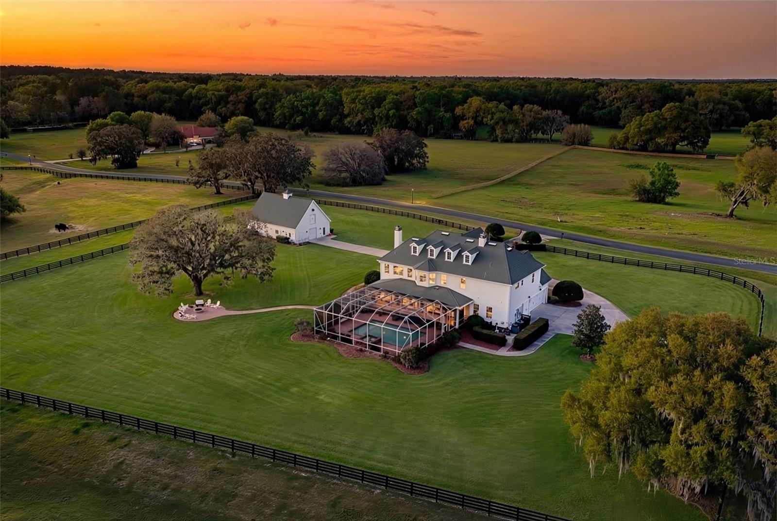 Requintadamente renovada e situada em quase 14 acres em 2 lotes contíguos na altamente desejável comunidade de Greenway Crossing, esta propriedade excepcional oferece a rara combinação de arquitetura sulista atemporal, acabamentos modernos de luxo e vida em escala real - a poucos minutos do sistema Santos Trail e do coração da principal região de cavalos de Ocala. Recebida por portas de ferro Milano personalizadas na charmosa varanda frontal do sul, a casa foi completamente reimaginada com o olhar de um designer, com piso em toda a mostra uma mistura curada de mármore Thassos e Nero Marquina, calcário francês e impressionante carvalho branco espinha de peixe, criando uma estética sofisticada em camadas que é ao mesmo tempo ousada e atemporal. O layout da casa cercada por varandas envolventes é perfeito para famílias e entretenimento, com vários espaços para assistir filmes, comer e / ou relaxar. A cozinha é uma verdadeira peça de exibição - projetada para entretenimento e luxo do dia a dia - com todos os novos eletrodomésticos DACOR de metal, incluindo um sub-frigorífico duplo, dois fornos, fogão a gás de 4 bocas com grelha, um dispensador de vinho ultraluxuoso, armários de elite, bancadas de quartzo, luminárias / iluminação douradas e uma ilha de açougue personalizada que ancora o espaço com calor e funcionalidade com vista para a piscina cintilante. Atualizações adicionais incluem controles de iluminação inteligentes Lutron, iluminação LED integrada, sistema de áudio doméstico HEOS, portas de ferro Milano personalizadas, hardware Buster & Punch e detalhes de papel de parede do designer Graham & Brown. A vida ao ar livre é igualmente impressionante, com uma piscina protegida e um spa equipado com controles Pentair ScreenLogic, amplas áreas de entretenimento com pavimentação de tijolos e espaços cobertos projetados para capturar as vistas pacíficas da área circundante. A propriedade é totalmente cercada com cercas clássicas de tabuleiro preto e adornada com carvalhos maduros, oferecendo pastagens abertas e um celeiro independente de grandes dimensões em estilo Kentucky, atualmente configurado como uma academia com banheiro completo e 1.500 m². segundo andar que pode ser concluído com uso versátil, incluindo uma transição muito simples para um estábulo europeu de 6 baias ou uso recreativo. Esteja você hospedado sob os carvalhos, desfrutando de manhãs tranquilas na varanda ao redor ou se divertindo à beira da piscina enquanto o sol se põe sobre o pasto - esta propriedade não apenas marca caixas... ela cria momentos e um estilo de vida que está cada vez mais difícil de encontrar e impossível de recriar neste nível. O pôr do sol é INCRÍVEL!