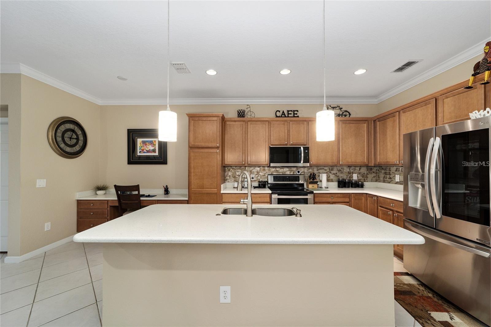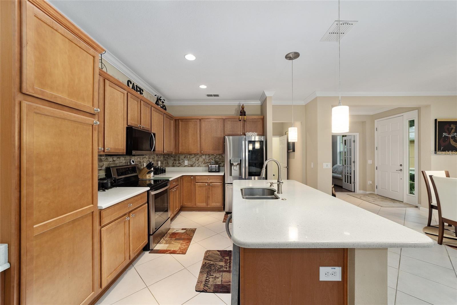 NOVO TELHADO INSTALADO EM MARÇO DE 2025! O vendedor está motivado e ansioso por uma oferta! Bem-vindo a esta vila ATUALIZADA localizada no condomínio fechado com mais de 55 anos de Stone Creek. Você será recebido por um paisagismo maduro e uma passarela para sua entrada PRIVADA e coberta. No interior, o foyer tem uma zona de descida e vista para a GRANDE SALA! Uau! Este conceito aberto oferece uma área de estar que pode acomodar facilmente móveis de grandes dimensões e uma área de jantar adjacente à cozinha, ideal para entretenimento e vida diária! A cozinha é um SONHO com armários de madeira, bancadas de QUARTZO, backsplash de vidro e eletrodomésticos de aço inoxidável que incluem uma geladeira LG InstaView™! Esta também é a ÚNICA villa à venda com uma ilha atualizada onde a bancada de dois níveis foi removida e substituída por uma bancada de QUARTZO de um nível! Os armários possuem prateleiras removíveis que facilitam o acesso aos itens e uma escrivaninha embutida feita com os mesmos armários que a construtora utilizou tornando esta uma COMBINAÇÃO PERFEITA! A planta dividida tem o quarto principal localizado na parte traseira da casa para maior privacidade. Este espaço é GRANDE permitindo móveis maiores. O banheiro privativo tem ATUALIZAÇÕES e recursos que incluem box amplo/porta de vidro, vaso sanitário separado, pias duplas com armários de madeira e armazenamento que inclui um banco extra de gavetas! O armário WALK IN irá acomodar todas as suas necessidades de armazenamento! O segundo quarto pode acomodar uma cama king size e tem uma parede com armários! O banheiro de hóspedes é facilmente acessado a partir do segundo quarto para que seus amigos e familiares sintam o conforto de sua casa! Há um escritório/escritório/estudo com portas francesas duplas de vidro que podem funcionar como TERCEIRO QUARTO quando necessário. Você aproveitará o ar livre com dois conjuntos de controles deslizantes que o levarão para fora e para sua varanda coberta, que fica sob o telhado estrutural! As características adicionais incluem moldura COROA, iluminação embutida e pendente, balcões de QUARTZO e retangulares, pias montadas em ambos os banheiros, azulejos instalados na diagonal e piso laminado nos quartos e arrumos (SEM TAPETE!) A lavanderia fica DENTRO com muitos armários. A garagem abriga o descalcificador, possui tela e piso em epóxi! Esta é uma comunidade ACEITA ANIMAIS DE ESTIMAÇÃO (até 3 permitidos sem LIMITE DE PESO) com parques para cães pequenos e grandes! Esta comunidade adulta ATIVA é livre de manutenção com um campo de golfe profissional de 18 buracos, piscina externa em estilo resort com entrada para a praia, piscina coberta e spa, academia, DIRETOR DE ESTILO DE VIDA em tempo integral, pickleball, beisebol, um café e muito mais! A Equipe Comunitária de Resposta a Emergências é certificada pela FEMA e pela Segurança Interna, fornecendo assistência imediata que mostra o compromisso em manter a comunidade mais segura e melhor preparada!