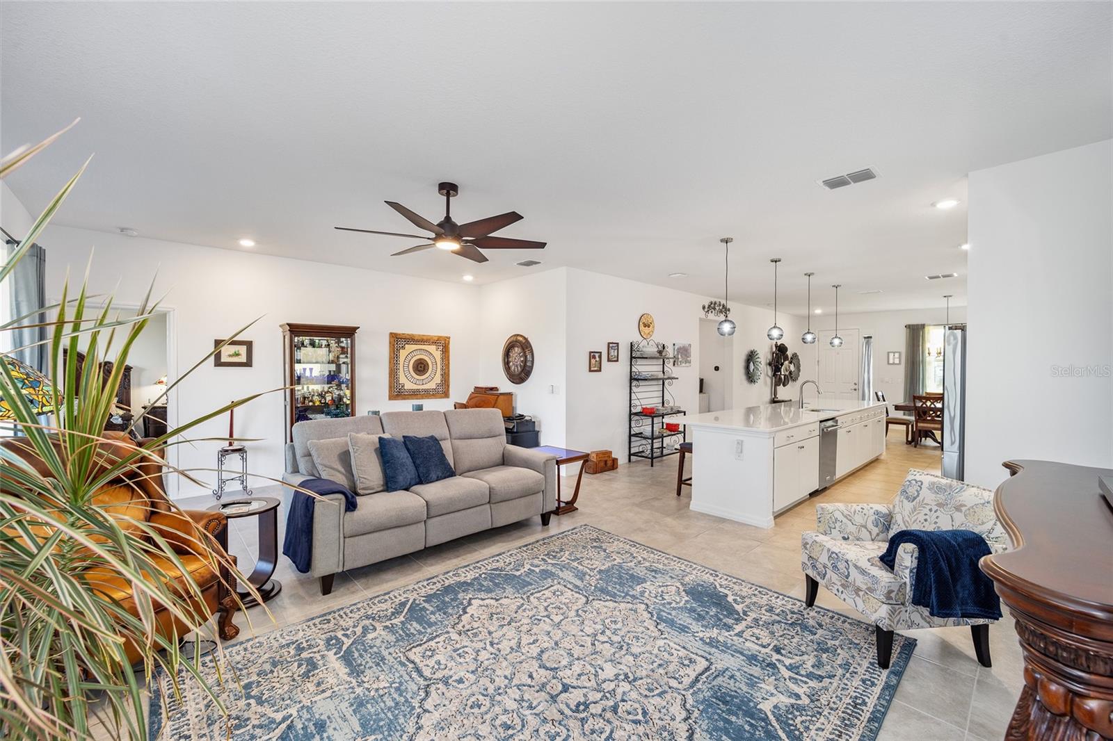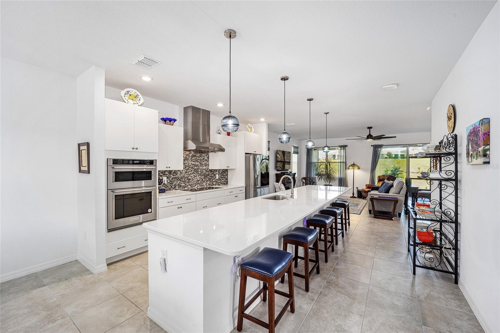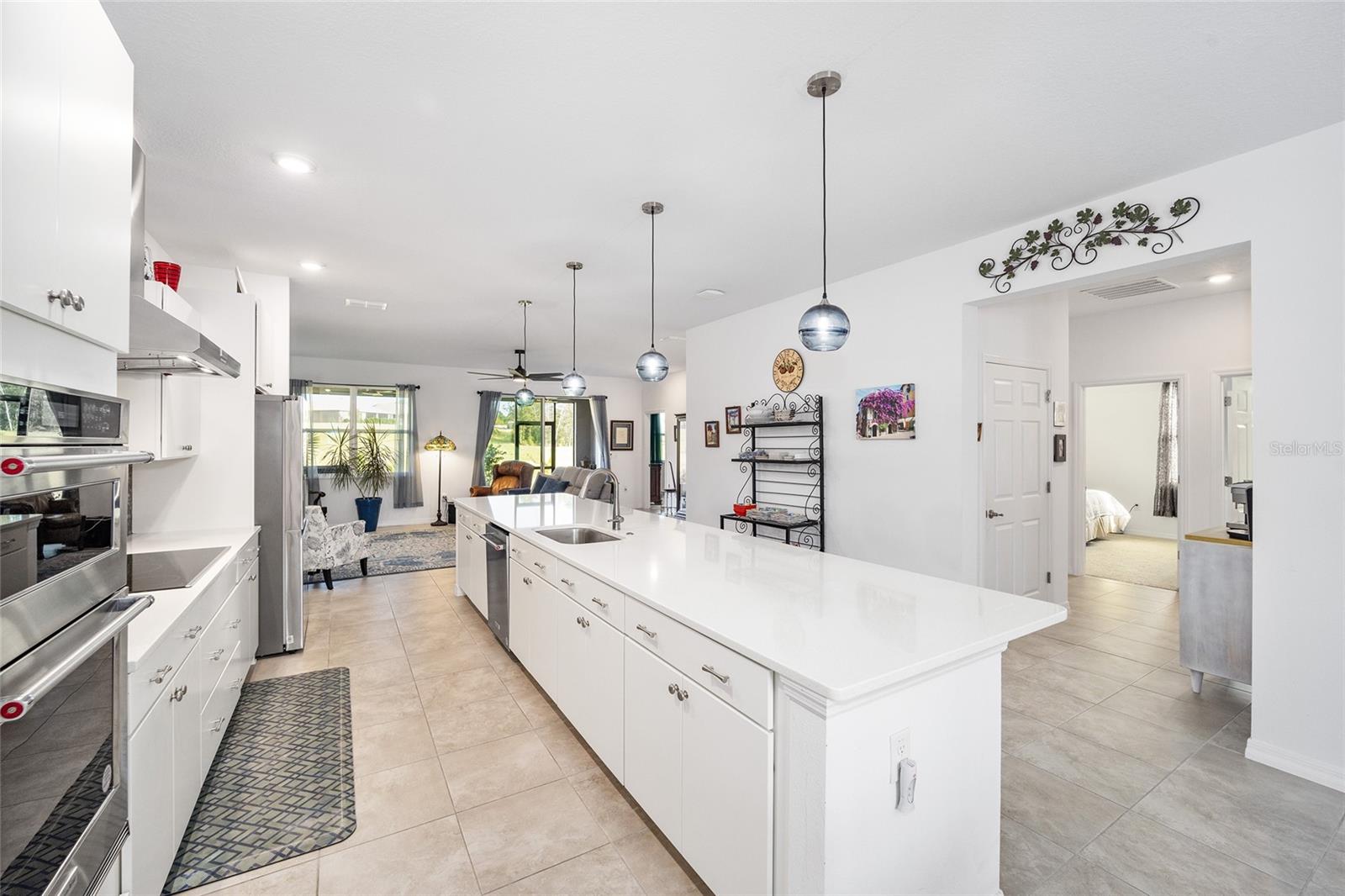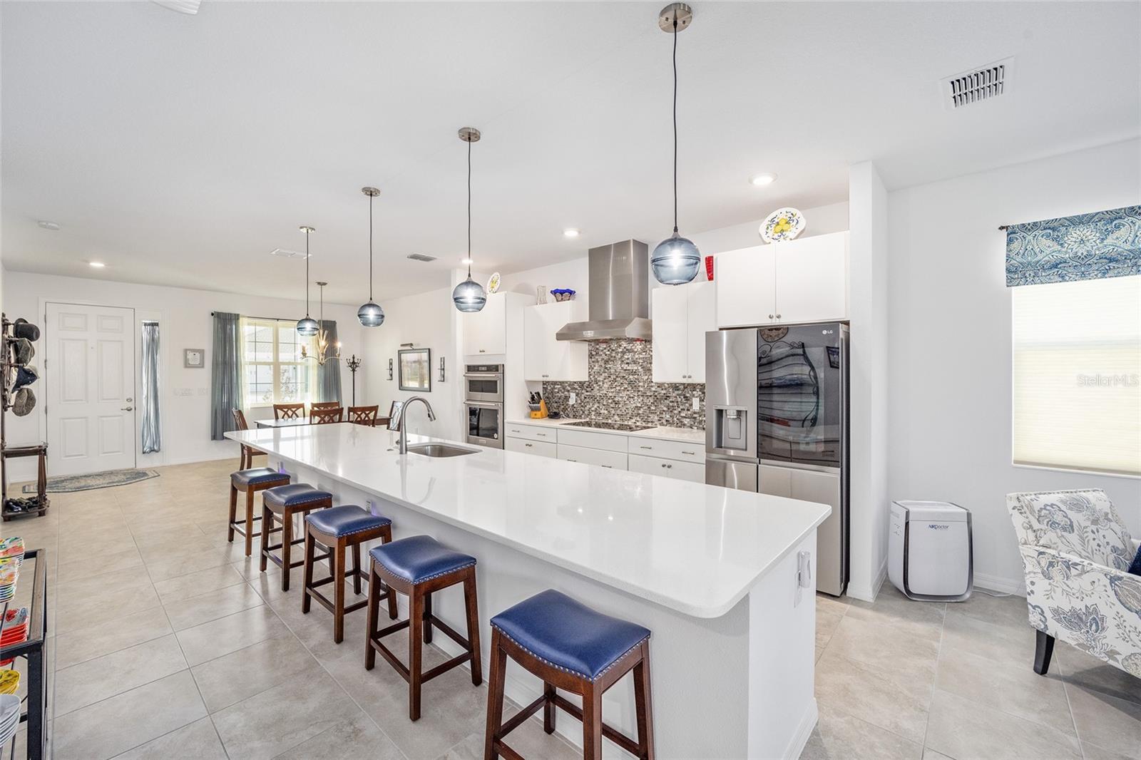 PROPRIETÁRIOS ANSIOSOS, TRAGA SUA OFERTA! Linda casa 3bd/2ba de 1.874 pés quadrados em mais de 55 comunidades. Construído em abril de 2022 em um terreno escolhido em um maravilhoso beco sem saída. A cozinha do Chef tem eletrodomésticos de aço inoxidável de alta qualidade, opções para cozinhar a gás ou elétrico, backsplash lindo, armários com fechamento suave, gavetas, despensa espaçosa com prateleira de temperos e uma espetacular ilha central de quartzo de 15 pés perfeita para entretenimento. A varanda traseira sem casas atrás proporciona serenidade relaxante. Chuveiro master walk-in, iluminação e ventiladores atualizados, protetor contra surtos de toda a casa, amaciante e filtragem de água e calhas. A garagem foi isolada e ampliada em 4 pés. Casa inteligente. HOA cobre internet básica, remoção de lixo, corte e afiação de grama, pintura externa a cada 7 anos e reparo de telhado. Curta viagem de carrinho de golfe até a mercearia, Rec ctr, área de comodidades Summit (em breve), Veterans Park e muito mais.