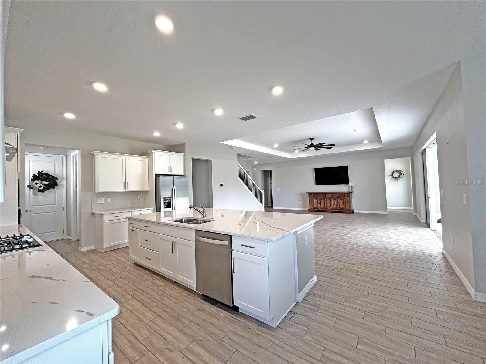 Este modelo de amoreira atualizado, localizado em um lote premium no condomínio fechado do município de Calesa. A amoreira é o maior modelo oferecido com 4 quartos, 4,5 banheiros, garagem de 3 carros, enorme loft e escritório/flexão. O hall de entrada abre para a sala de estar com uma porta deslizante de 12 'com vistas pitorescas. A cozinha possui uma faixa de gás atualizada, armários de 42 ”, ilha de quartzo e utensílios de aço inoxidável. Há muito armazenamento na despensa adjacente e na área de ninhos. A área do ninho possui armários, pia de preparação e geladeira de vinho. O quarto principal está localizado no andar de baixo, com tetos de bandeja e dois armários. O banho principal tem pia dupla, um chuveiro de azulejos e banheira de imersão. No andar de cima é um loft grande, dois quartos privados e um quarto com banheiro adjacente para obter a máxima privacidade! Não há casas diretamente na frente ou atrás, desfrute de vistas espetaculares da varanda da frente e da varanda traseira. O Lanai tem gás natural e é encantado para uma cozinha ao ar livre. Traga seu carrinho de golfe! Caminhos multimodais para a Escola Charter Pública no local e o Fast Center. Há inúmeras comodidades oferecidas no município de Calesa, incluindo playgrounds, quadras de basquete, piscinas, salpicos, trilhas para caminhada, parque de cães e parque de skate. As quadras de pickleball e Biergarten estão atualmente em construção.