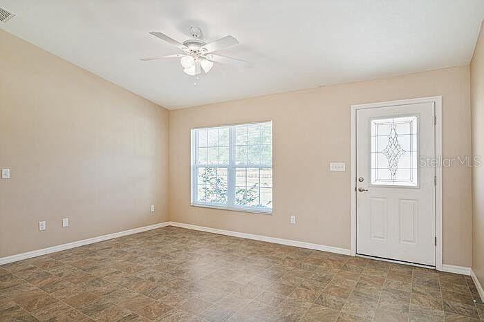 Uma ou mais fotos foram praticamente encenadas. Bem-vindo ao Silver Springs Shores-uma das comunidades de crescimento mais rápido e desejável de Ocala! Esta casa de 4 quartos e 2 banheiros, construída em 2018, oferece 1.467 pés quadrados de espaço bem projetado com um piso plano aberto, tetos de catedral e luz natural abundante. A cozinha moderna possui utensílios de aço inoxidável, bancadas em granito e armários atualizados com moldagem por coroa. A suíte master privada possui um teto de bandeja, armários duplos e um chuveiro bem fechado de vidro. Destaques adicionais incluem quartos de tamanho generoso, conexões de lavanderia interior, A/C central e uma garagem de 2 carros. Lá fora, desfrute de um quintal totalmente cercado com novas cercas de privacidade de vinil para adicionar isolamento, além da liberdade de estacionar seu barco ou RV em sua propriedade. Um pátio coberto o torna perfeito para relaxar ou divertir. Com taxas de HOA ou CDD, essa propriedade é ideal para proprietários ou investidores - viva nela imediatamente ou alugue imediatamente. Convenientemente localizado perto de compras, restaurantes e o sistema de trilhas Cross Florida Greenway.
