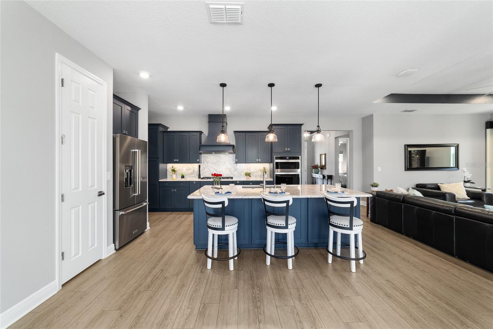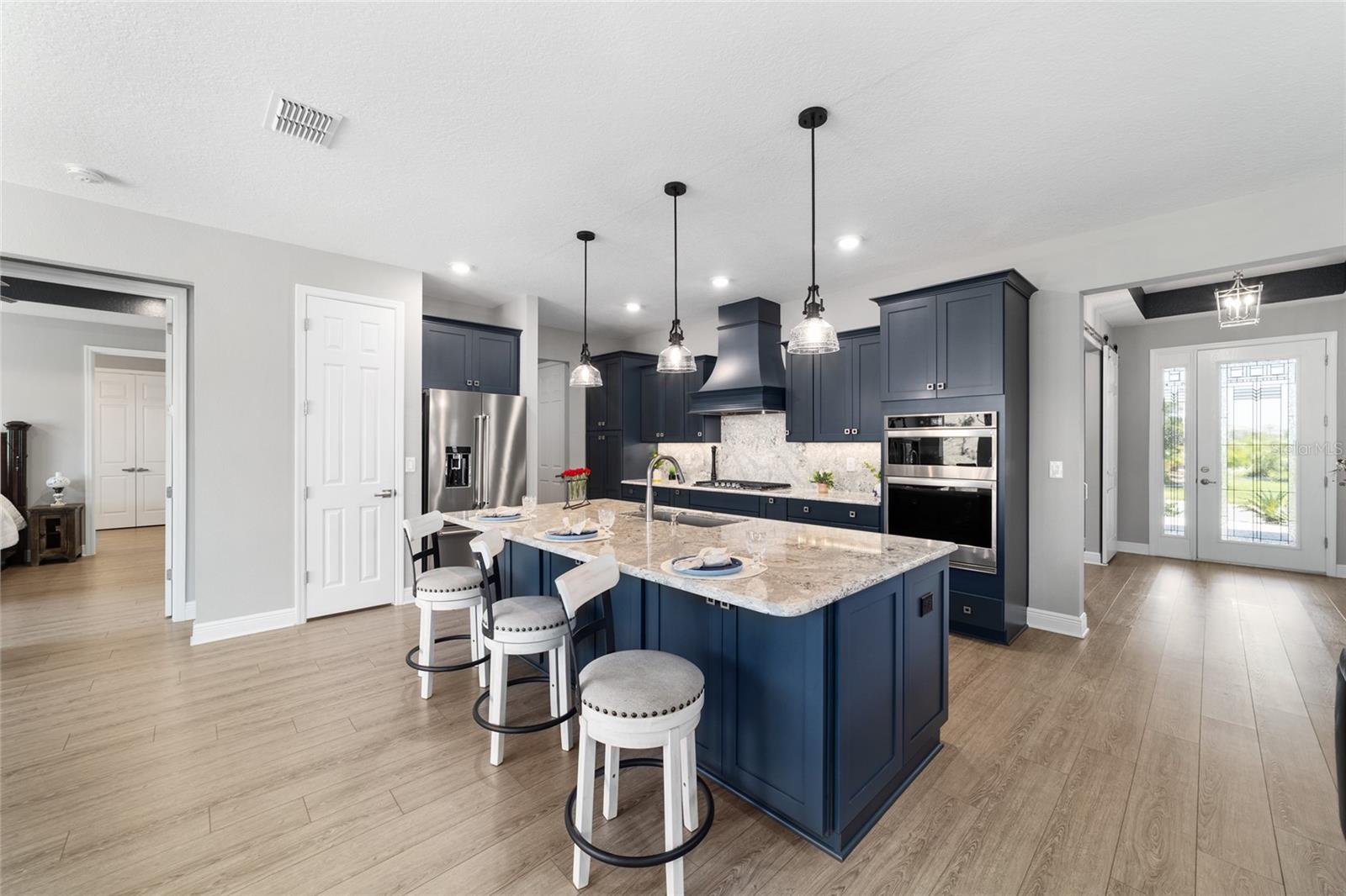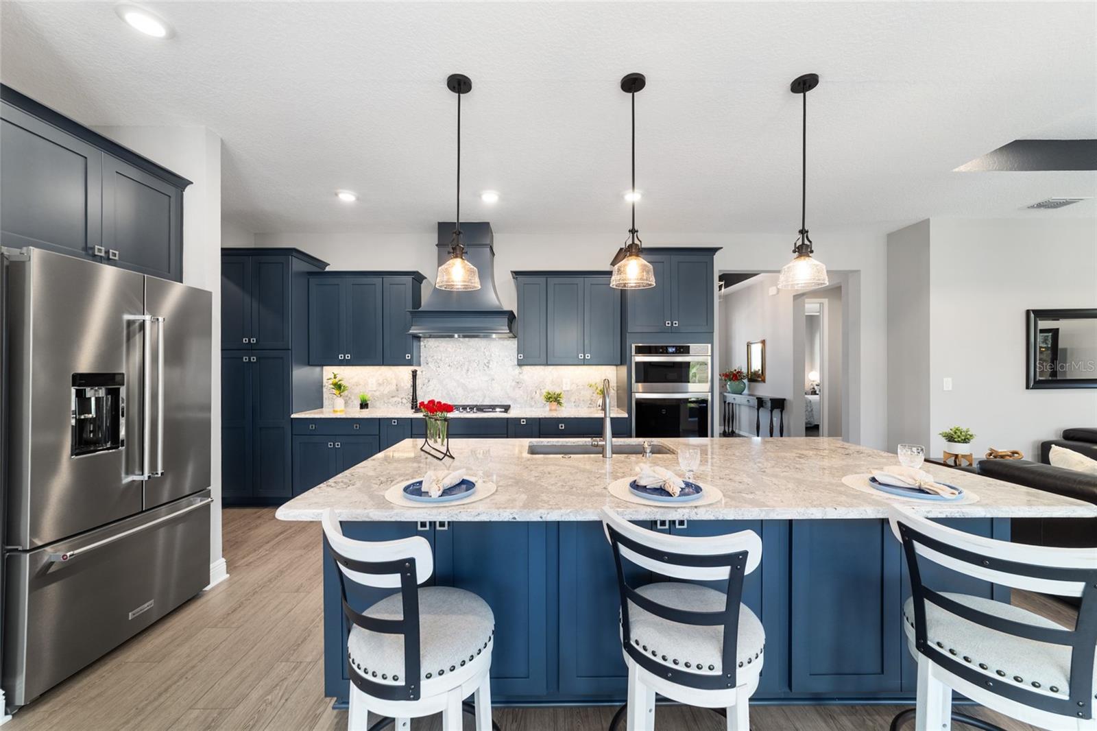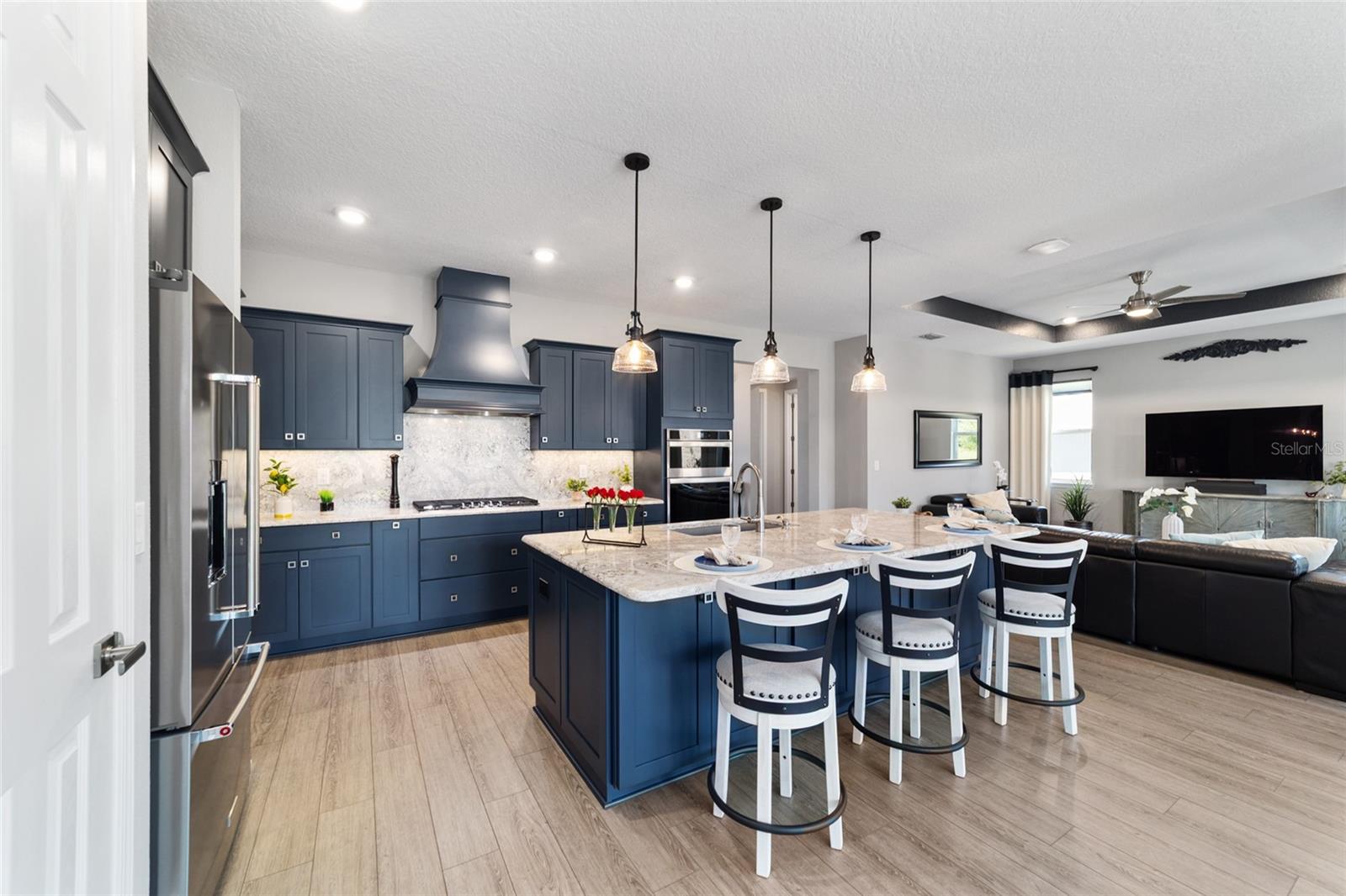 Bem -vindo ao 10298 SW 96th Loop, uma excepcional casa de construção de 2022, localizada no cobiçado bairro de Longleaf Ridge, no topo do mundo. Esta residência se passa em um lar de grandes dimensões particulares, com paisagismo profissional exuberante, apelo atraente e uma ampla garagem de pavimentadora que leva a uma espaçosa garagem de 3 carros. Dentro, a planta baixa, bem projetada, é preenchida com luz natural, aprimorada pelo piso de tábua de vinil de luxo e tetos altos. As janelas do chão ao teto na área de jantar formal criam uma atmosfera brilhante e convidativa, enquanto as portas francesas se abrem para um pátio lindamente exibido, onde o spa privado permanece com a casa que oferece serenidade diária. A cozinha de designer é um verdadeiro ponto focal, com ricos armários azuis, uma ilha de grandes dimensões com armazenamento adicional, bancadas de quartzo que continuam perfeitamente em um backsplash de quartzo de altura integral, um fogão a gás natural, um exaustor de declaração personalizada, um forno de convecção embutido/combo de microondas e um refrigerador de cozinha premium. Todo detalhe fala de qualidade e design elevado. O layout do quarto dividido oferece conforto e privacidade, com uma suíte de convidado frontal e banho completo. O Den, fechado por portas personalizadas, oferece um espaço flexível ideal para um escritório em casa, sala de hobby ou retiro de hóspedes. A suíte primária é um santuário privado com um chuveiro de grandes dimensões com piso de telha de seixos, pias duplas, uma vaidade generosa com amplo armazenamento, um armário de linho e um armário de água privado. Projetado para uma vida sem esforço e sem manutenção em uma das mais vibrantes de 55 comunidades da Flórida, esta casa oferece conforto, luxo e facilidade diária. Com tudo o que você precisa em casa, todos os dias parecem realmente férias, e você pode nunca querer sair.