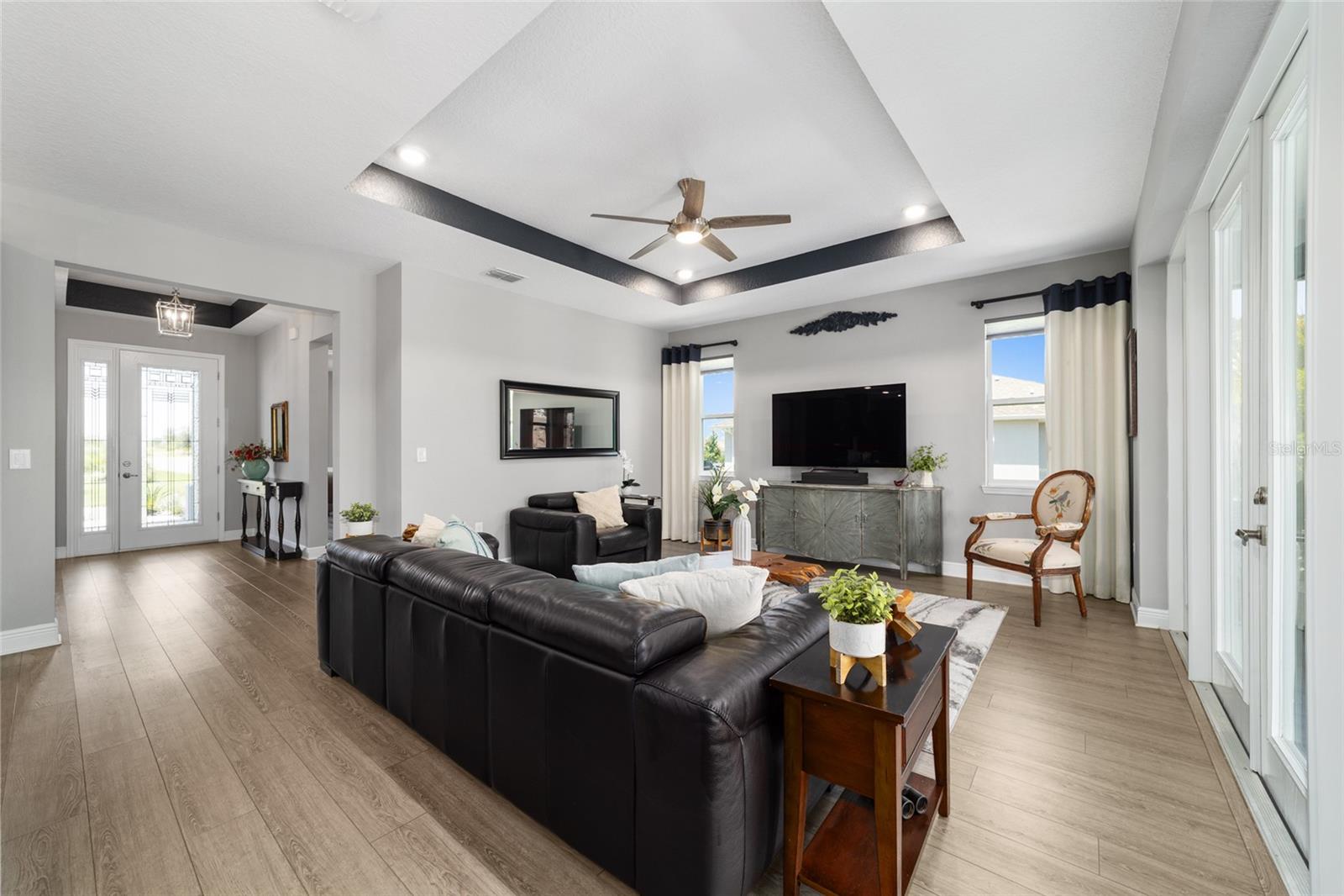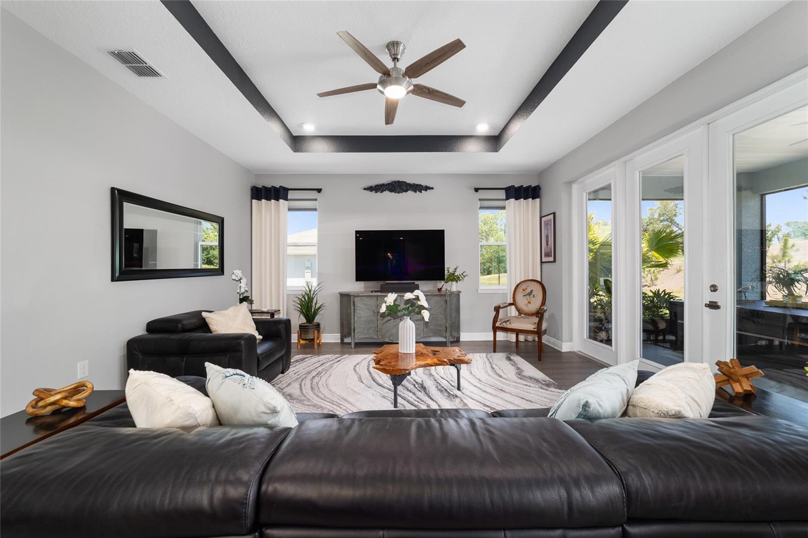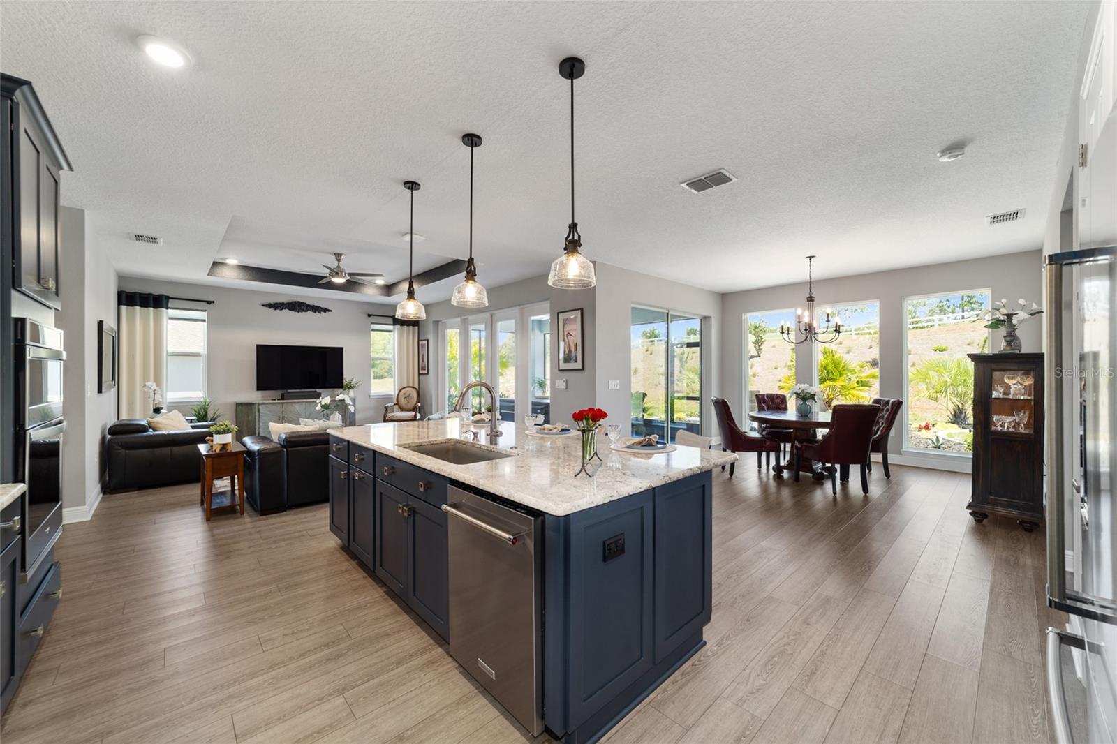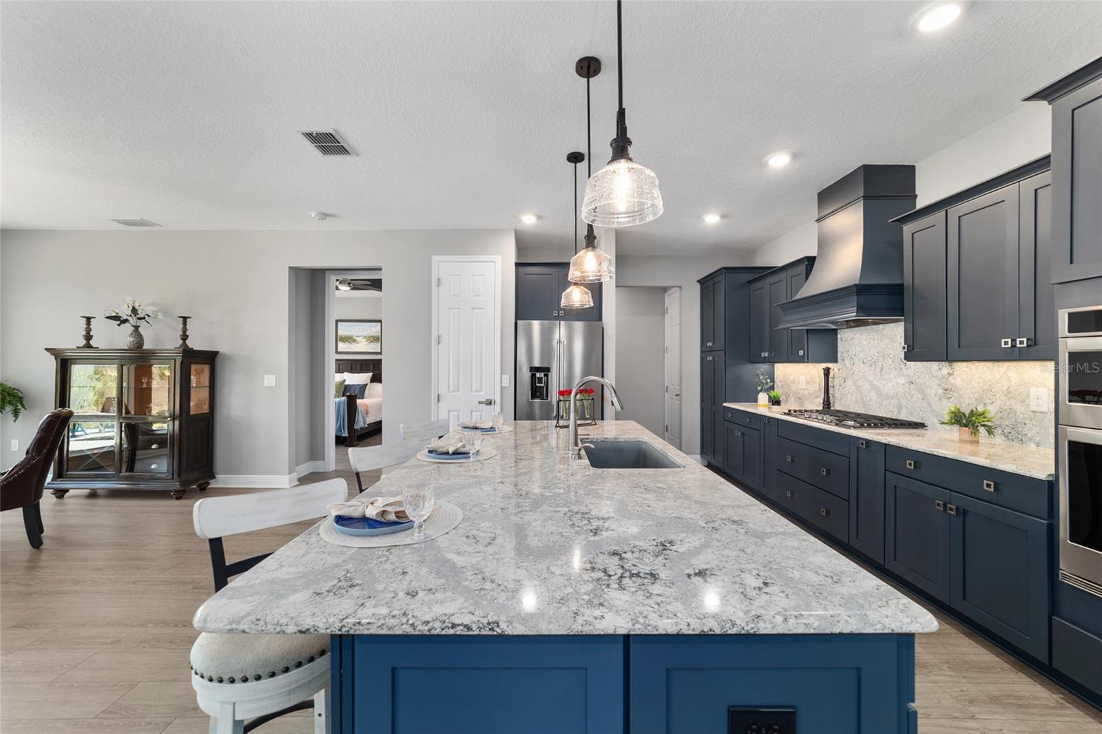 Bem -vindo ao 10298 SW 96th Loop, uma excepcional casa de construção de 2022, localizada no cobiçado bairro de Longleaf Ridge, no topo do mundo. Esta residência se passa em um lar de grandes dimensões particulares, com paisagismo profissional exuberante, apelo atraente e uma ampla garagem de pavimentadora que leva a uma espaçosa garagem de 3 carros. Dentro, a planta baixa, bem projetada, é preenchida com luz natural, aprimorada pelo piso de tábua de vinil de luxo e tetos altos. As janelas do chão ao teto na área de jantar formal criam uma atmosfera brilhante e convidativa, enquanto as portas francesas se abrem para um pátio lindamente exibido, onde o spa privado permanece com a casa que oferece serenidade diária. A cozinha de designer é um verdadeiro ponto focal, com ricos armários azuis, uma ilha de grandes dimensões com armazenamento adicional, bancadas de quartzo que continuam perfeitamente em um backsplash de quartzo de altura integral, um fogão a gás natural, um exaustor de declaração personalizada, um forno de convecção embutido/combo de microondas e um refrigerador de cozinha premium. Todo detalhe fala de qualidade e design elevado. O layout do quarto dividido oferece conforto e privacidade, com uma suíte de convidado frontal e banho completo. O Den, fechado por portas personalizadas, oferece um espaço flexível ideal para um escritório em casa, sala de hobby ou retiro de hóspedes. A suíte primária é um santuário privado com um chuveiro de grandes dimensões com piso de telha de seixos, pias duplas, uma vaidade generosa com amplo armazenamento, um armário de linho e um armário de água privado. Projetado para uma vida sem esforço e sem manutenção em uma das mais vibrantes de 55 comunidades da Flórida, esta casa oferece conforto, luxo e facilidade diária. Com tudo o que você precisa em casa, todos os dias parecem realmente férias, e você pode nunca querer sair.