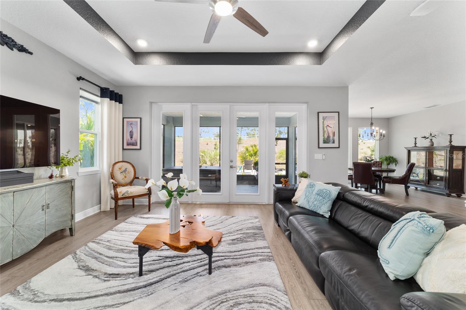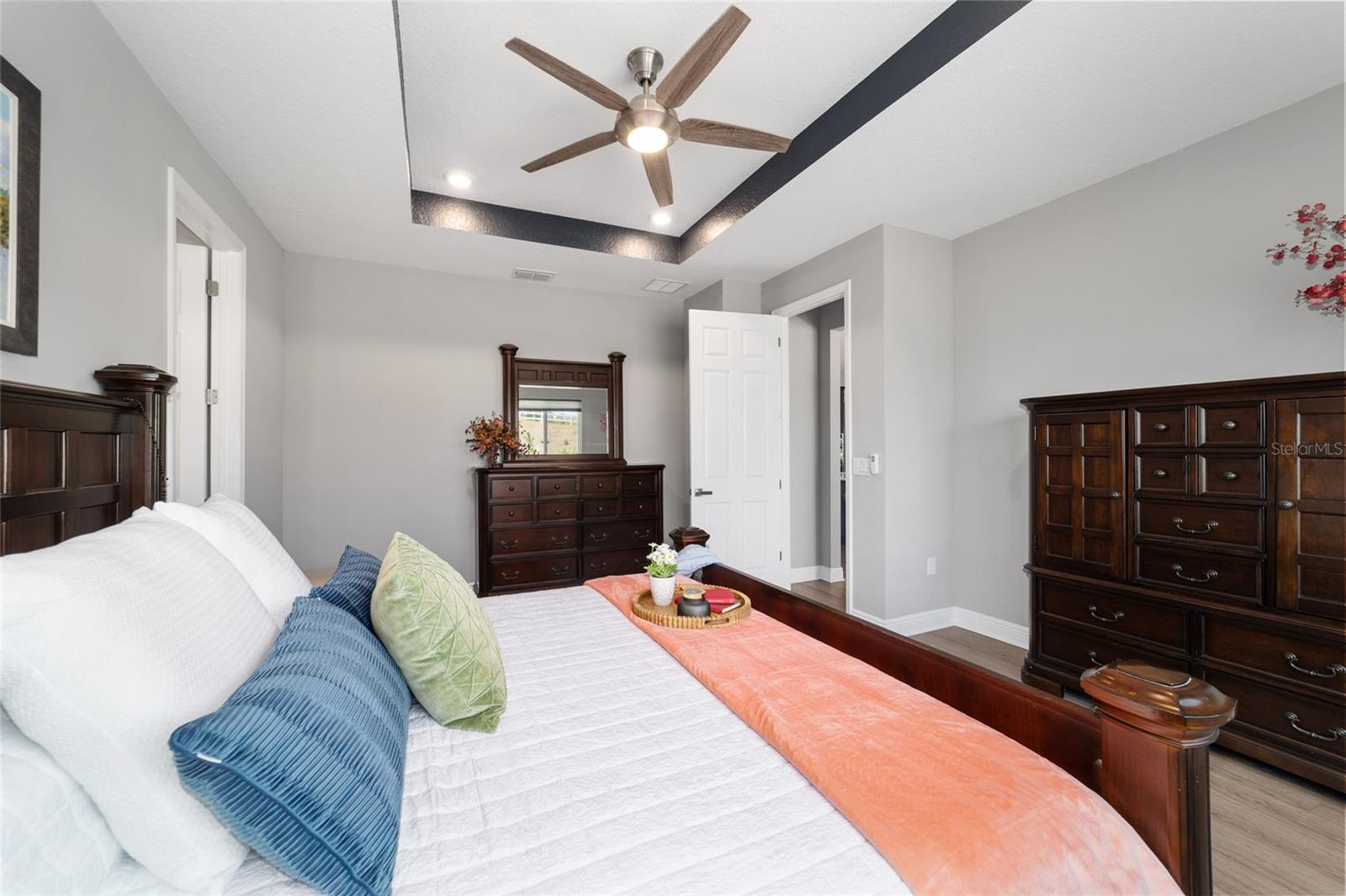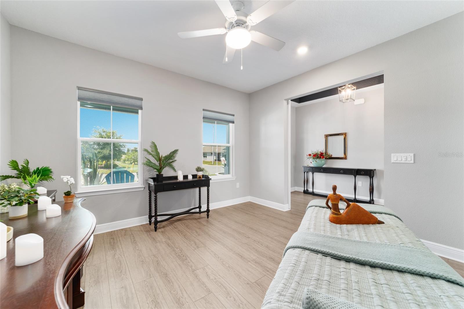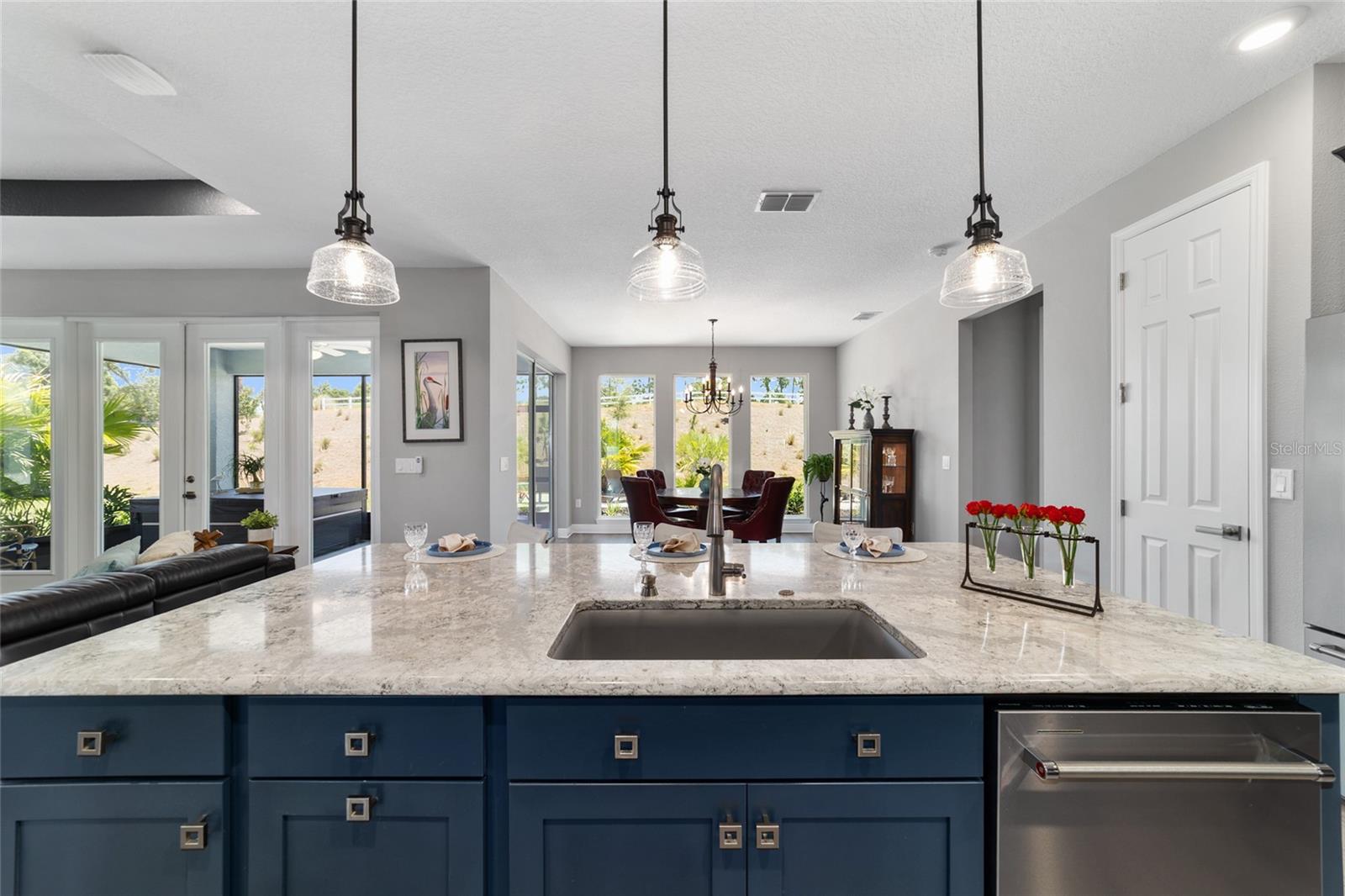 Bem -vindo ao 10298 SW 96th Loop, uma excepcional casa de construção de 2022, localizada no cobiçado bairro de Longleaf Ridge, no topo do mundo. Esta residência se passa em um lar de grandes dimensões particulares, com paisagismo profissional exuberante, apelo atraente e uma ampla garagem de pavimentadora que leva a uma espaçosa garagem de 3 carros. Dentro, a planta baixa, bem projetada, é preenchida com luz natural, aprimorada pelo piso de tábua de vinil de luxo e tetos altos. As janelas do chão ao teto na área de jantar formal criam uma atmosfera brilhante e convidativa, enquanto as portas francesas se abrem para um pátio lindamente exibido, onde o spa privado permanece com a casa que oferece serenidade diária. A cozinha de designer é um verdadeiro ponto focal, com ricos armários azuis, uma ilha de grandes dimensões com armazenamento adicional, bancadas de quartzo que continuam perfeitamente em um backsplash de quartzo de altura integral, um fogão a gás natural, um exaustor de declaração personalizada, um forno de convecção embutido/combo de microondas e um refrigerador de cozinha premium. Todo detalhe fala de qualidade e design elevado. O layout do quarto dividido oferece conforto e privacidade, com uma suíte de convidado frontal e banho completo. O Den, fechado por portas personalizadas, oferece um espaço flexível ideal para um escritório em casa, sala de hobby ou retiro de hóspedes. A suíte primária é um santuário privado com um chuveiro de grandes dimensões com piso de telha de seixos, pias duplas, uma vaidade generosa com amplo armazenamento, um armário de linho e um armário de água privado. Projetado para uma vida sem esforço e sem manutenção em uma das mais vibrantes de 55 comunidades da Flórida, esta casa oferece conforto, luxo e facilidade diária. Com tudo o que você precisa em casa, todos os dias parecem realmente férias, e você pode nunca querer sair.