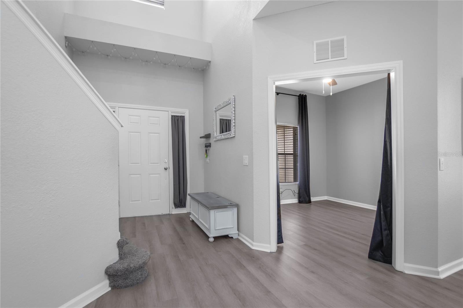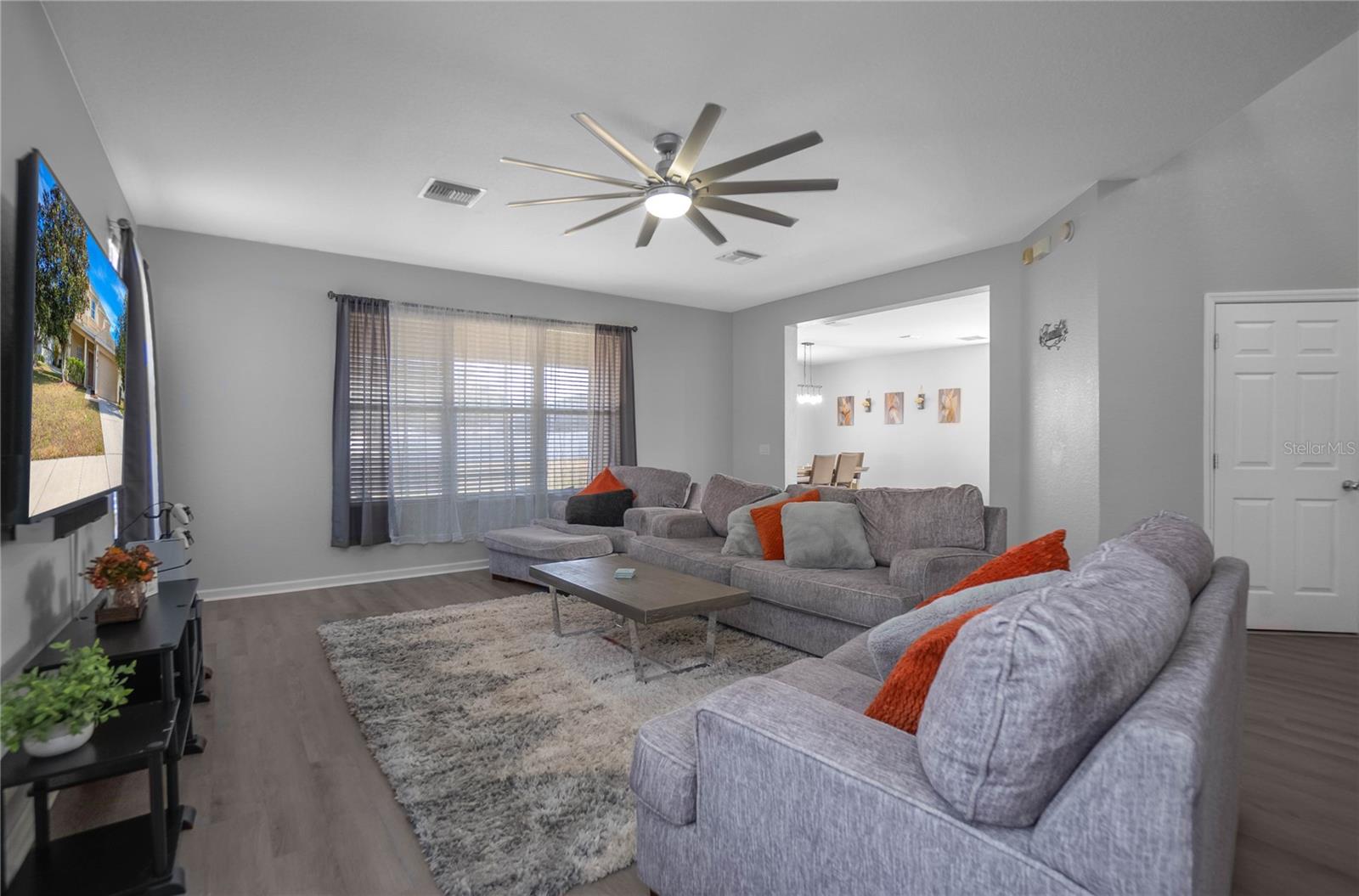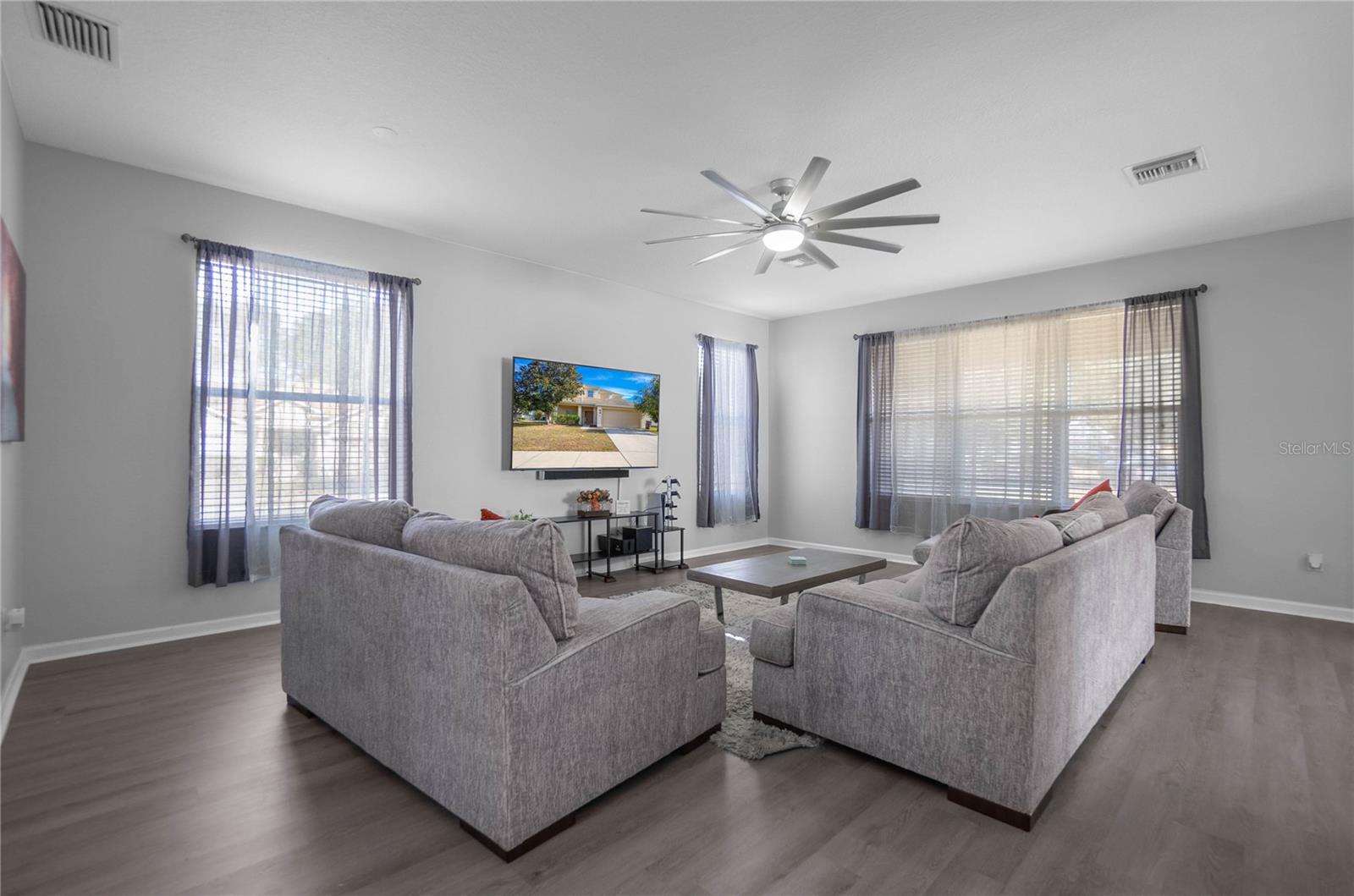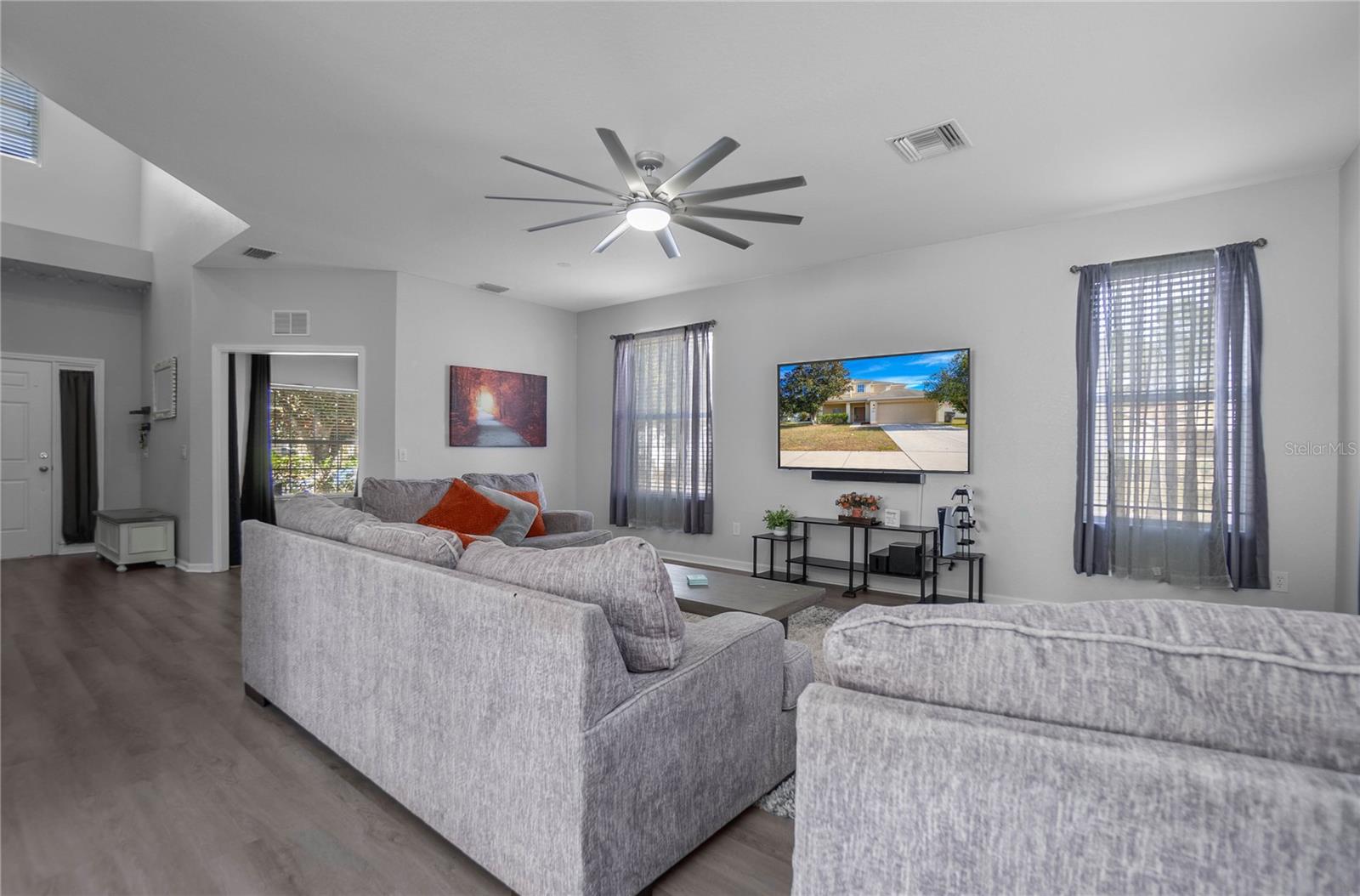 Esta bela casa de dois andares, 4 quartos e 3,5 banheiros oferece 2.510 pés quadrados de espaço em um lote de canto grande. O nível principal apresenta uma espaçosa sala de estar, uma sala aconchegante e uma sala de jantar formal com portas deslizantes que se abrem para a Lanai coberta, tornando -o perfeito para relaxar e divertir. A cozinha atualizada inclui bancadas em granito, utensílios de aço inoxidável e uma barra de café da manhã. Você vai adorar os tetos altos e o piso de vinil de luxo no primeiro andar, criando uma sensação moderna e brilhante, enquanto o segundo andar é confortavelmente acarpetado. No andar de cima, a espaçosa principal suíte primária exibe armários e pias duplos, uma banheira de imersão e um chuveiro separado. Uma suíte júnior fornece conforto e privacidade adicionais para a família e os hóspedes, complementados por um espaço dedicado a lavanderia. A casa recebeu um novo AC em 2017. Os moradores do Fore Ranch gostam de acesso a um clube, academia, piscina comunitária, quadras esportivas e trilhas para caminhada. Não perca a chance de fazer com que este próprio lar bem mantido!