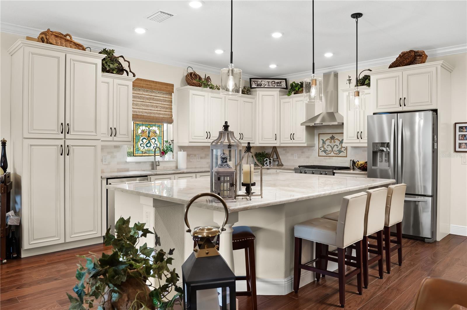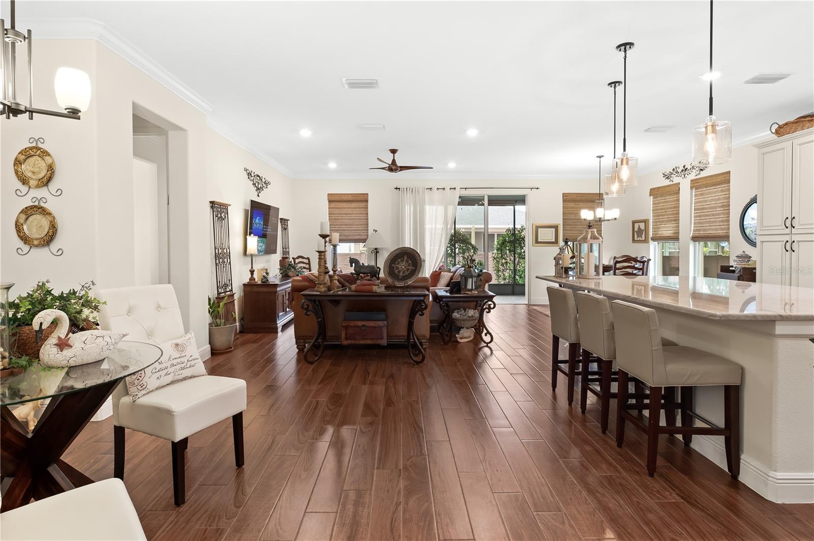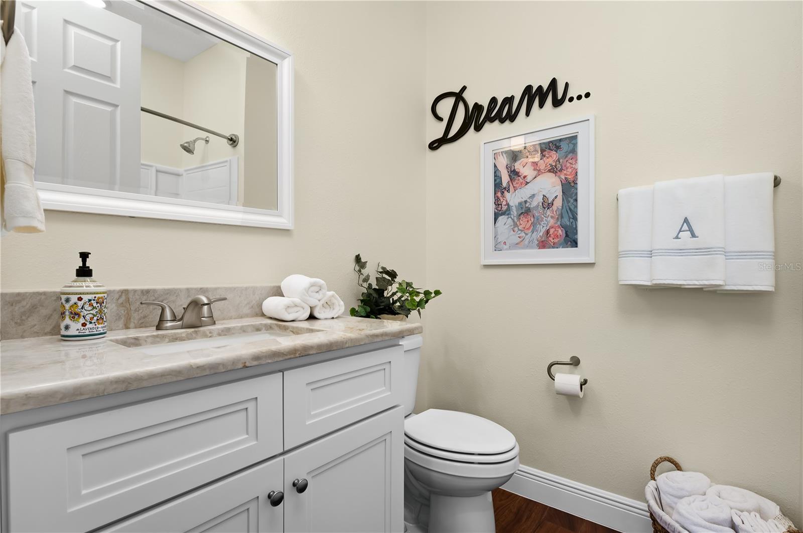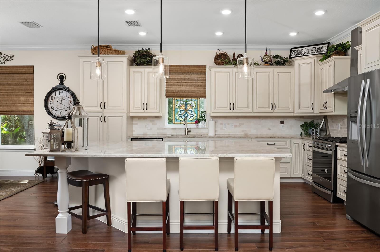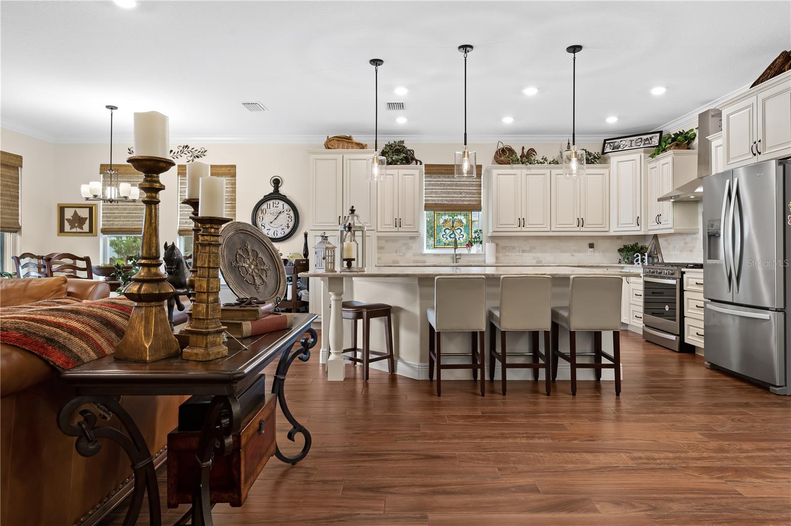 Esta residência excepcional está situada na muito procurada comunidade Ocala Preserve, a poucos minutos do WEC, HITS, FAST e muito mais. Situada em um lote premium com maior privacidade, esta casa de blocos de concreto oferece 2.060 pés quadrados de área útil, com 2 quartos, 2,5 banheiros e uma versátil sala de estar/sala flexível. Ao entrar, você é saudado por piso de cerâmica com aparência de madeira, luz natural abundante e tetos altos e volumosos. A planta dividida começa com uma suíte master secundária localizada na frente da casa, oferecendo um layout espaçoso, amplo closet e banheiro privativo com combinação de chuveiro/banheira. Este quarto acomoda facilmente uma cama king-size e oferece vista para o jardim frontal. Mais abaixo, no hall de entrada, você encontrará um escritório com portas francesas, perfeito como escritório ou potencial terceiro quarto. Perto dali, o lavabo com pia de pedestal proporciona comodidade aos hóspedes, enquanto a despensa oferece armazenamento adicional, lavanderia e acesso à garagem em epóxi, que conta com armários embutidos e balcões de pedra, ideais para hobbies ou armazenamento. O coração desta casa é a cozinha do chef completamente remodelada, que possui armários sólidos personalizados, bancadas de pedra deslumbrantes e eletrodomésticos de aço inoxidável. Um backsplash de mosaico, incluindo um impressionante recurso importado acima do fogão, e acessórios atualizados adicionam elegância ao espaço. A ilha de grandes dimensões é perfeita para hospedagem, conectando-se perfeitamente à grande sala, área de jantar e lounge. A grande sala se abre para uma varanda com piso de cerâmica, guarda-sóis personalizados e vista para espaço verde adicional, oferecendo privacidade e tranquilidade. A espaçosa suíte master é um refúgio privado com janelas voltadas para trás e tetos altos. O banheiro privativo possui pia dupla, box amplo de azulejos com divisória de vidro e closet amplo. Esta casa está repleta de atualizações atenciosas, incluindo sancas, campainha e sistema de segurança, amaciante de água, aquecedor de água sem tanque, portas de seis painéis de 2,5 metros, protetor contra surtos domésticos, conexão para churrasqueira a gás externa, calhas e laterais adicionais espaço de pátio. Ocala Preserve oferece comodidades em estilo resort, incluindo trilhas para caminhada, varanda à beira do lago, spa e academia, tênis, pickleball, quadras de bocha, restaurante, piscinas olímpicas e estilo resort e muito mais. Não perca a oportunidade de possuir esta casa extraordinária. Agende hoje mesmo seu tour privado!
