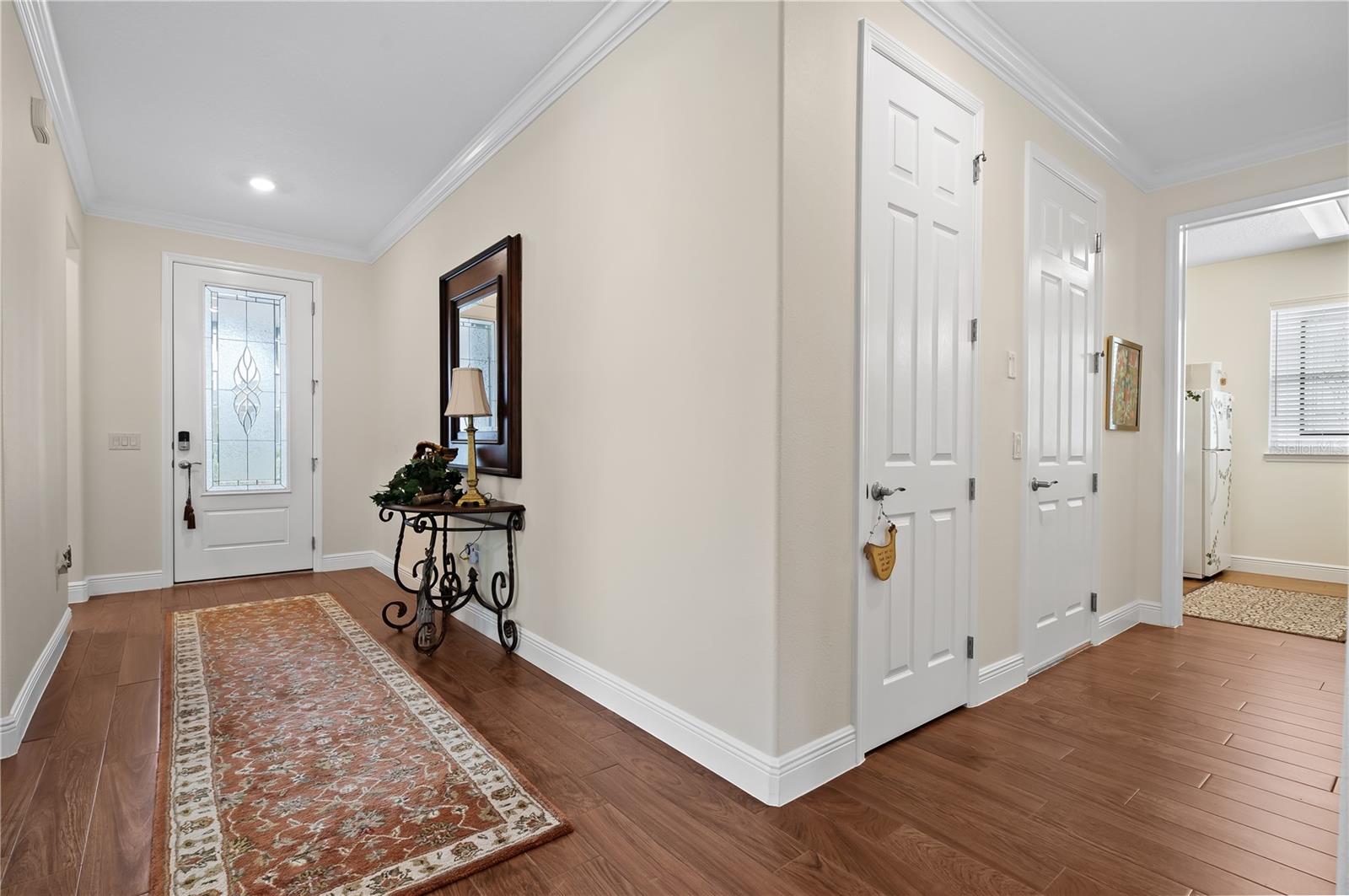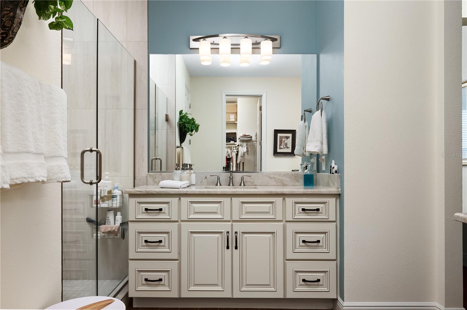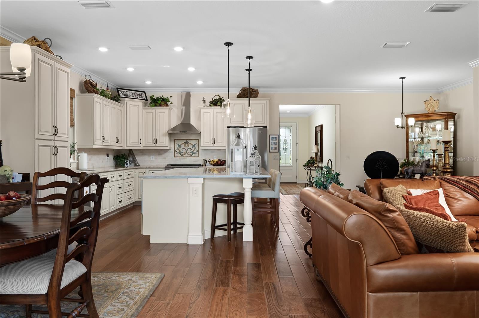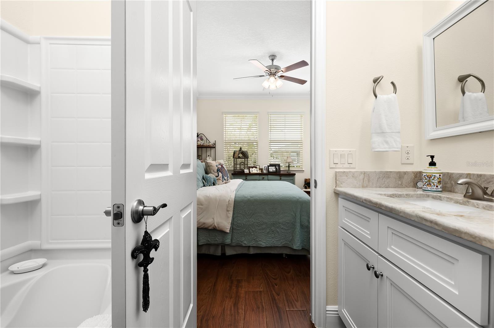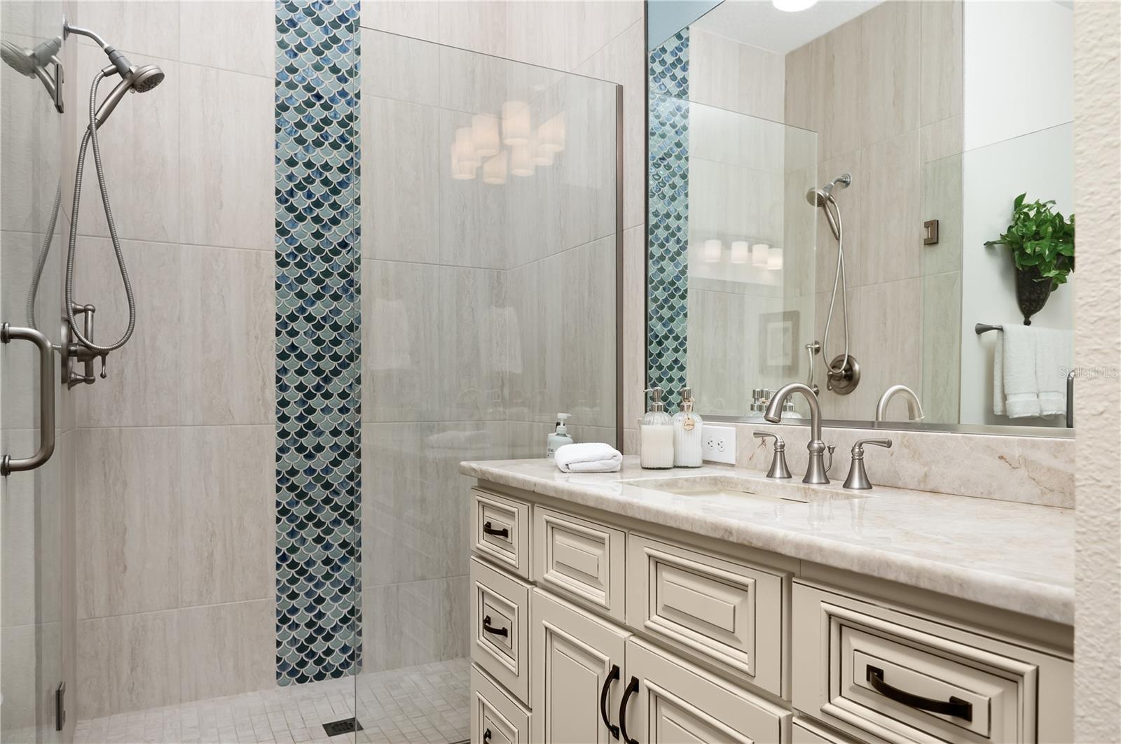 Esta residência excepcional está situada na muito procurada comunidade Ocala Preserve, a poucos minutos do WEC, HITS, FAST e muito mais. Situada em um lote premium com maior privacidade, esta casa de blocos de concreto oferece 2.060 pés quadrados de área útil, com 2 quartos, 2,5 banheiros e uma versátil sala de estar/sala flexível. Ao entrar, você é saudado por piso de cerâmica com aparência de madeira, luz natural abundante e tetos altos e volumosos. A planta dividida começa com uma suíte master secundária localizada na frente da casa, oferecendo um layout espaçoso, amplo closet e banheiro privativo com combinação de chuveiro/banheira. Este quarto acomoda facilmente uma cama king-size e oferece vista para o jardim frontal. Mais abaixo, no hall de entrada, você encontrará um escritório com portas francesas, perfeito como escritório ou potencial terceiro quarto. Perto dali, o lavabo com pia de pedestal proporciona comodidade aos hóspedes, enquanto a despensa oferece armazenamento adicional, lavanderia e acesso à garagem em epóxi, que conta com armários embutidos e balcões de pedra, ideais para hobbies ou armazenamento. O coração desta casa é a cozinha do chef completamente remodelada, que possui armários sólidos personalizados, bancadas de pedra deslumbrantes e eletrodomésticos de aço inoxidável. Um backsplash de mosaico, incluindo um impressionante recurso importado acima do fogão, e acessórios atualizados adicionam elegância ao espaço. A ilha de grandes dimensões é perfeita para hospedagem, conectando-se perfeitamente à grande sala, área de jantar e lounge. A grande sala se abre para uma varanda com piso de cerâmica, guarda-sóis personalizados e vista para espaço verde adicional, oferecendo privacidade e tranquilidade. A espaçosa suíte master é um refúgio privado com janelas voltadas para trás e tetos altos. O banheiro privativo possui pia dupla, box amplo de azulejos com divisória de vidro e closet amplo. Esta casa está repleta de atualizações atenciosas, incluindo sancas, campainha e sistema de segurança, amaciante de água, aquecedor de água sem tanque, portas de seis painéis de 2,5 metros, protetor contra surtos domésticos, conexão para churrasqueira a gás externa, calhas e laterais adicionais espaço de pátio. Ocala Preserve oferece comodidades em estilo resort, incluindo trilhas para caminhada, varanda à beira do lago, spa e academia, tênis, pickleball, quadras de bocha, restaurante, piscinas olímpicas e estilo resort e muito mais. Não perca a oportunidade de possuir esta casa extraordinária. Agende hoje mesmo seu tour privado!