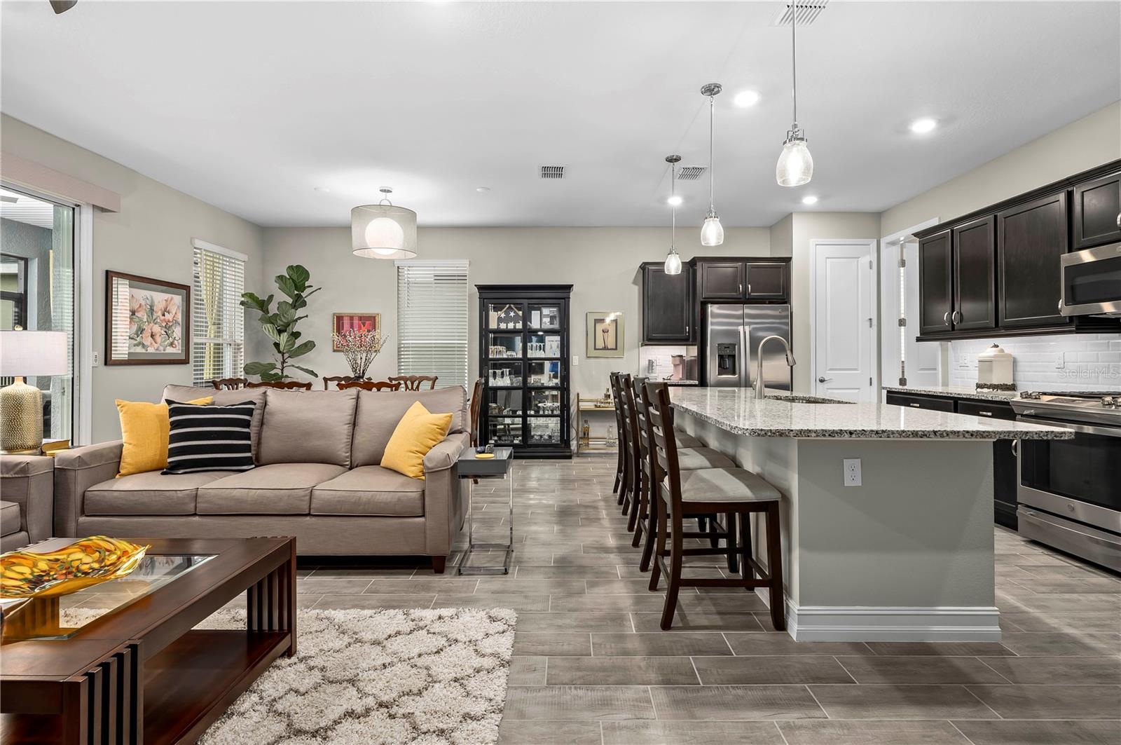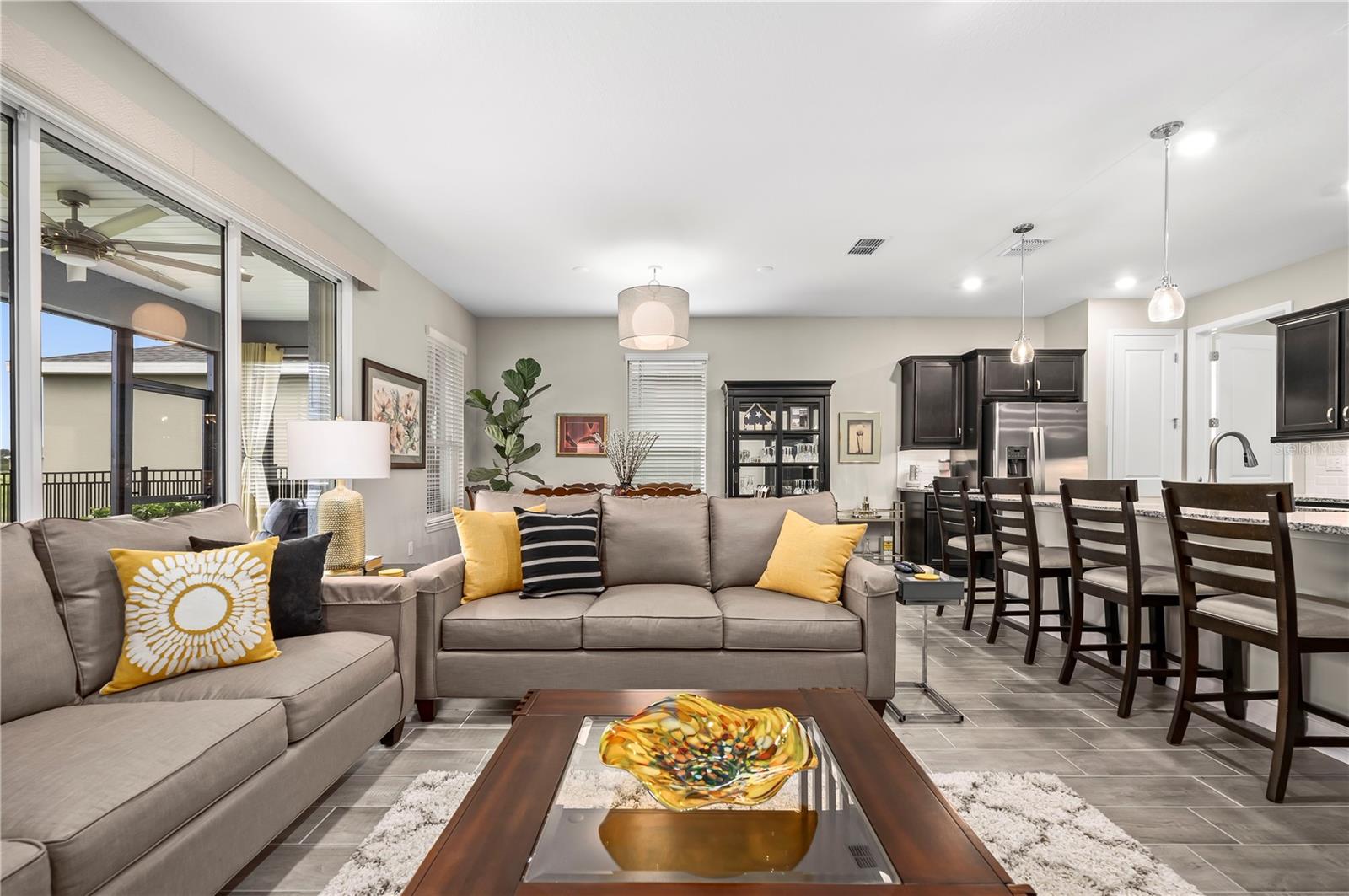 *Atenção, compradores sazonais: opção de compra totalmente mobiliada/chave na mão por US$ 15 mil adicionais.*Descubra esta linda casa de 2 quartos e 2 banheiros com um espaço flexível adicional adequado para escritório ou espaço de hóspedes. Esta casa está situada em um lote premium de 25.000 m2 com quintal cercado e varanda com tela. Com vizinhos traseiros do outro lado de uma linda ravina e sem linhas de visão/ou som com os vizinhos, esta casa oferece privacidade excepcional. Entre para encontrar um corredor de entrada caloroso e acolhedor com piso de cerâmica atualizado em todas as áreas de estar principais. Bem como atraentes ventiladores remotos estrategicamente colocados em todos os cômodos. A cozinha é perfeita para entretenimento, apresentando uma ilha grande e comprida que acomoda confortavelmente de 5 a 6 pessoas. Toneladas de lindos armários escuros e esfumaçados, backsplash branco e bancadas de granito coordenadas. Fogão a gás com fritadeira embutida no forno, eletrodomésticos em aço inox e grande despensa completam esta cozinha excepcional. A cozinha se abre facilmente para a grande sala de jantar com grandes controles deslizantes para sua varanda, proporcionando belas vistas do quintal. A planta de conceito aberto apresenta quartos divididos para maior privacidade. O quarto principal é de tamanho generoso, com um grande closet e um banheiro privativo com pia dupla e box amplo com barras de segurança decorativas personalizadas. O quarto de hóspedes parece muito privado e tranquilo e fica imediatamente adjacente ao banheiro de hóspedes e também inclui grades de segurança decorativas na combinação de chuveiro/banheira. Todas as necessidades pós-fechamento, totalizando US$ 30.000, já foram feitas para você, incluindo, entre outras, calhas, tela de varanda, ventiladores em todos os quartos, amaciante de água, lavadora e secadora de última geração, barras de segurança e toalheiros nos banheiros, cercas, vínculo contra cupins de 10 anos com serviço de sótão e disjuntor para toda a casa. Esta casa é uma mistura perfeita de luxo e funcionalidade, pronta para recebê-lo em casa. Não perca esta oportunidade de morar na bela Reserva Ocala!