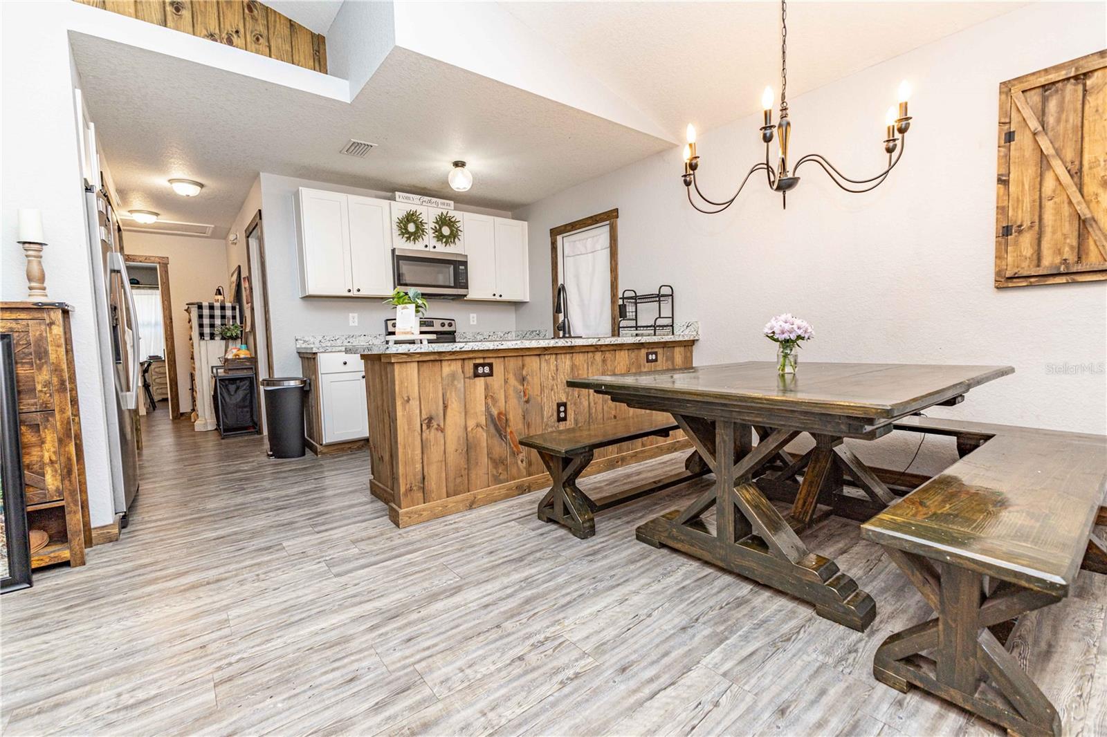 Sem HOA! Esta casa tem apenas 4 anos e consiste em mais de 1300 pés quadrados totais! Este modelo de chalé de amanhecer foi atualizado e personalizado, colocando -o acima da nota típica do construtor e dando a ele uma vibração popular de fazenda rústica. Dentro de casa, você encontrará o piso plano aberto com a sala de estar fluindo com a sala de jantar e a cozinha, com utensílios de aço inoxidável e uma nova linha e uma máquina de lavar louça mais recente (2023). Há também um armário de lavanderia que possui uma nova lavadora e secadora e possui espaço adicional que pode ser usado como despensa. Ambos os banheiros foram atualizados, um com um chuveiro e o outro com uma combinação de chuveiro que atualizou o backsplash. Saindo da casa pela cozinha, você encontrará uma exibição incrível em Lanai, que é um local perfeito para aproveitar o clima com amigos e familiares enquanto fica sem insetos! O quintal é totalmente cercado com privacidade parcial, esta área espaçosa é perfeita para crianças e/ou animais de estimação apreciarem despreocupados. Esta casa está localizada a poucos minutos do Lake Weir, com fácil acesso para aproveitar os dias quentes de verão na Flórida na água. A apenas 20 minutos das aldeias e da Ocala, esta casa está localizada centralmente, permitindo fácil acesso a muitos restaurantes, compras e opções de entretenimento, enquanto ainda oferece privacidade e a Flórida sente que muitos estão procurando. Não perca a oportunidade de chamar este próprio lar incrível!
