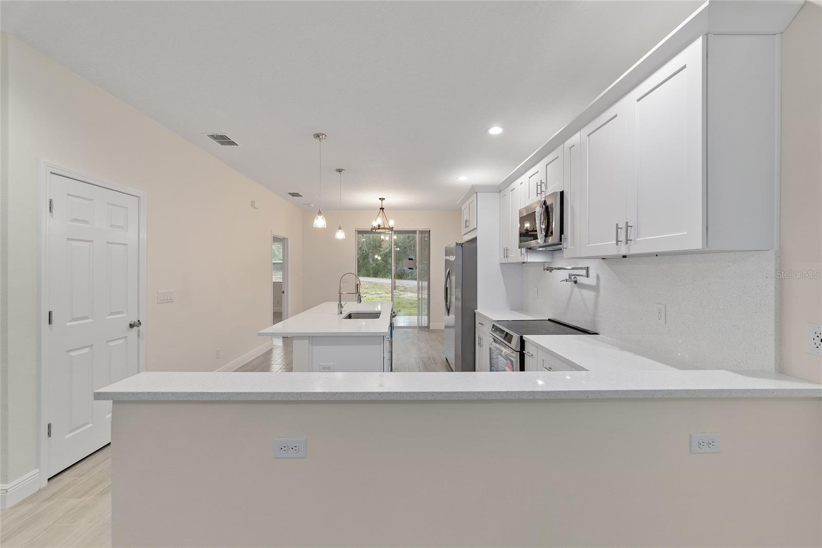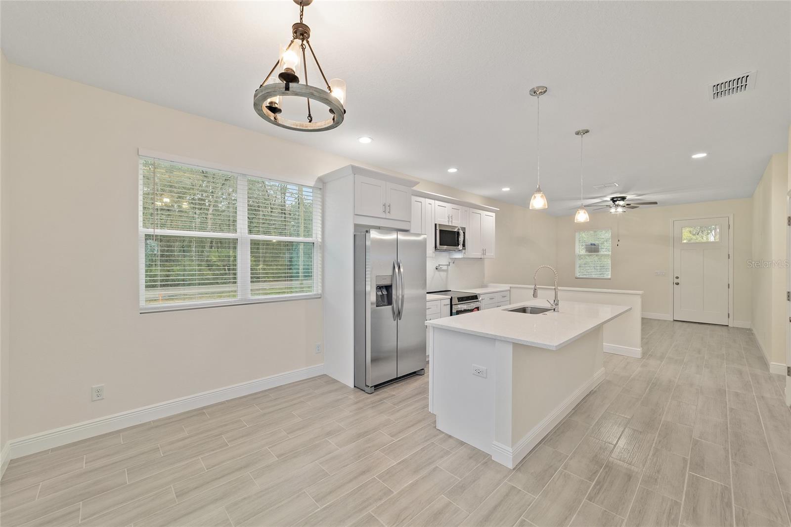 Nova casa muito elegante em lote de grandes dimensões em uma área lindamente bem conservada entre Lady Lake e Ocala. As portas de entrada reais de 8 pés com tetos de 9 pés e ladrilhos deslumbrantes por toda parte. Todas as bancadas de quartzo e armários de fechamento suaves. Aparelhos de aço inoxidável. Luminárias e ventiladores de teto elegantes e elegantes, juntamente com as persianas de 2 polegadas instaladas. Ótimos de 5 polegadas extras. O quarto primário possui espaçosos closet e banheiro privativo equipado com vaidade dupla e chuveiro grande em todos os ladrilhos com porta de vidro. O banho de hóspedes é o plástico incluído em ladrilhos. Usb/lojas por toda parte. Os holofotes em todos os 4 cantos externos da casa. Bom pátio coberto fora da área de jantar com porta deslizante de 8 pés. Garagem espaçosa de 2 carros 8 pés 8 polegadas de altura !! com saída para estação de carregamento. Medança extra larga e calçada larga, levando à entrada frontal coberta. Sem HOA. Muitas trilhas, lagos e pesca nas proximidades. Esta casa grita atualizações! Venha ver por si mesmo hoje!
